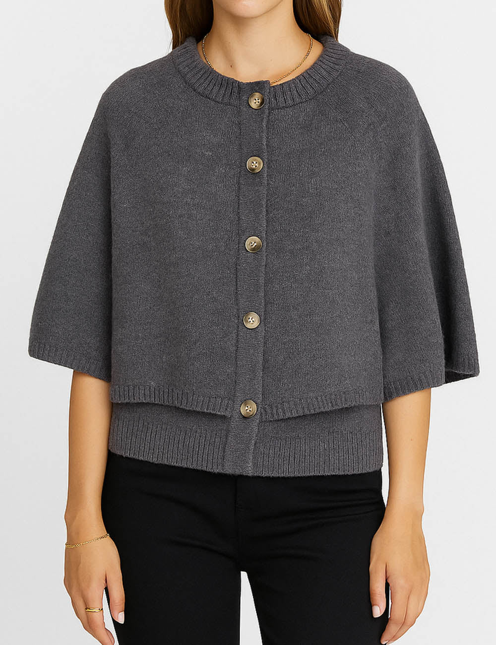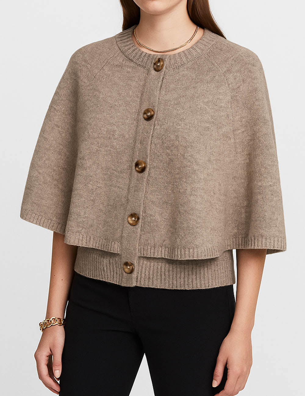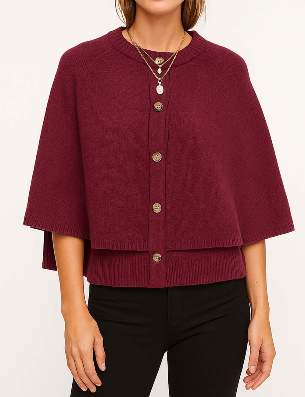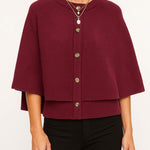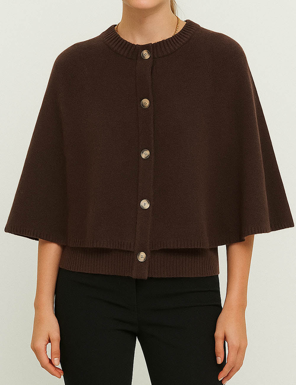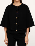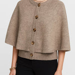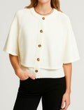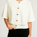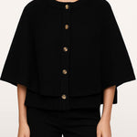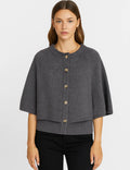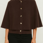 Ladies Knit Round Neck Cape Button Front Shawl Top