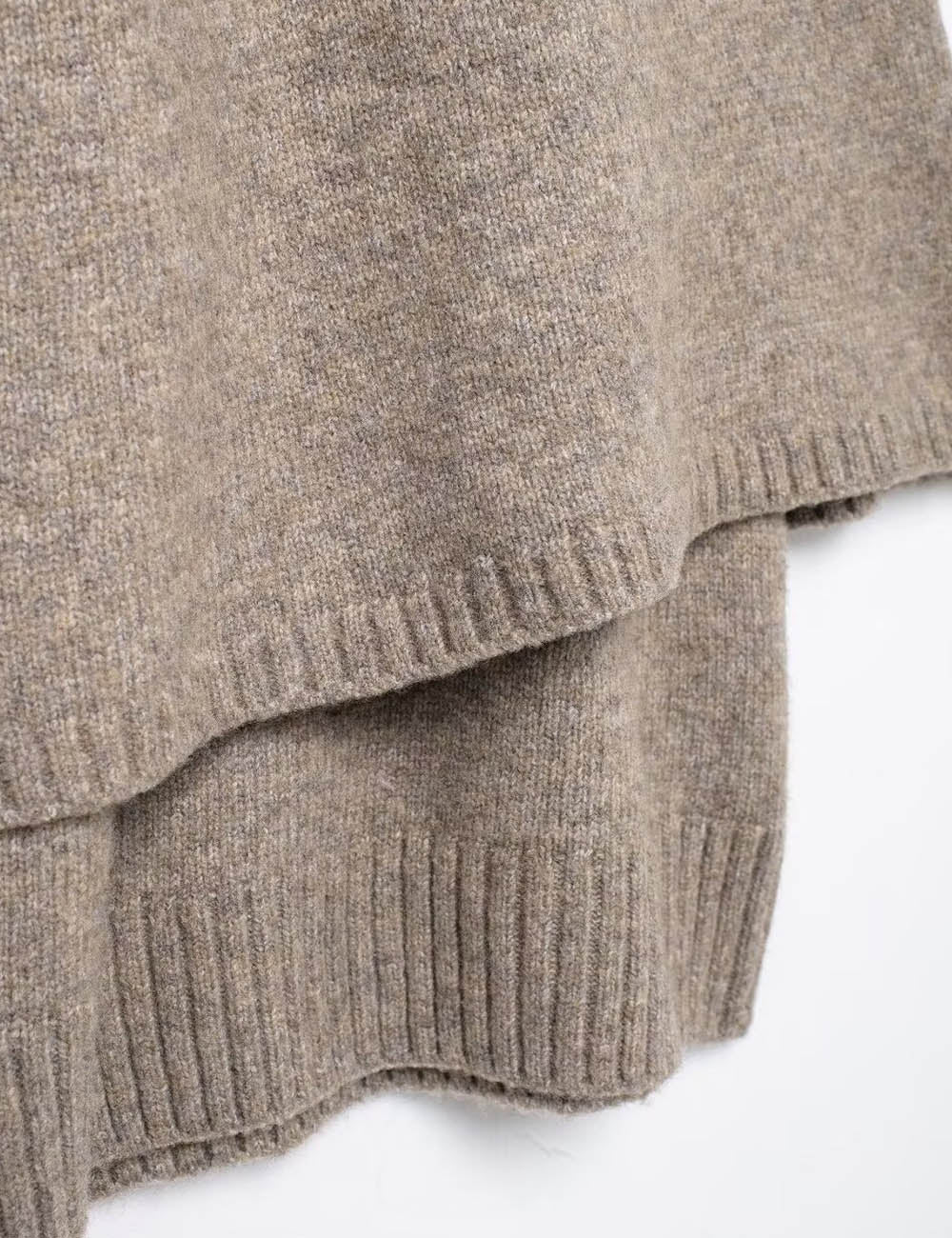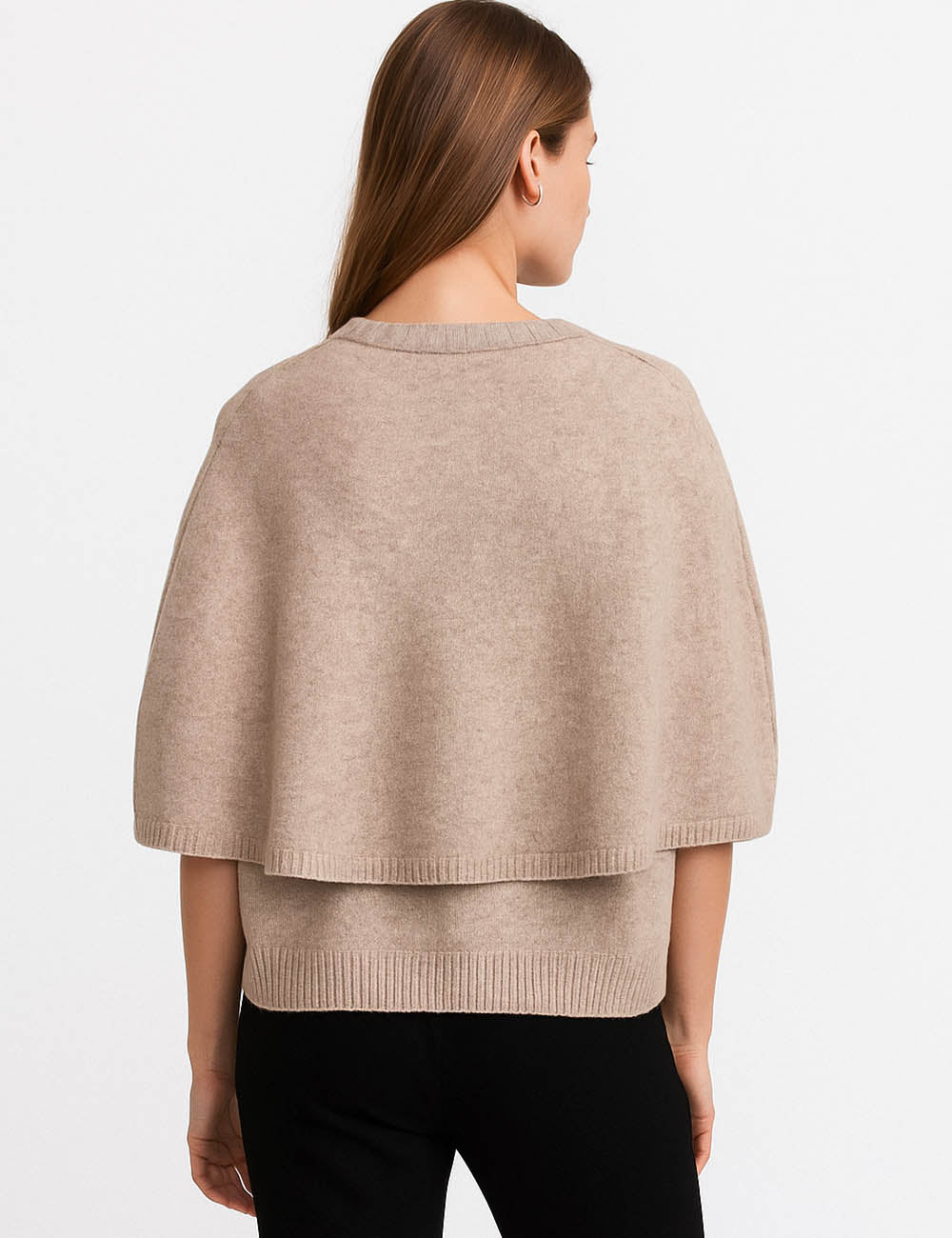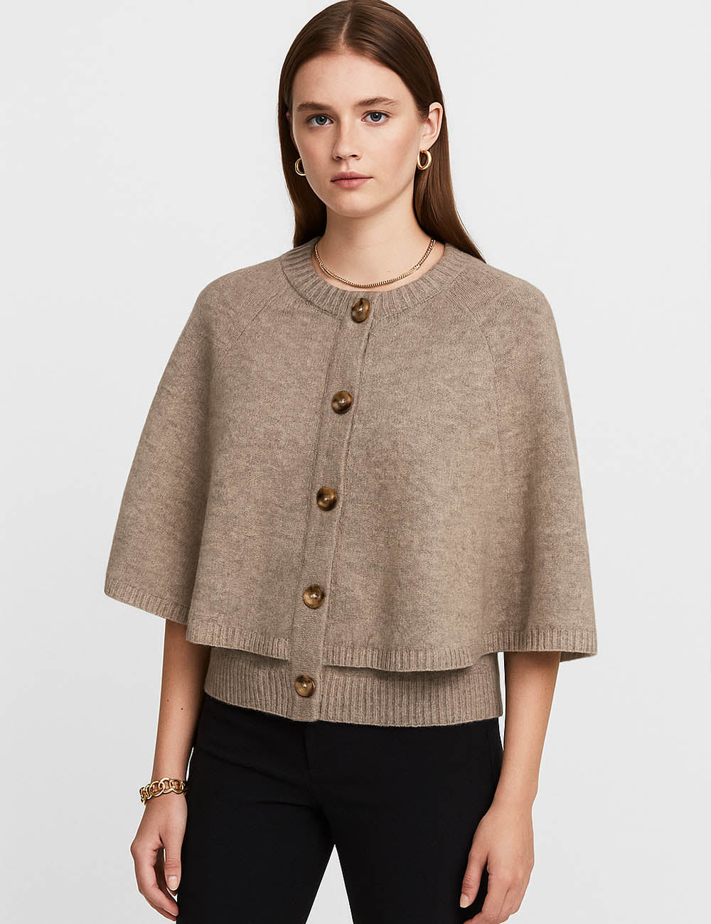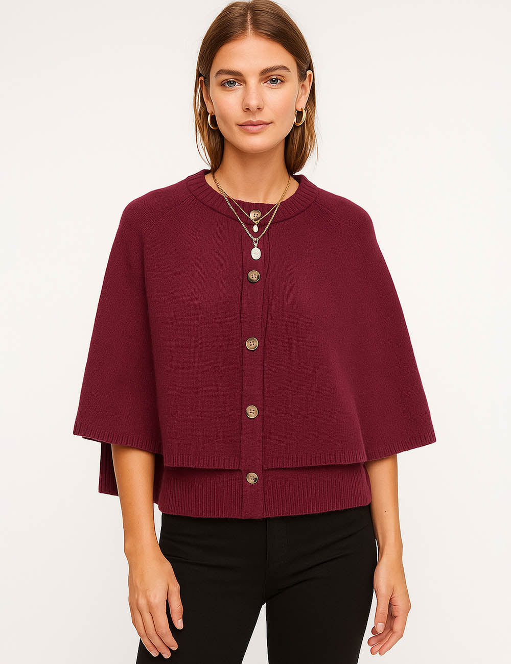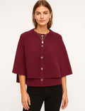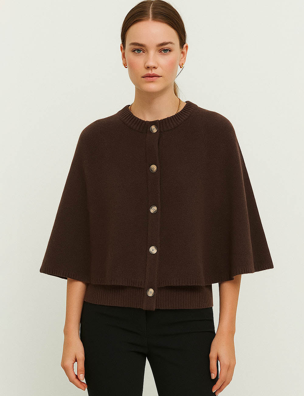 Ladies Knit Round Neck Cape Button Front Shawl Top
