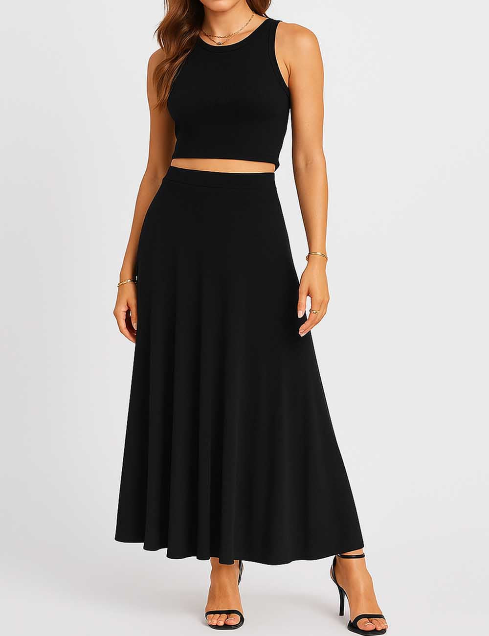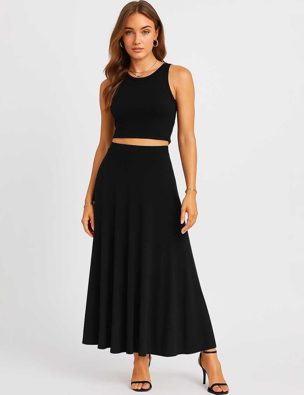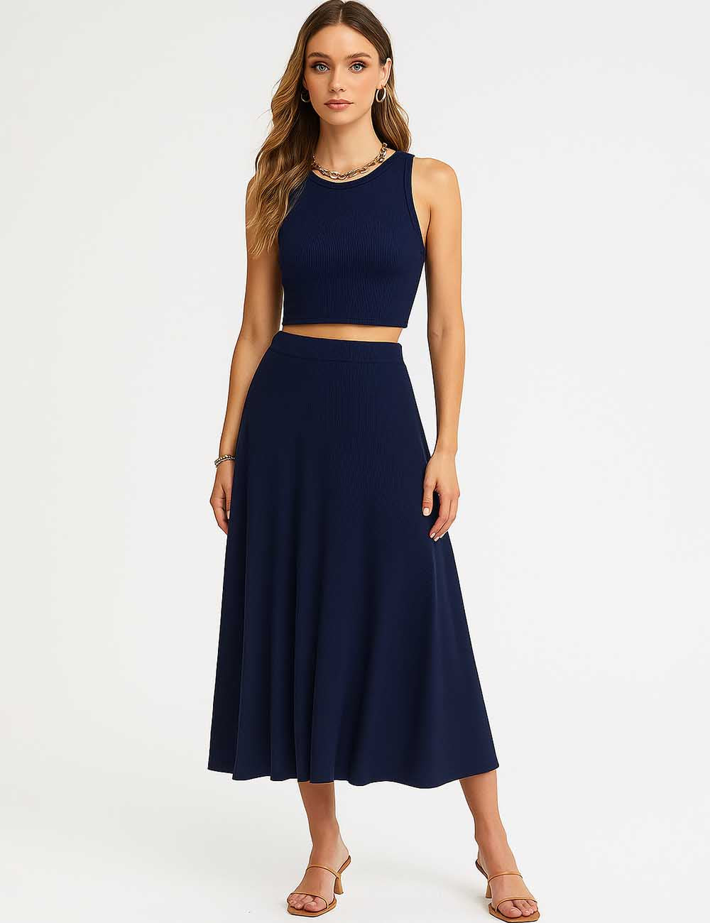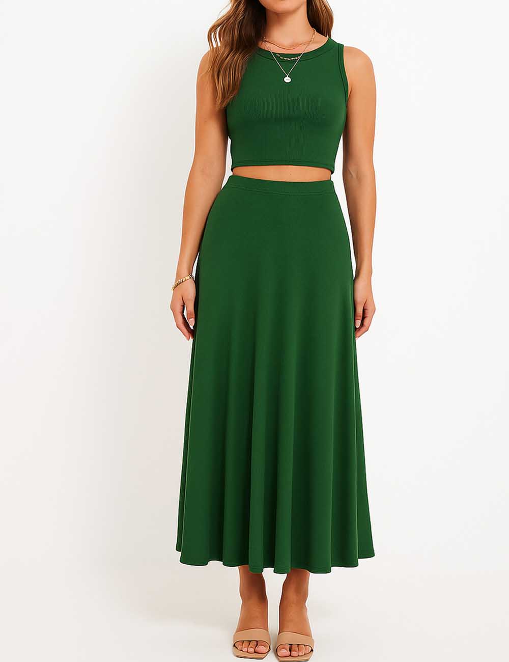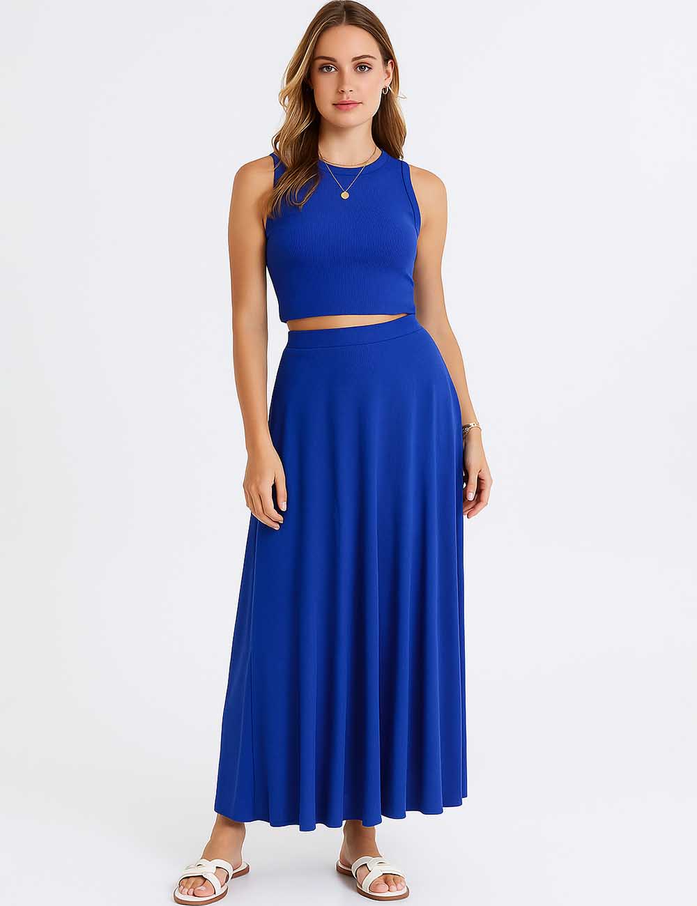 Ladies Knit Round Neck Sleeveless Top & Maxi Skirt Set