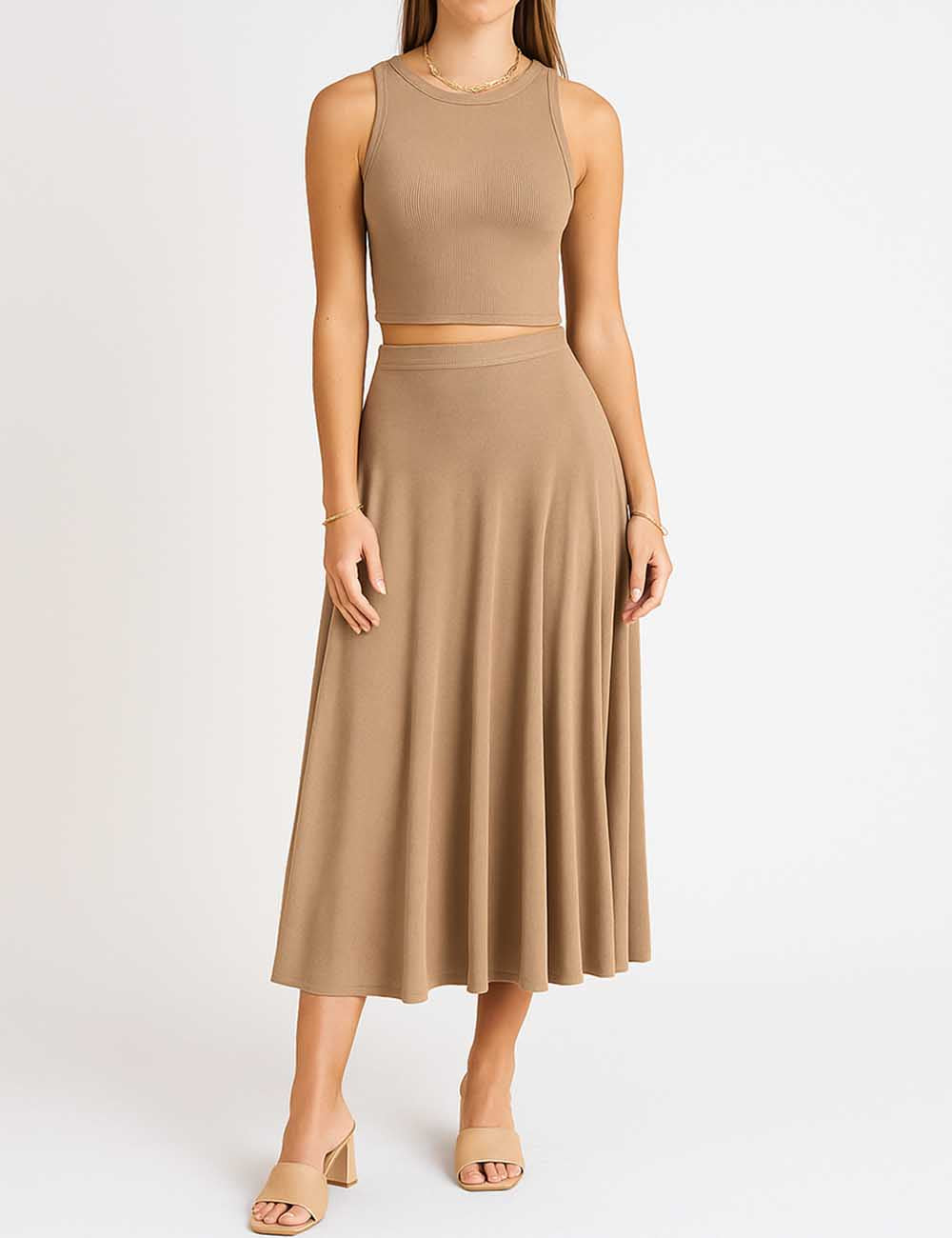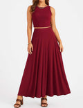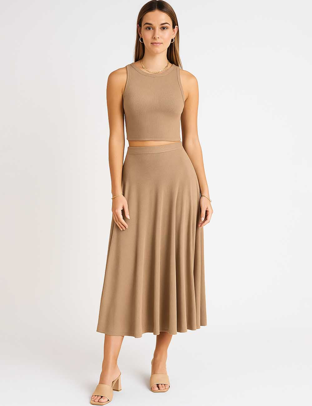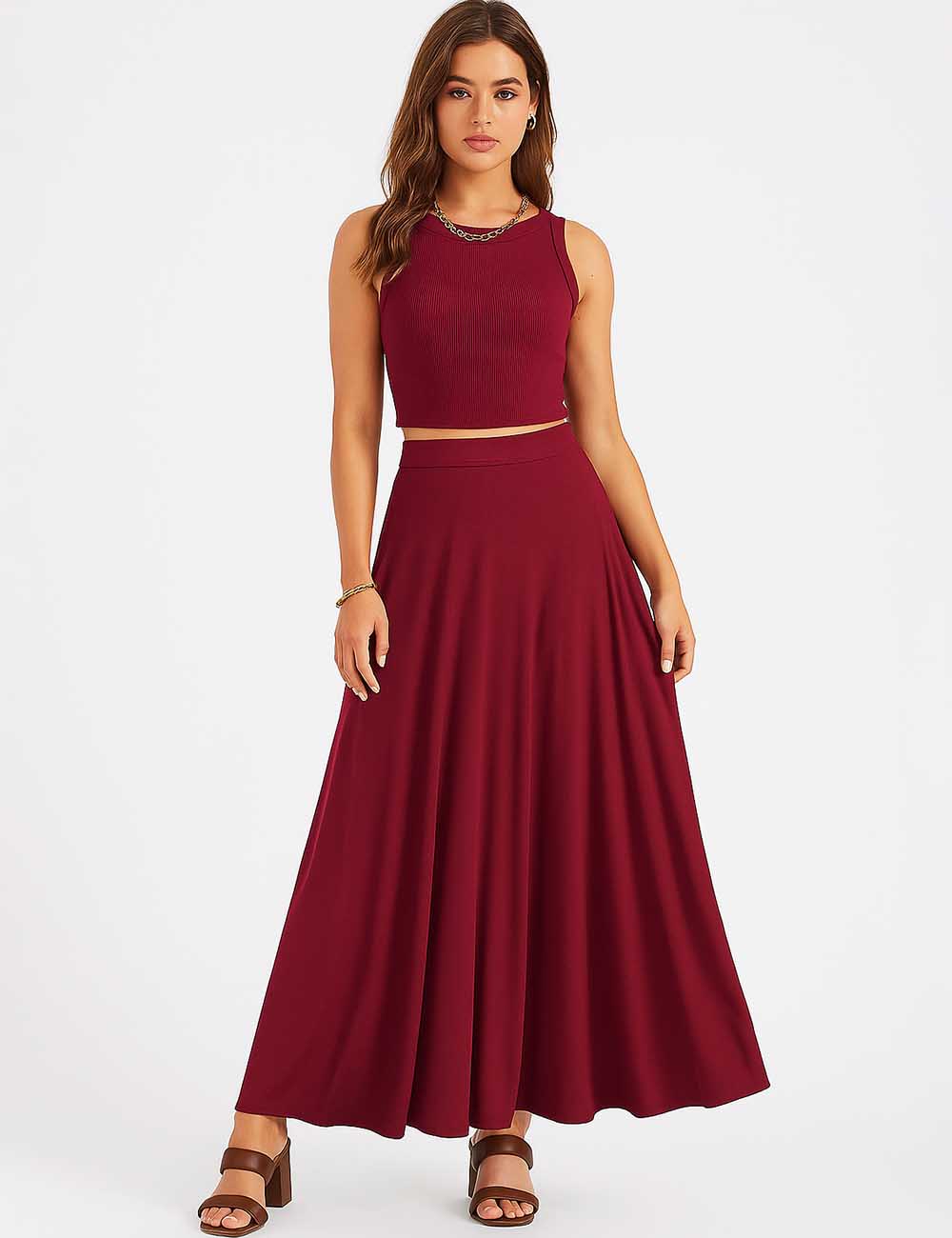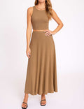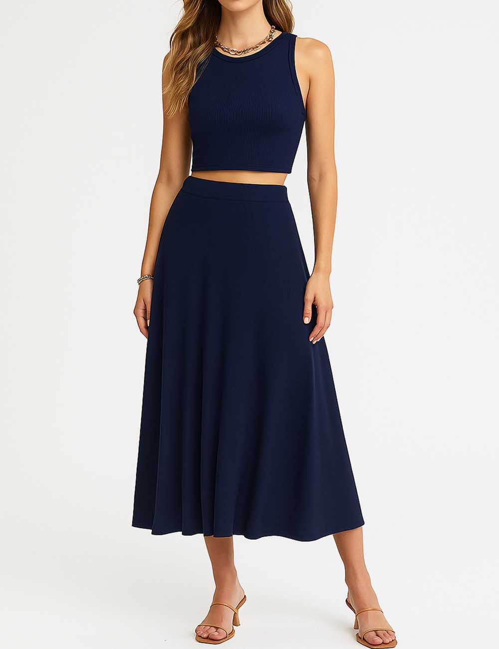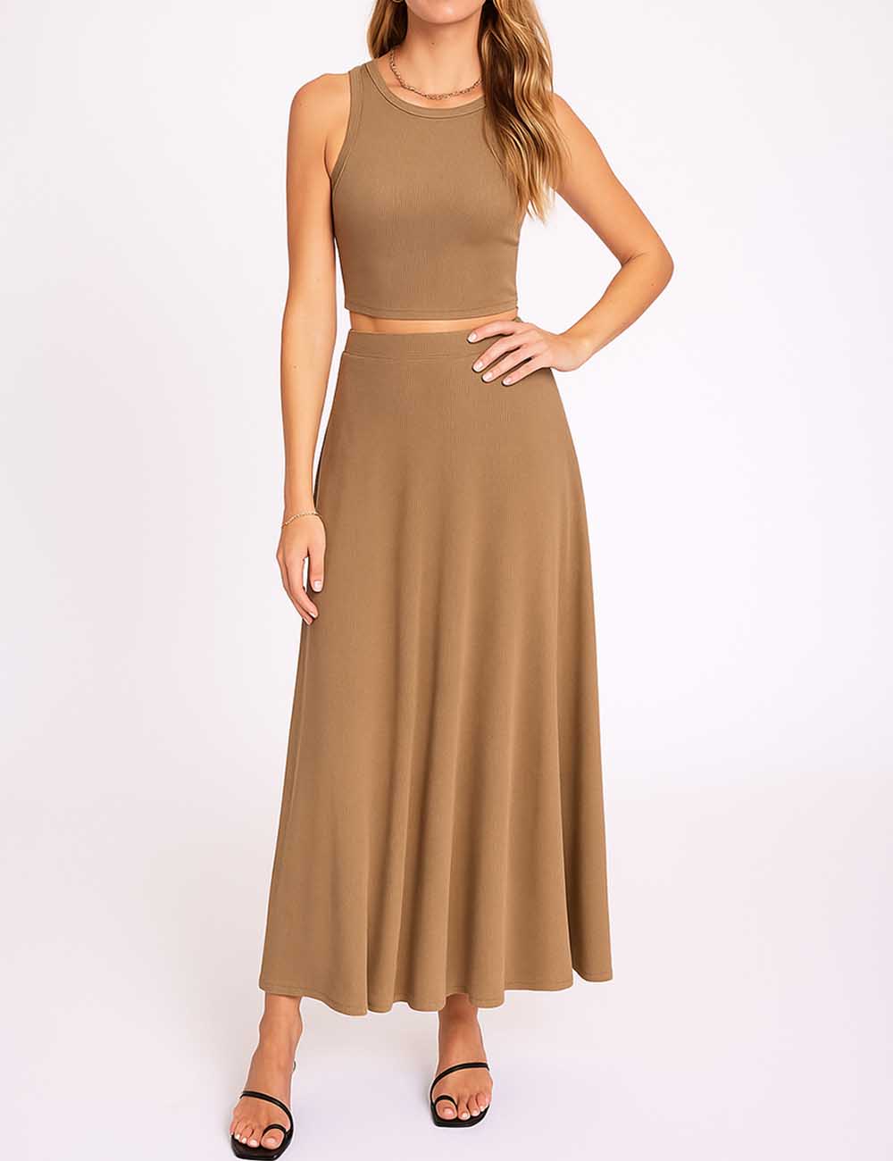 Ladies Knit Round Neck Sleeveless Top & Maxi Skirt Set