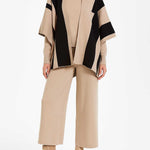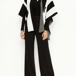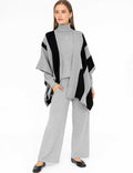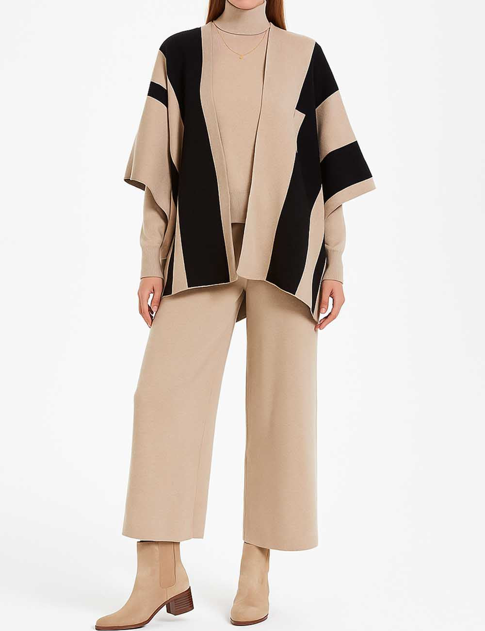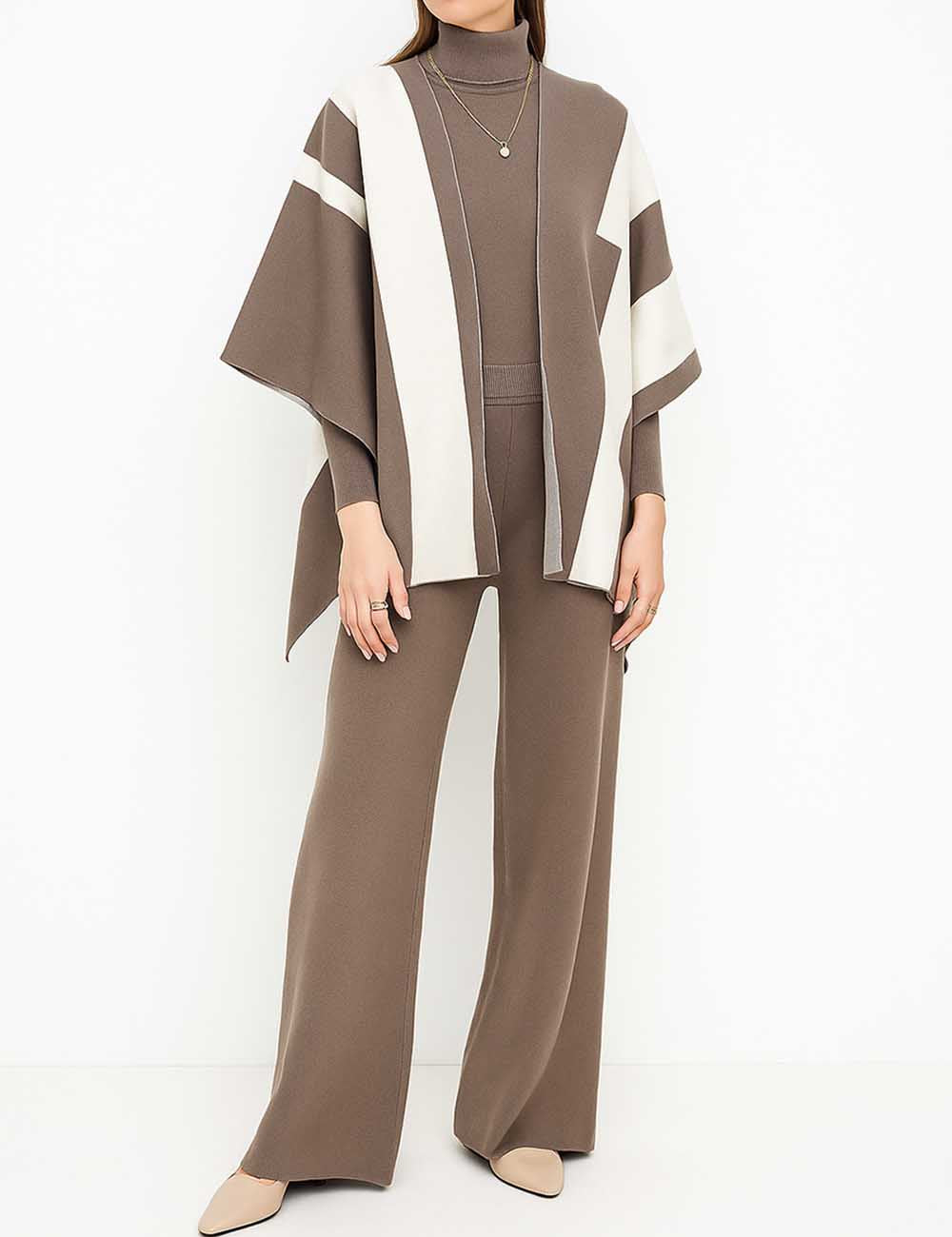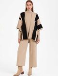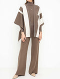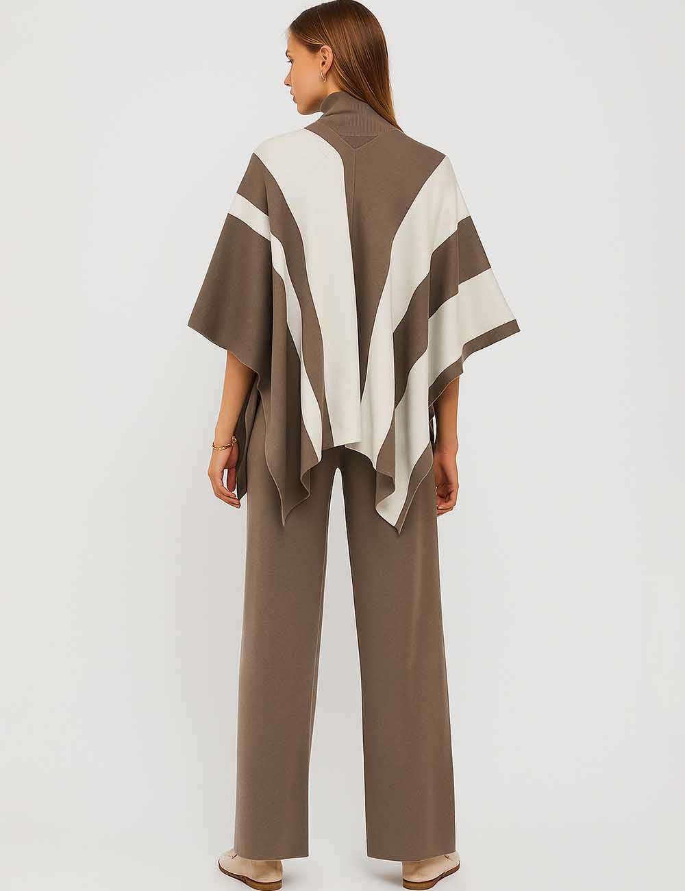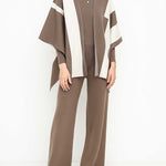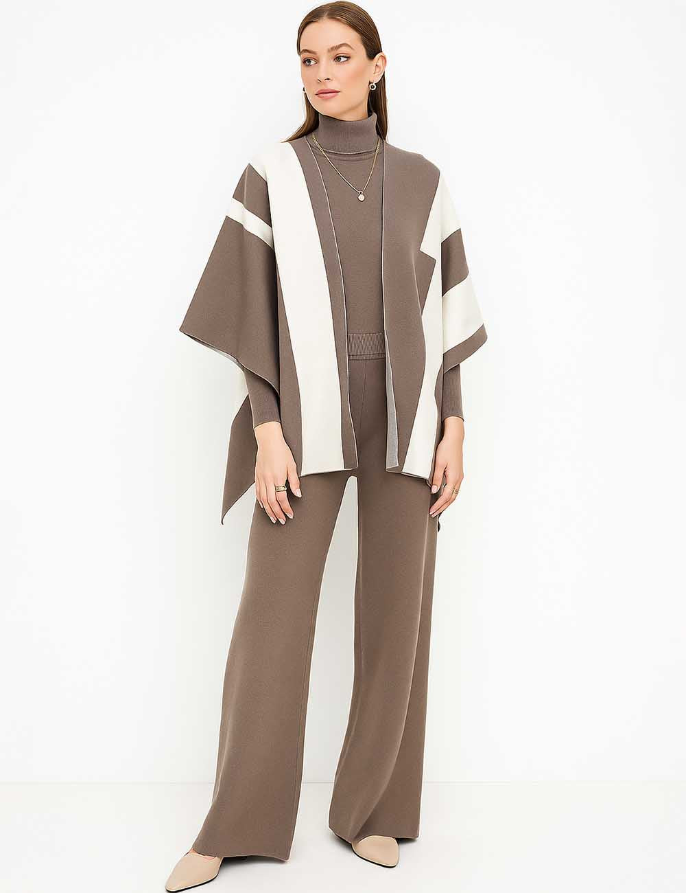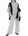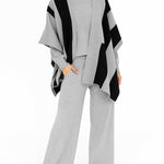 Ladies Color Block Knit Sweater & Shawl Cape & Pants 3PCS Set