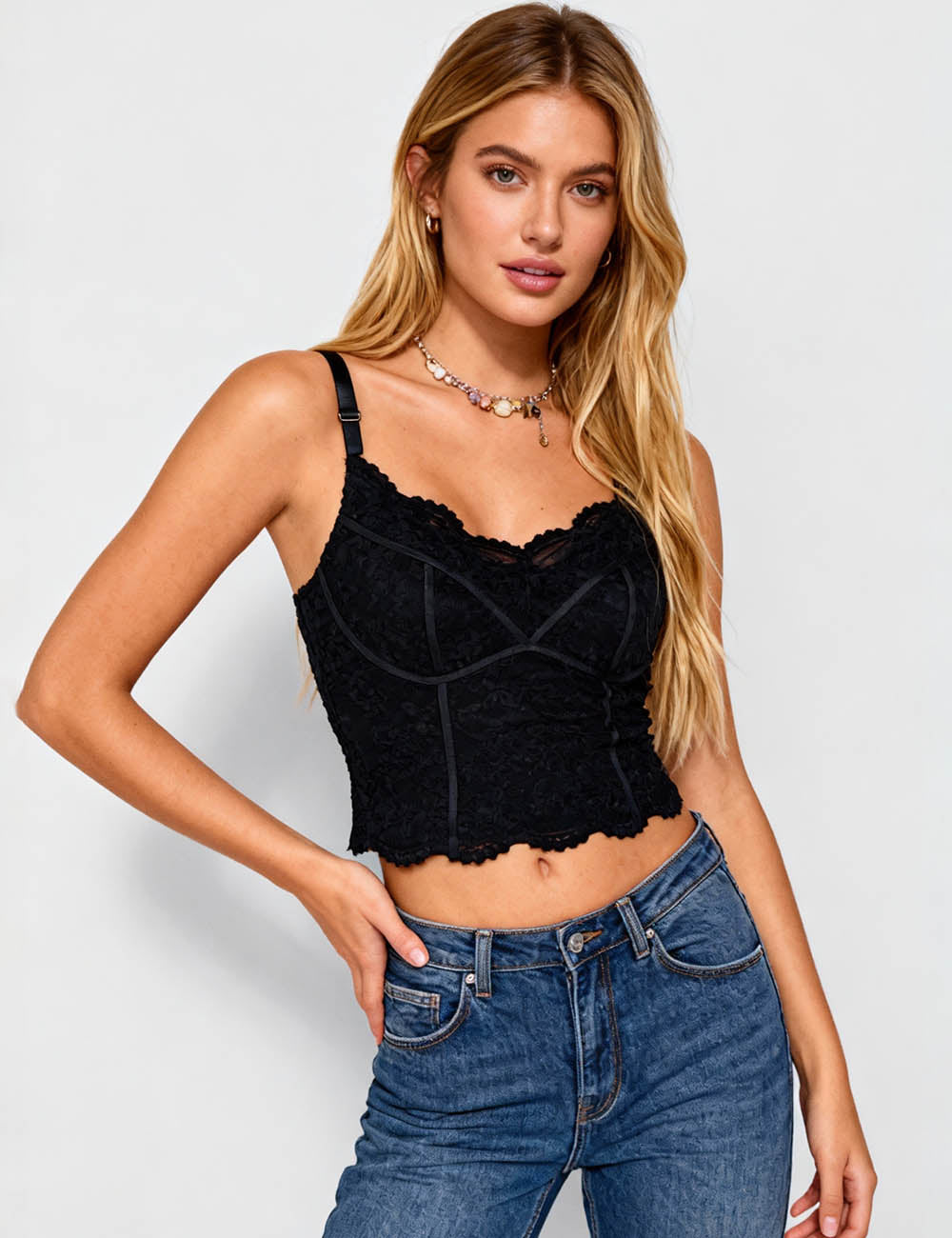 Ladies Lace Bustier Corset Spaghetti Strap Cami Top