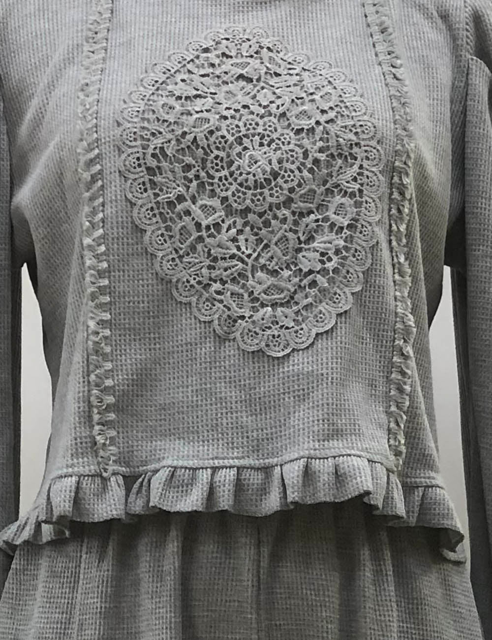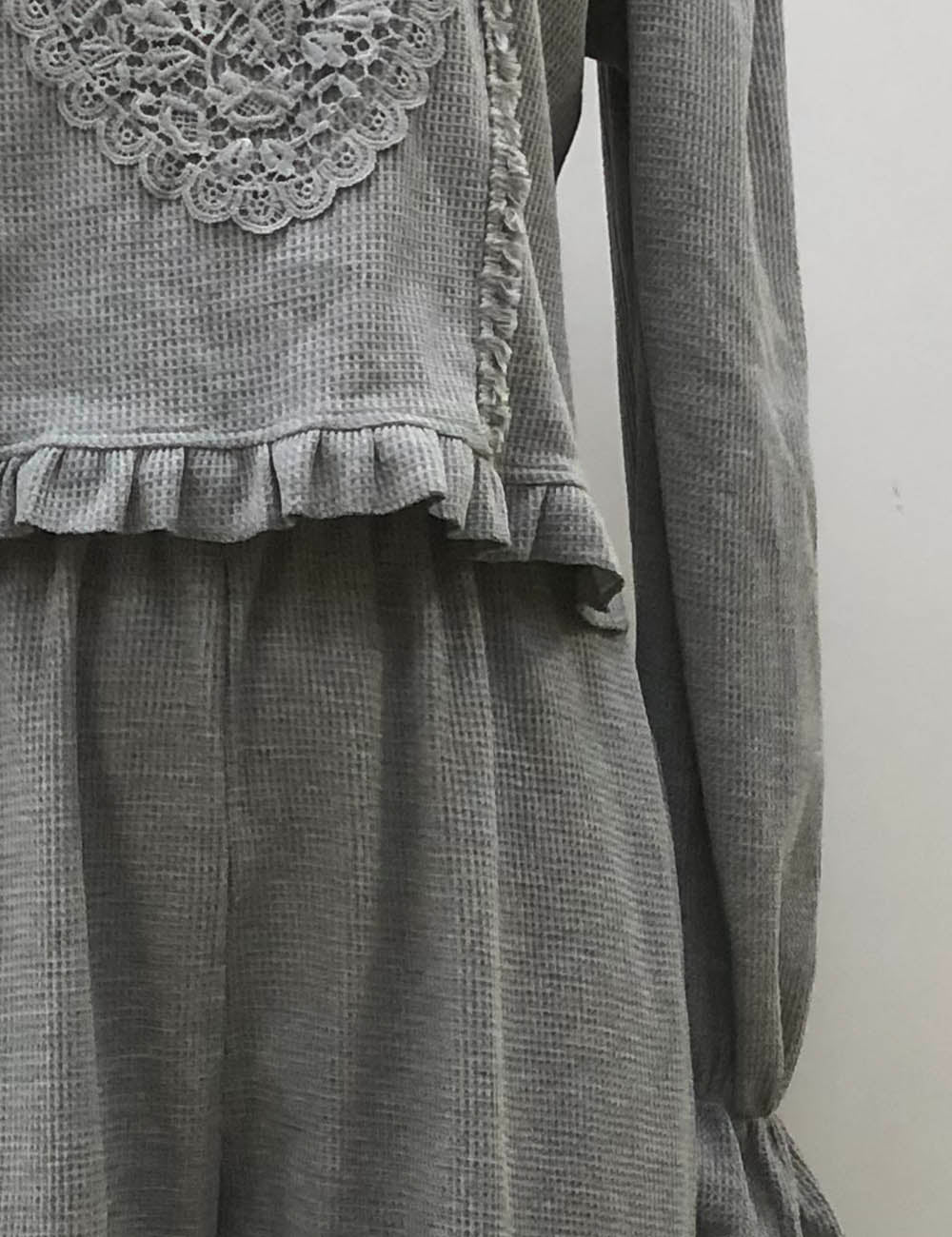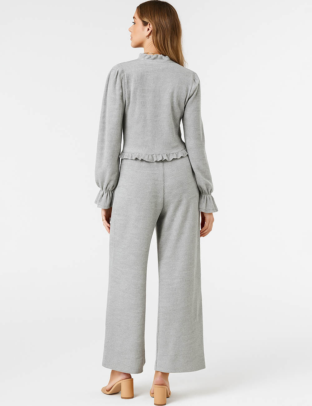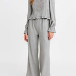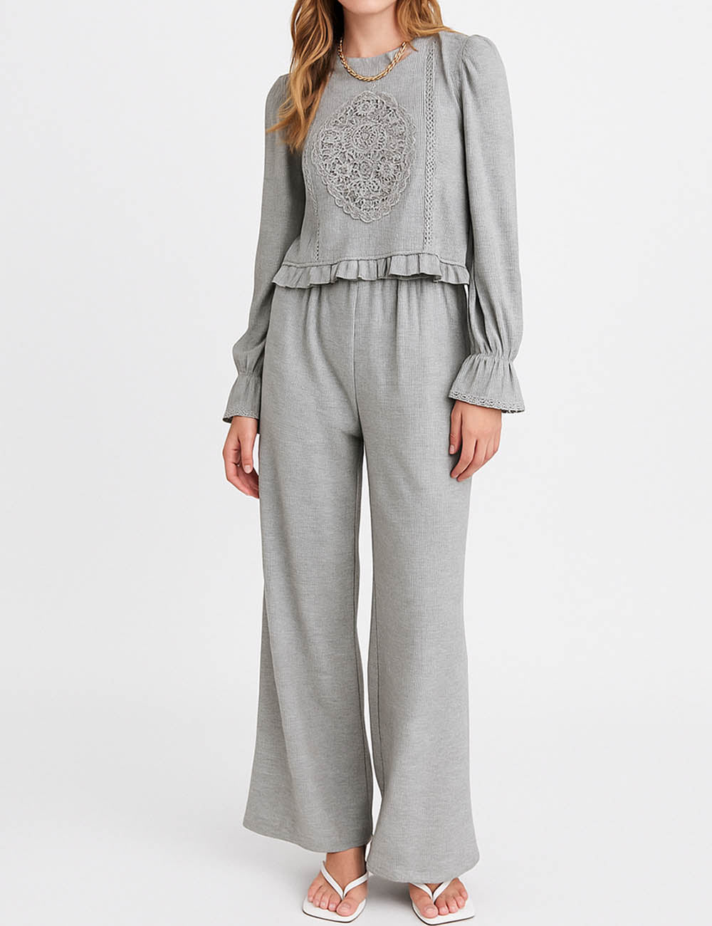 Ladies Lace Crochet Pattern Set Ruffle Top & Pants 2PCS Set