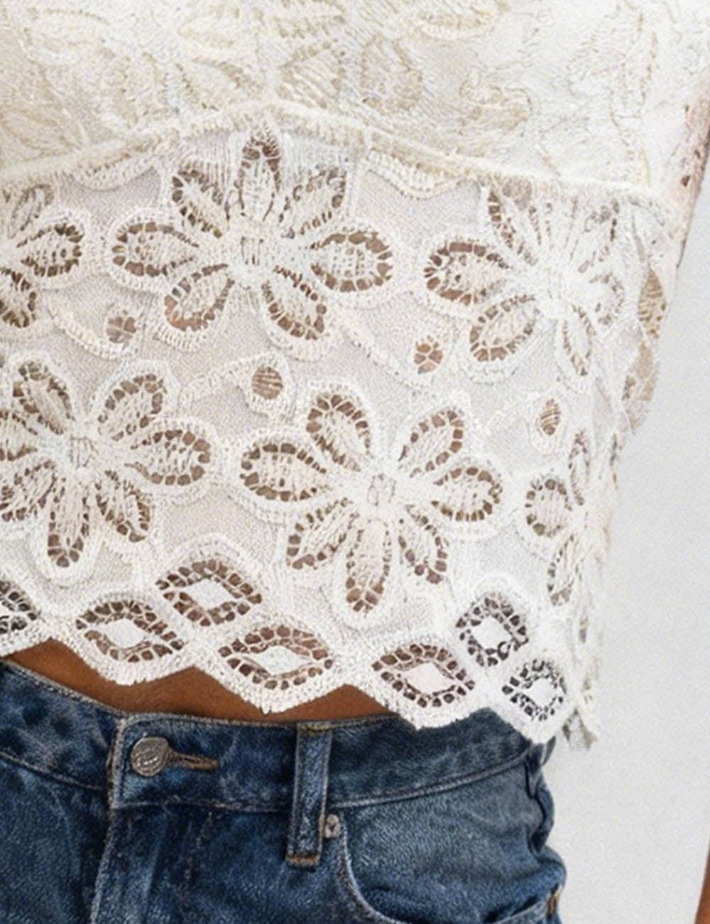 Ladies Lace Crochet Scalloped Hem V-Neck Cami Top