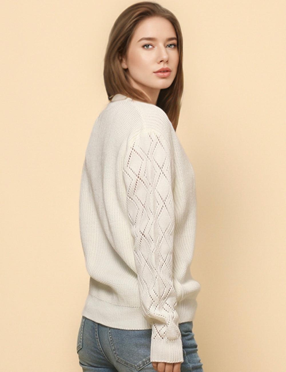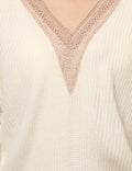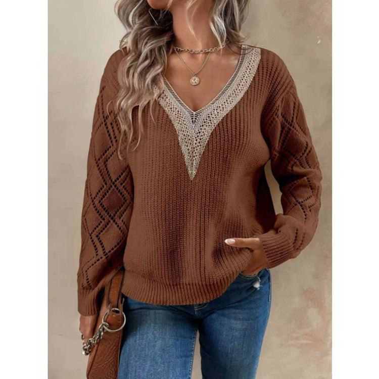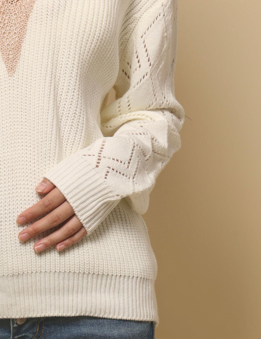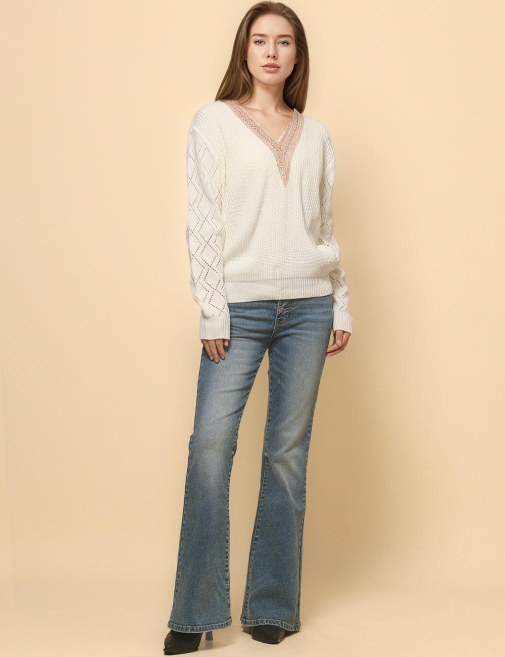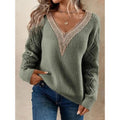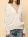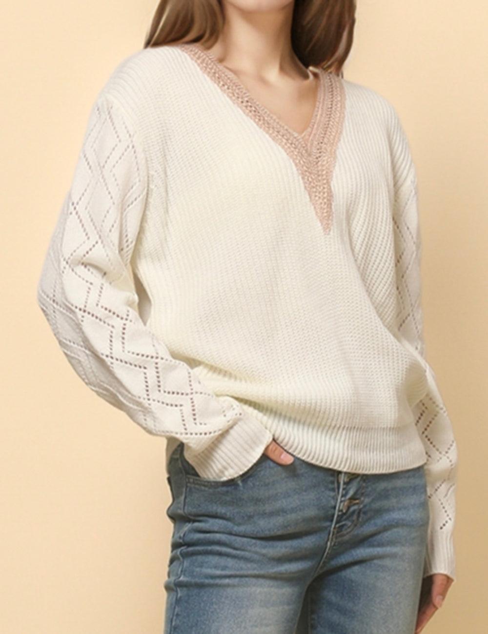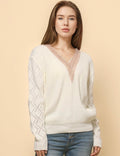 Ladies Lace Edge V-Neck Pullover Sweater SKT4771