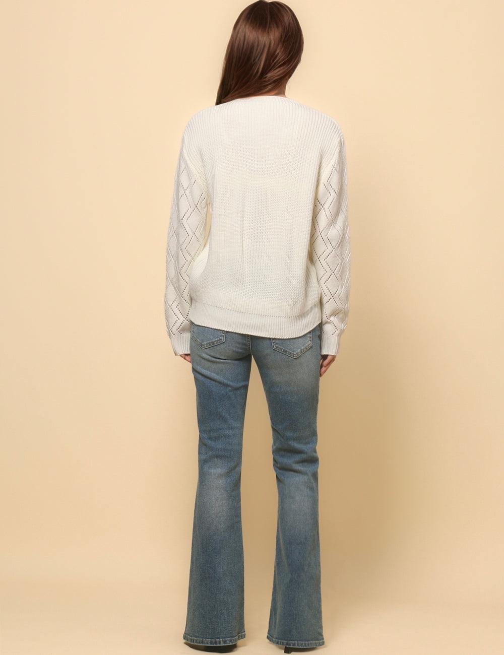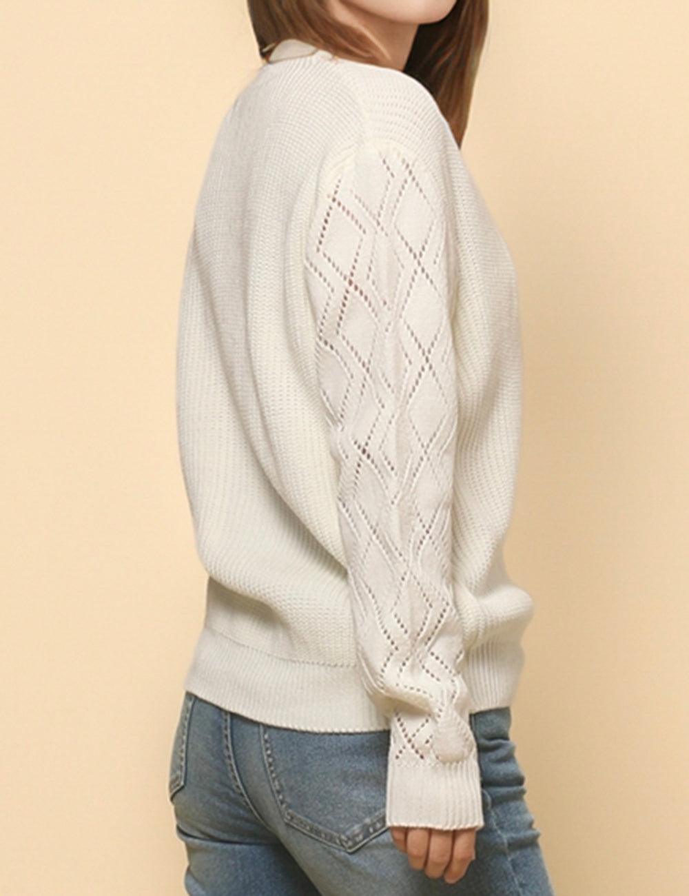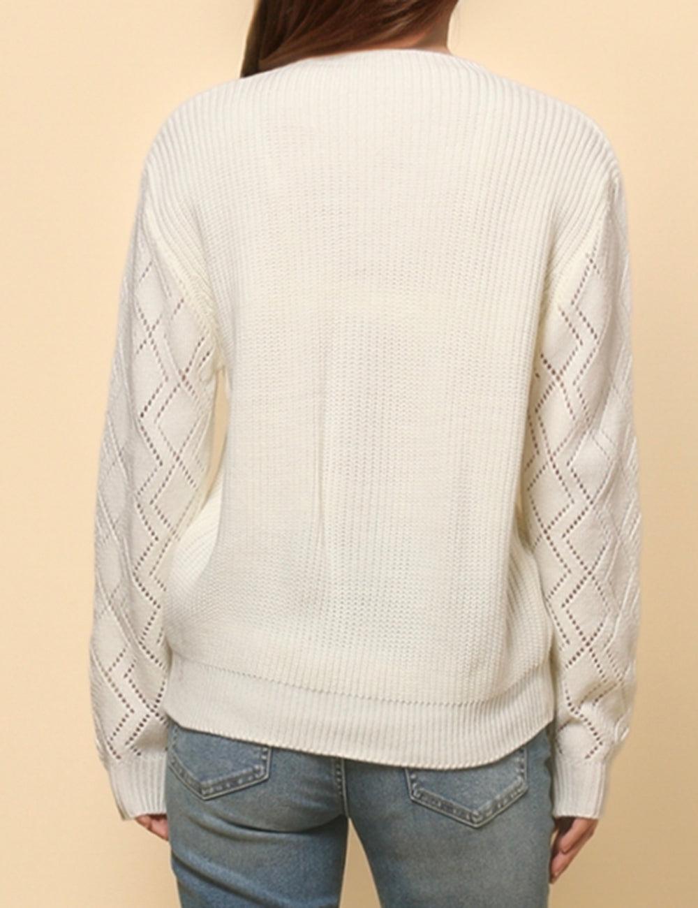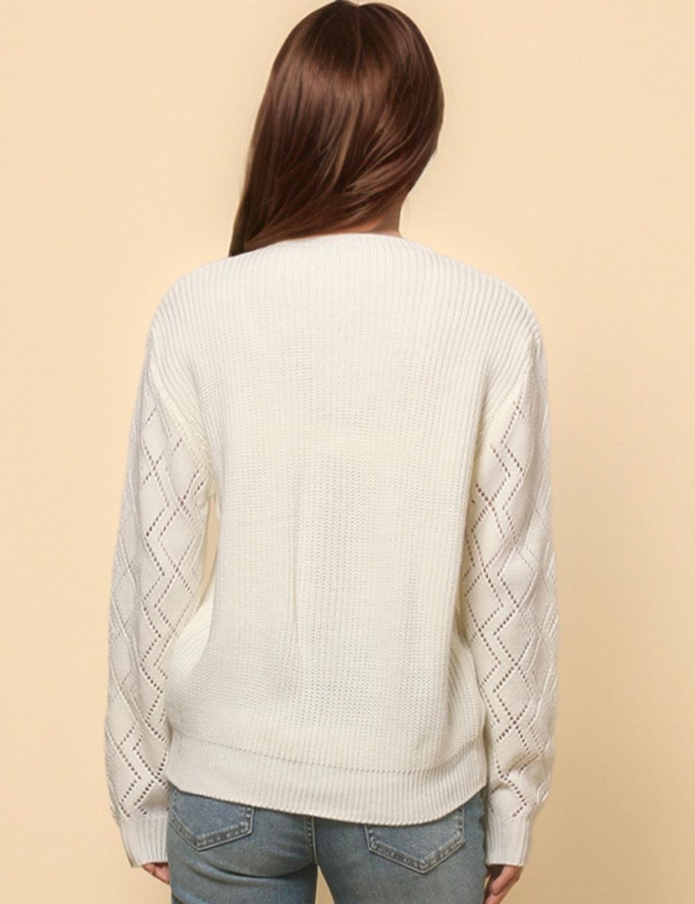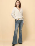 Ladies Lace Edge V-Neck Pullover Sweater SKT4771