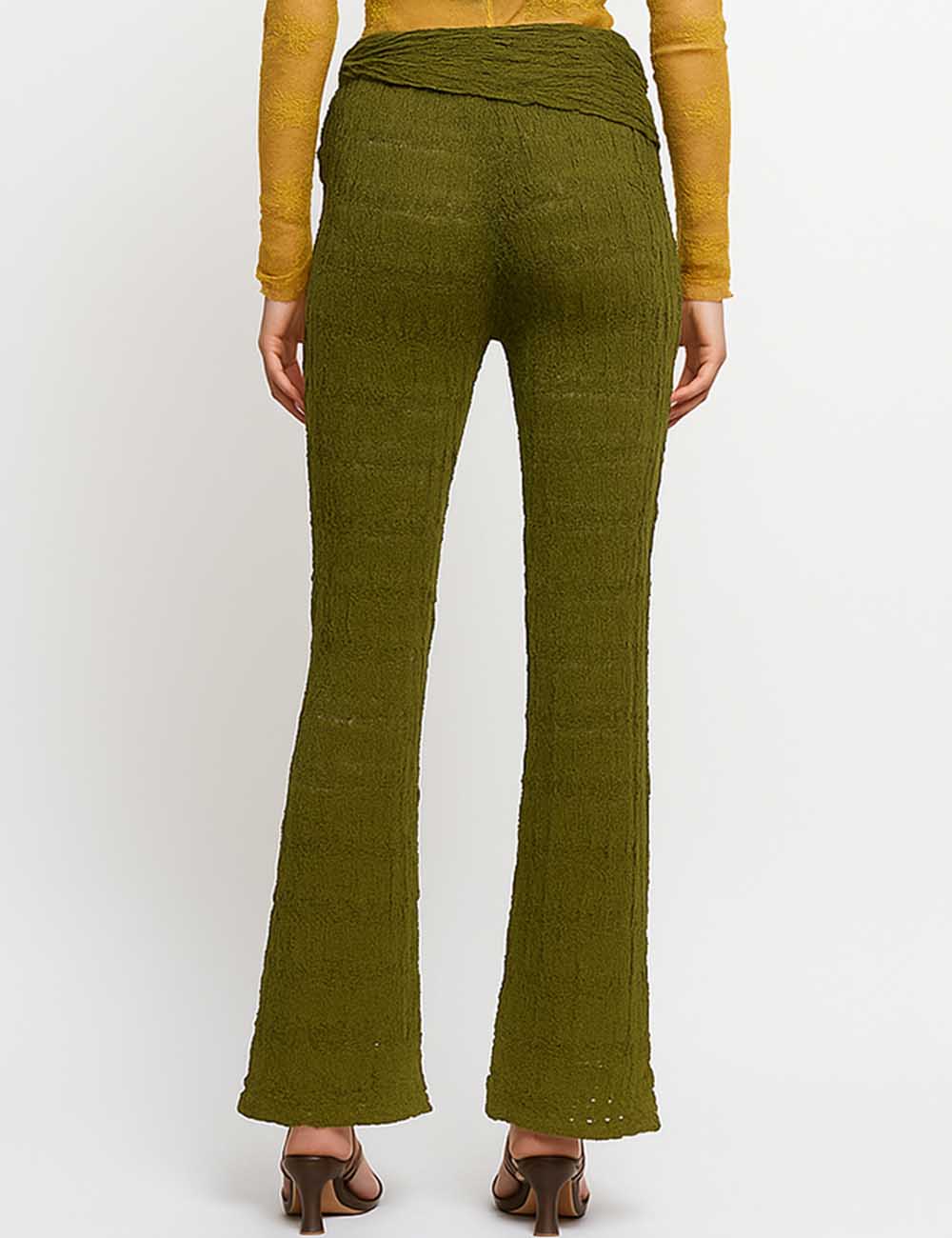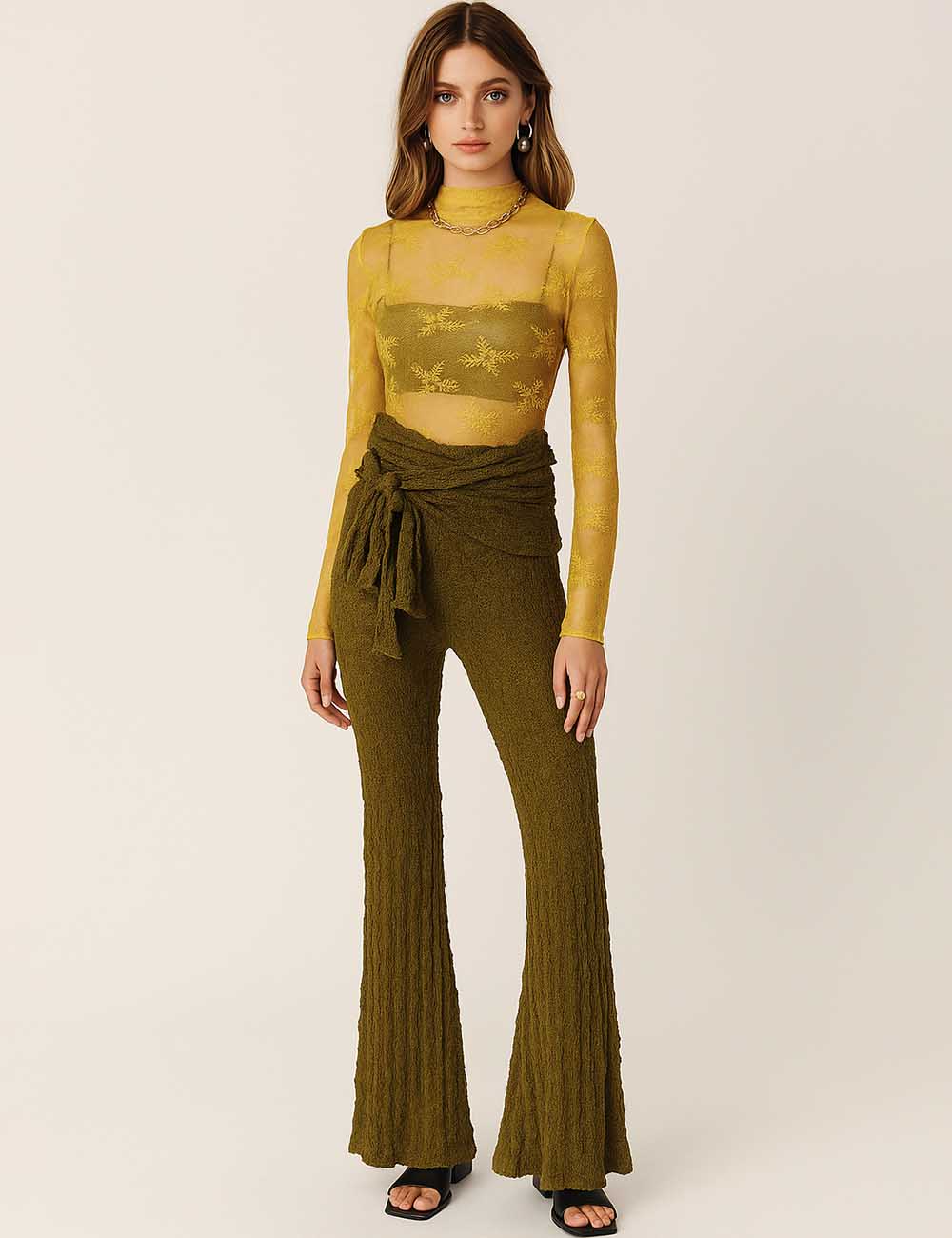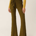Ladies Lace Elastic Waist Front Draping Ruffle Strap Bell Pants