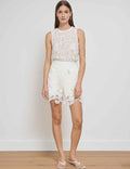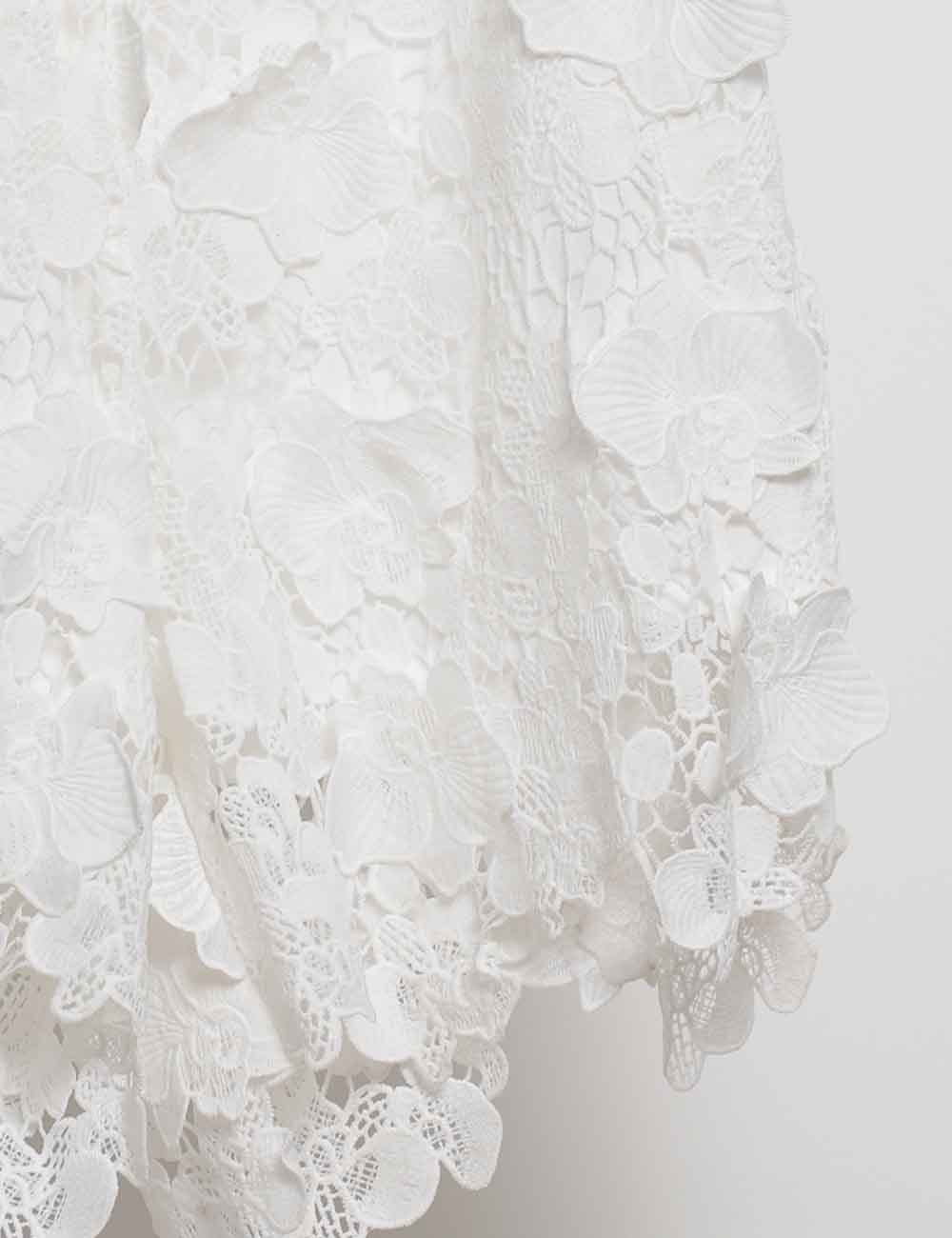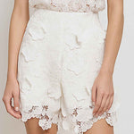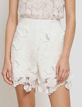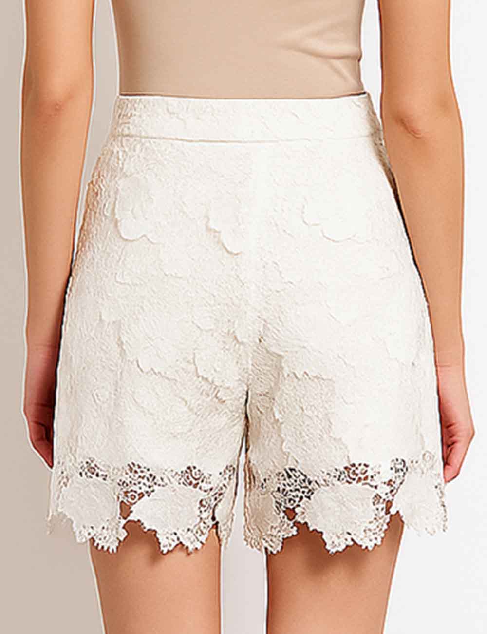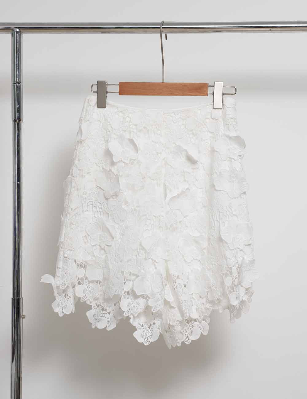 Ladies Lace Floral Embroidery Zipper Closure Wide Leg Shorts