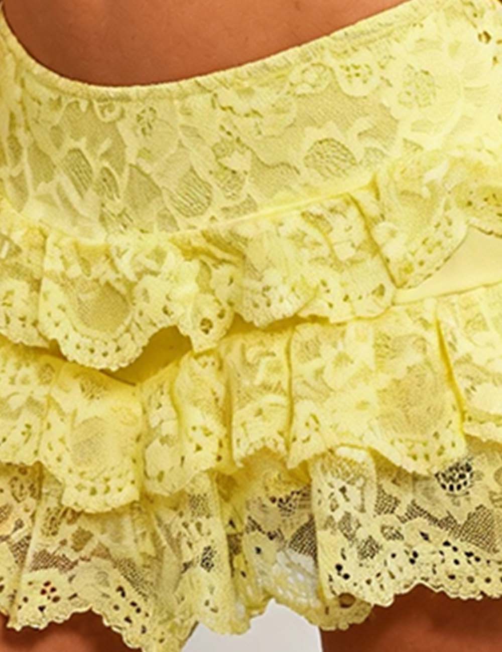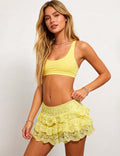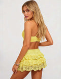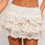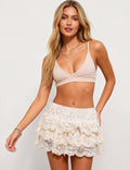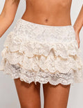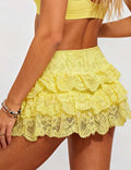Ladies Lace Elastic Waist Tiered Ruffle Mini Skorts