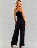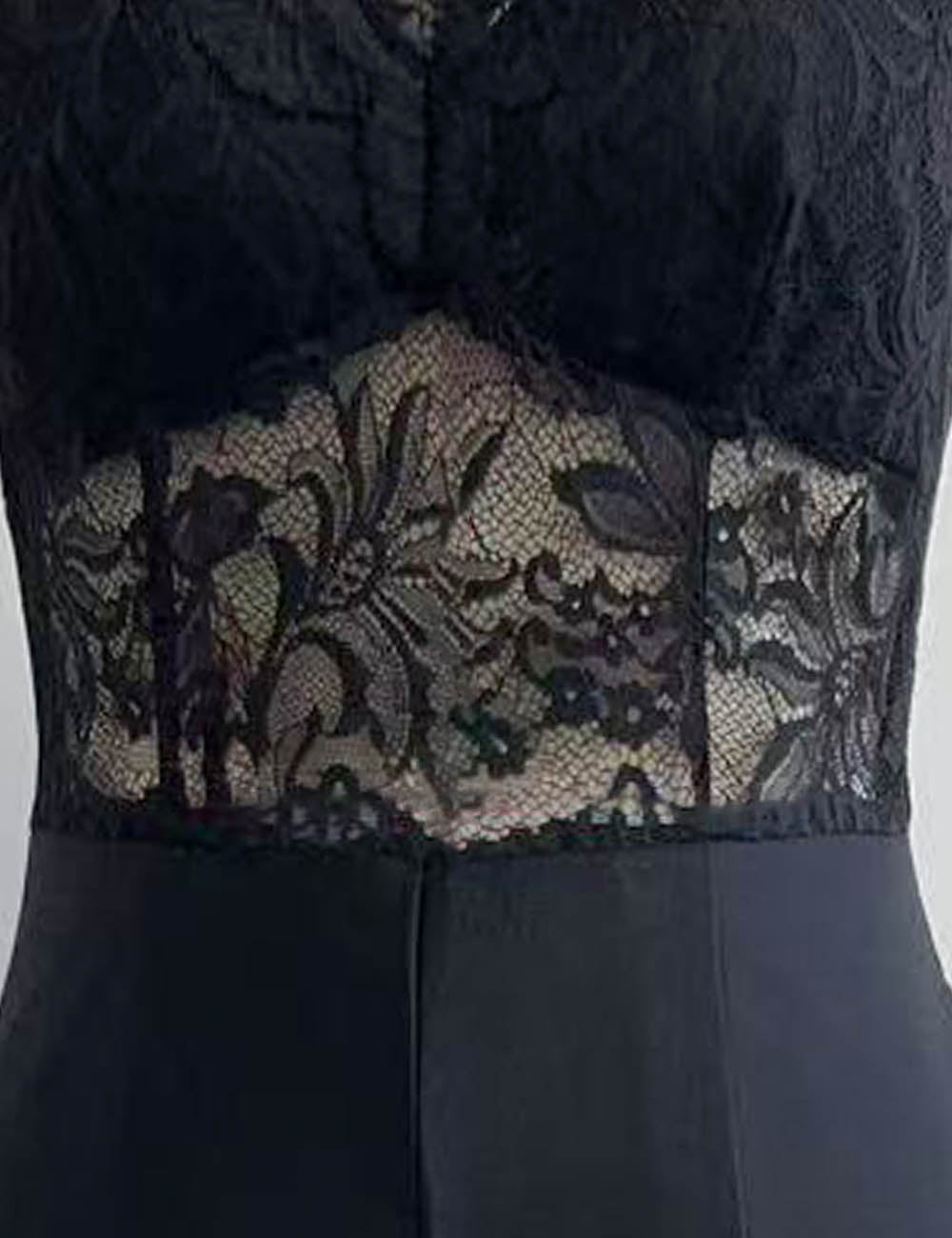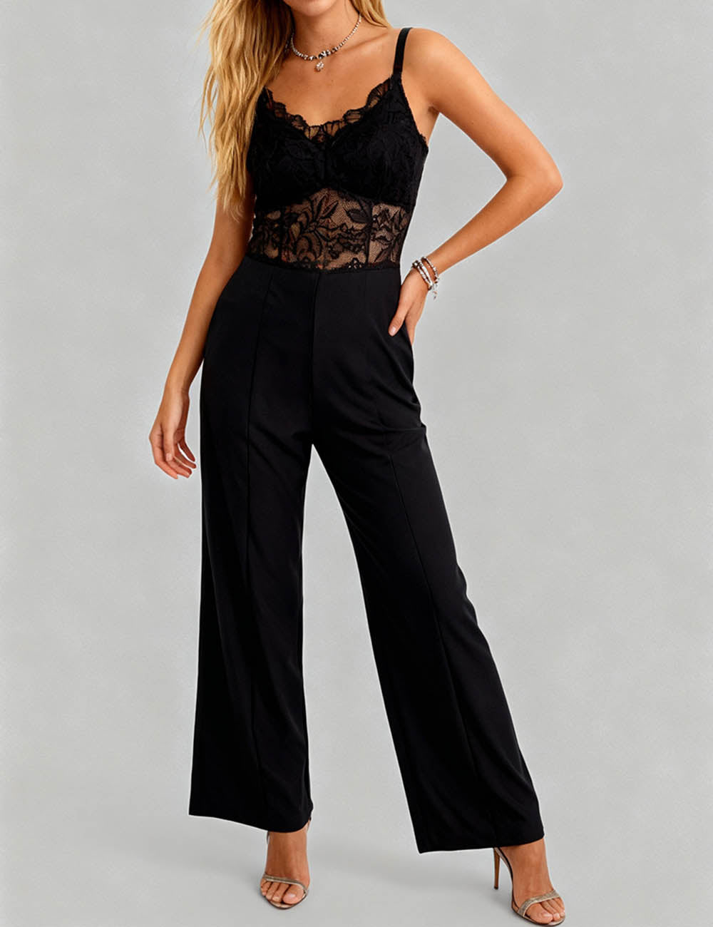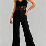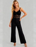 Ladies Lace See Through Spaghetti Strap Wide Leg Jumpsuit