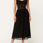 Ladies Lace Sheer Sweetheart Neckline Cap Sleeves Midi Dress