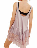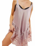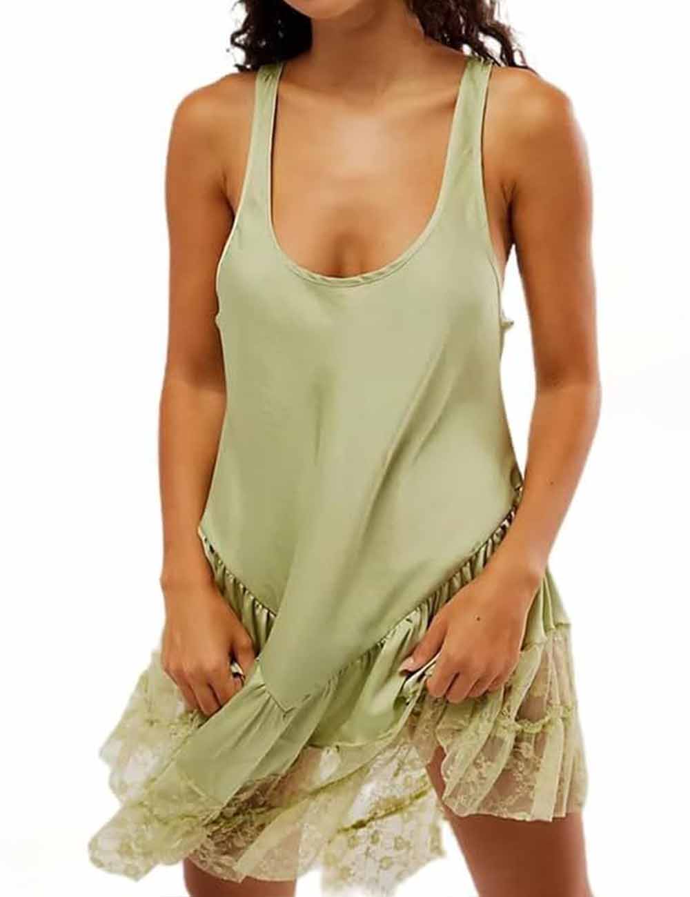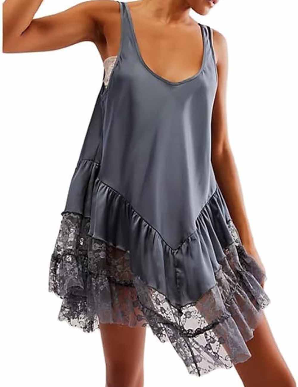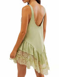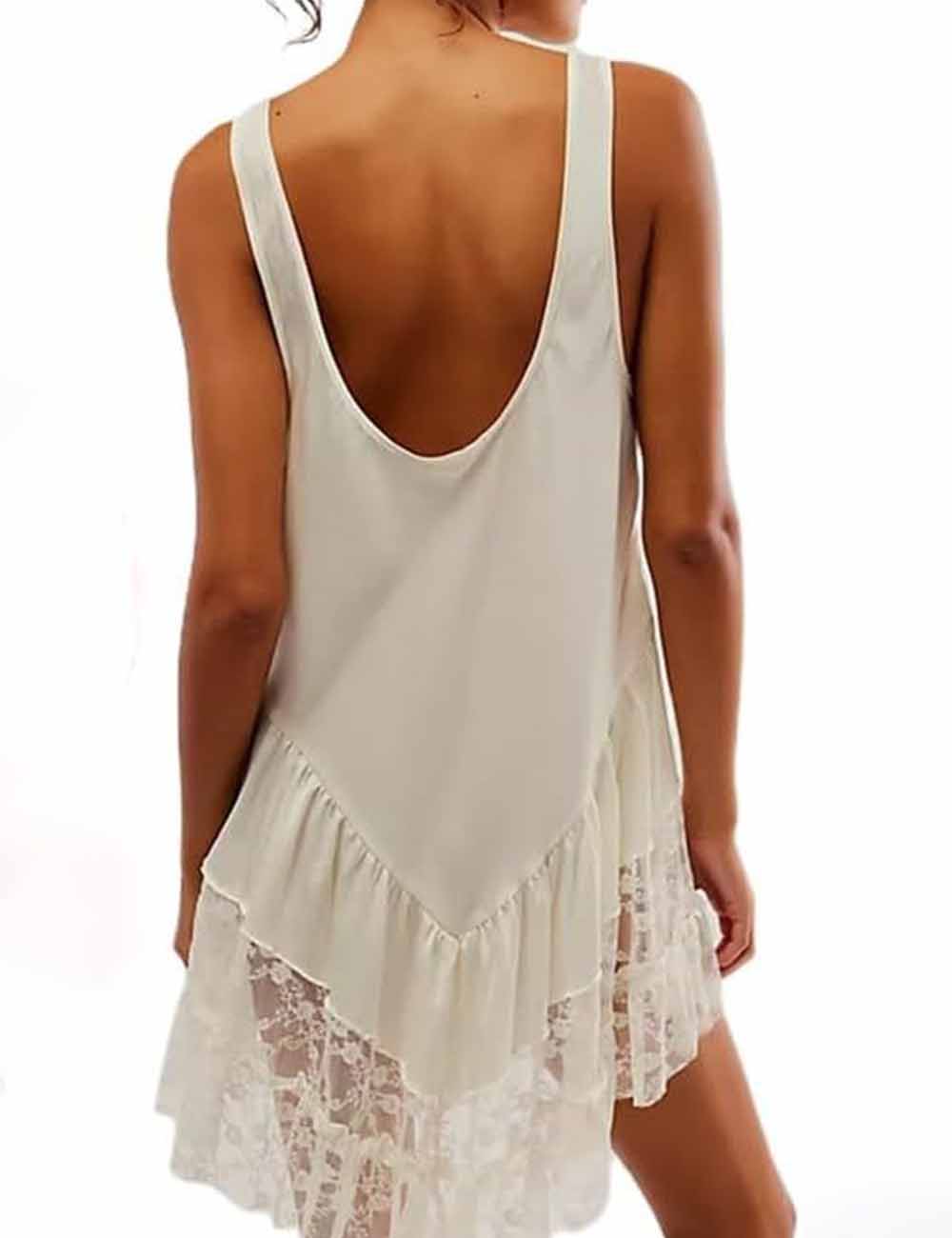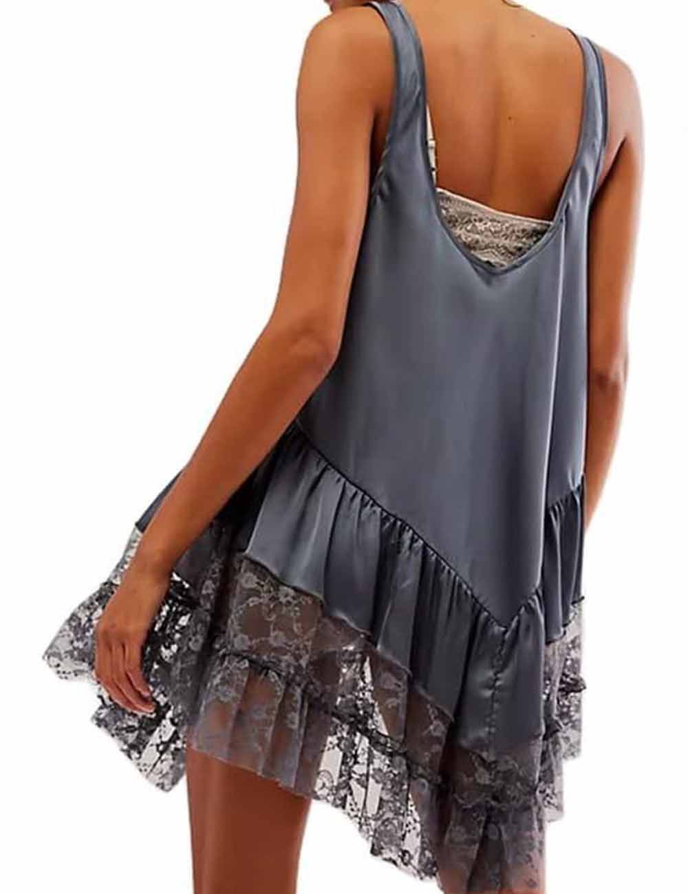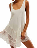 Ladies Lace Splice U Neck Sleeves Loungewear Mini Dress