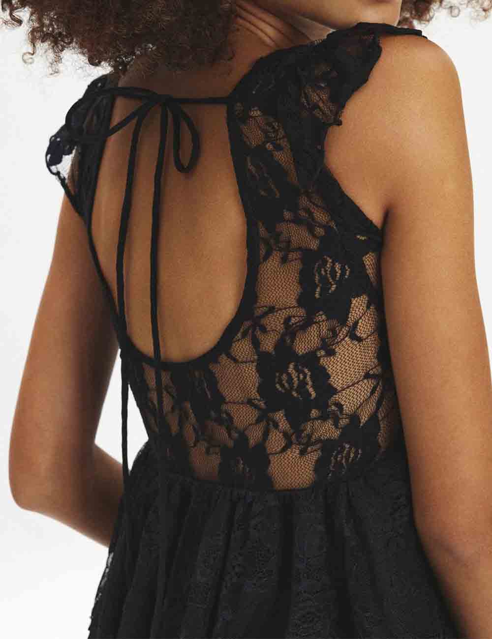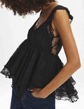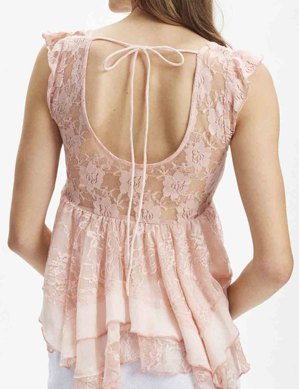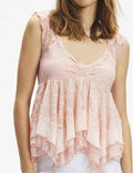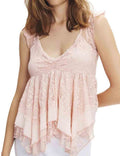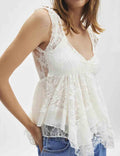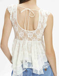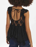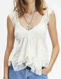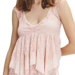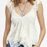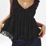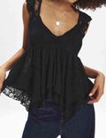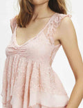 Ladies Lace Sweetheart Neckline Flutter Sleeveless Layered Babydoll Blouse
