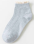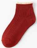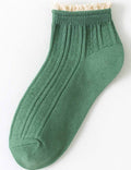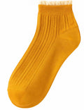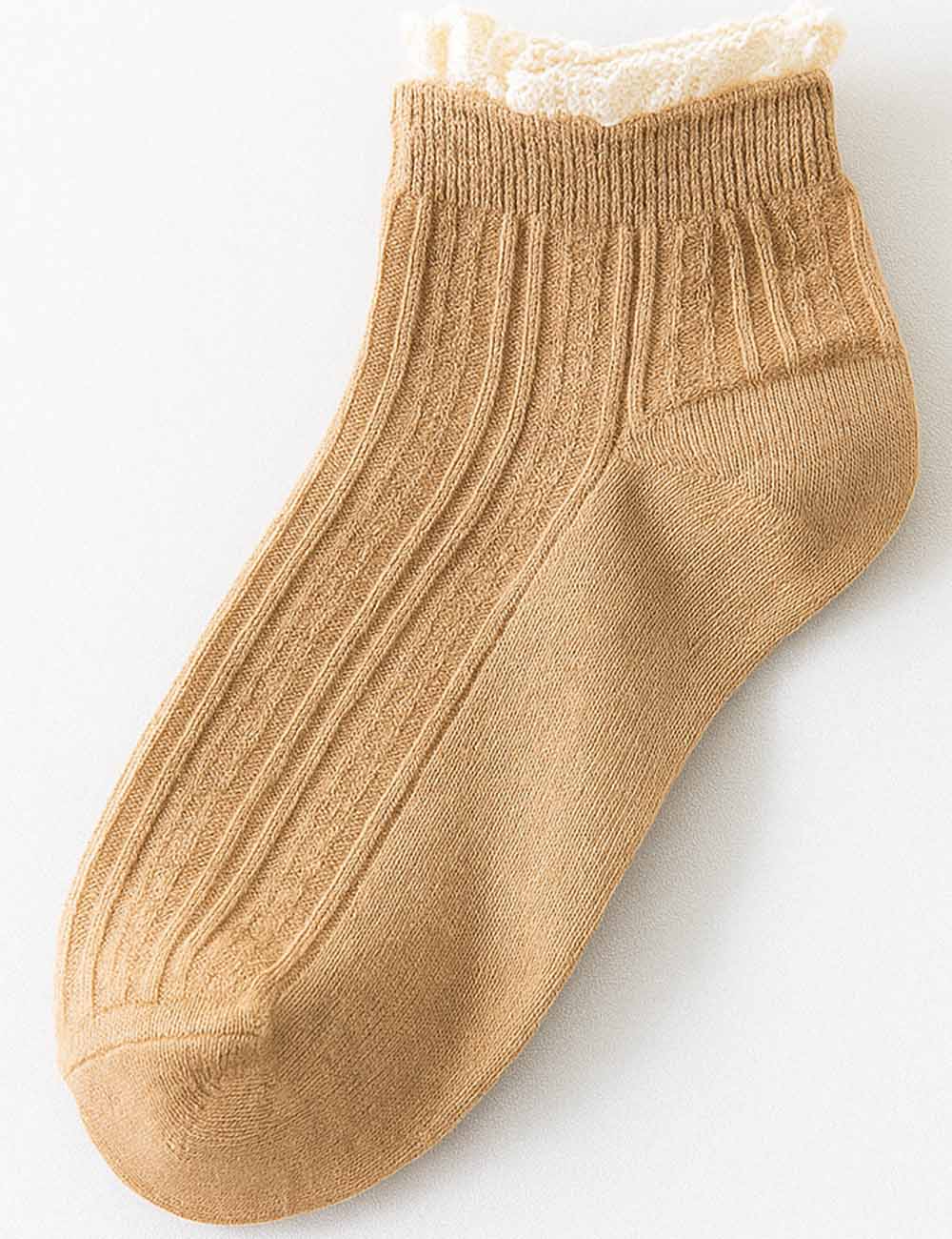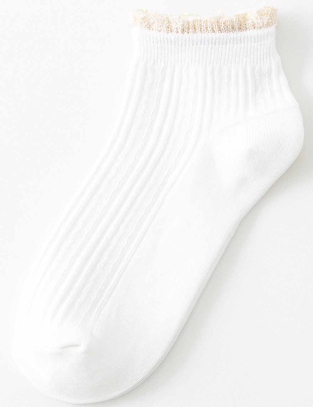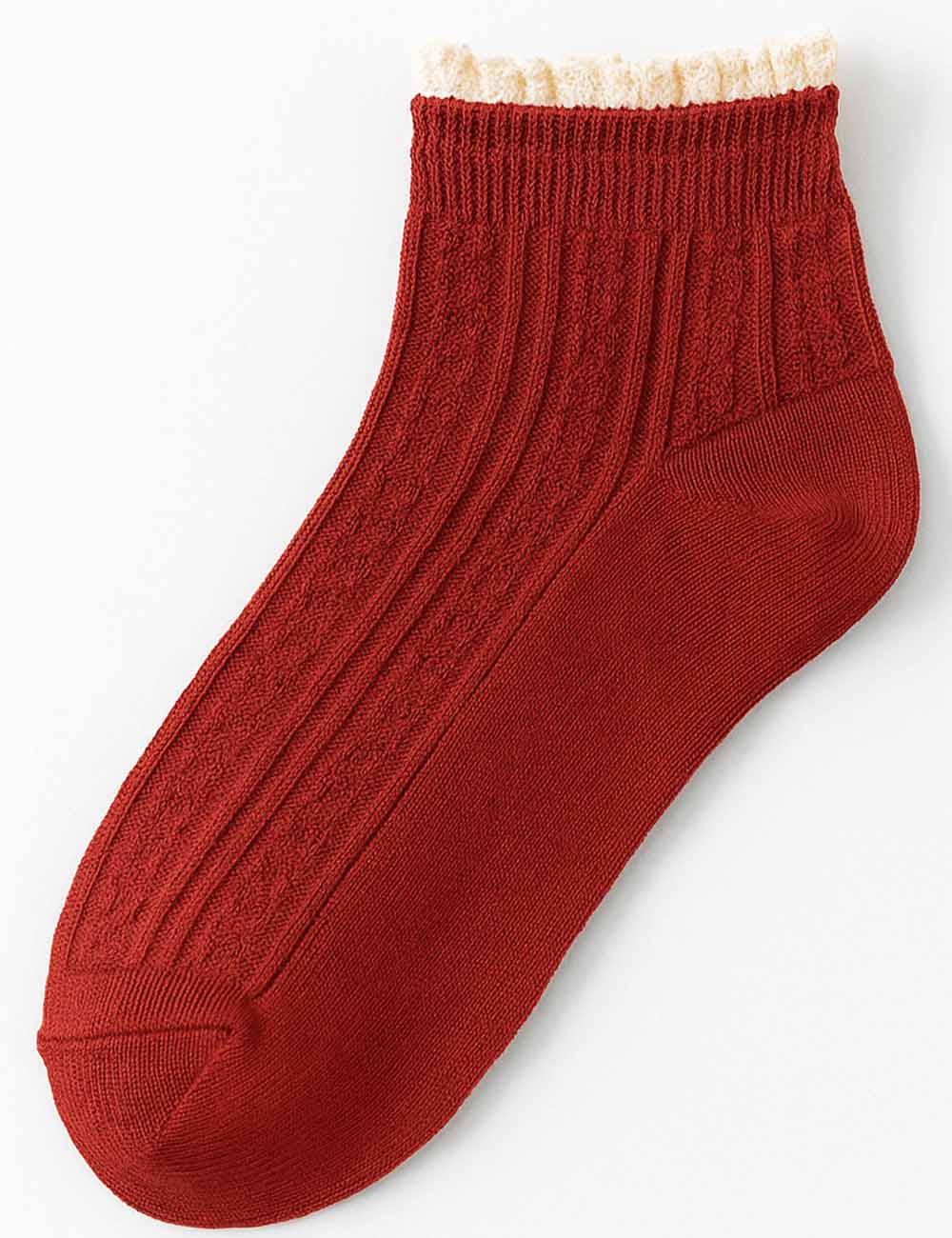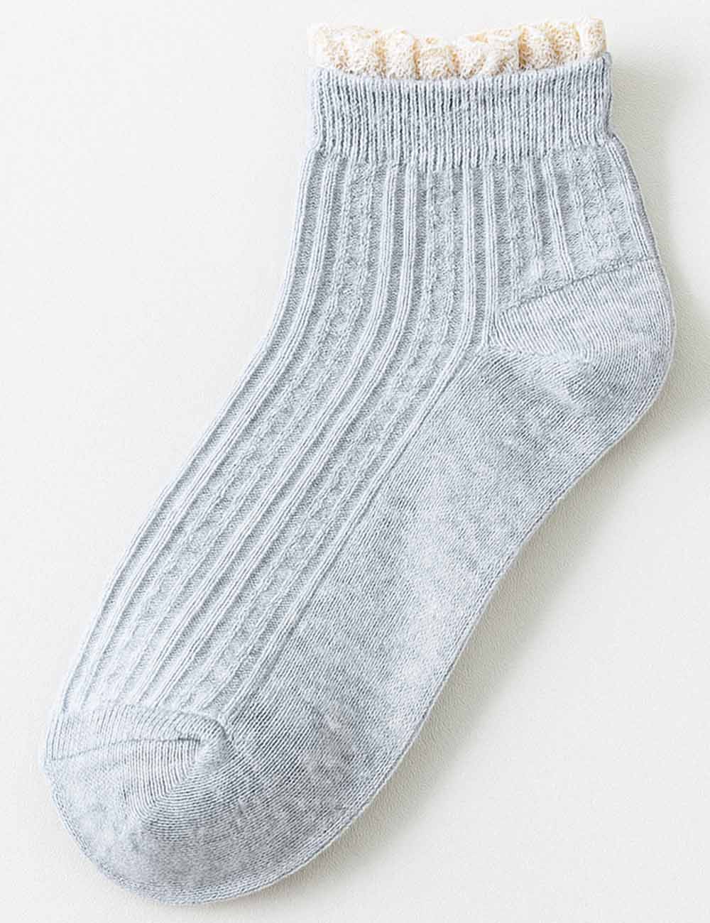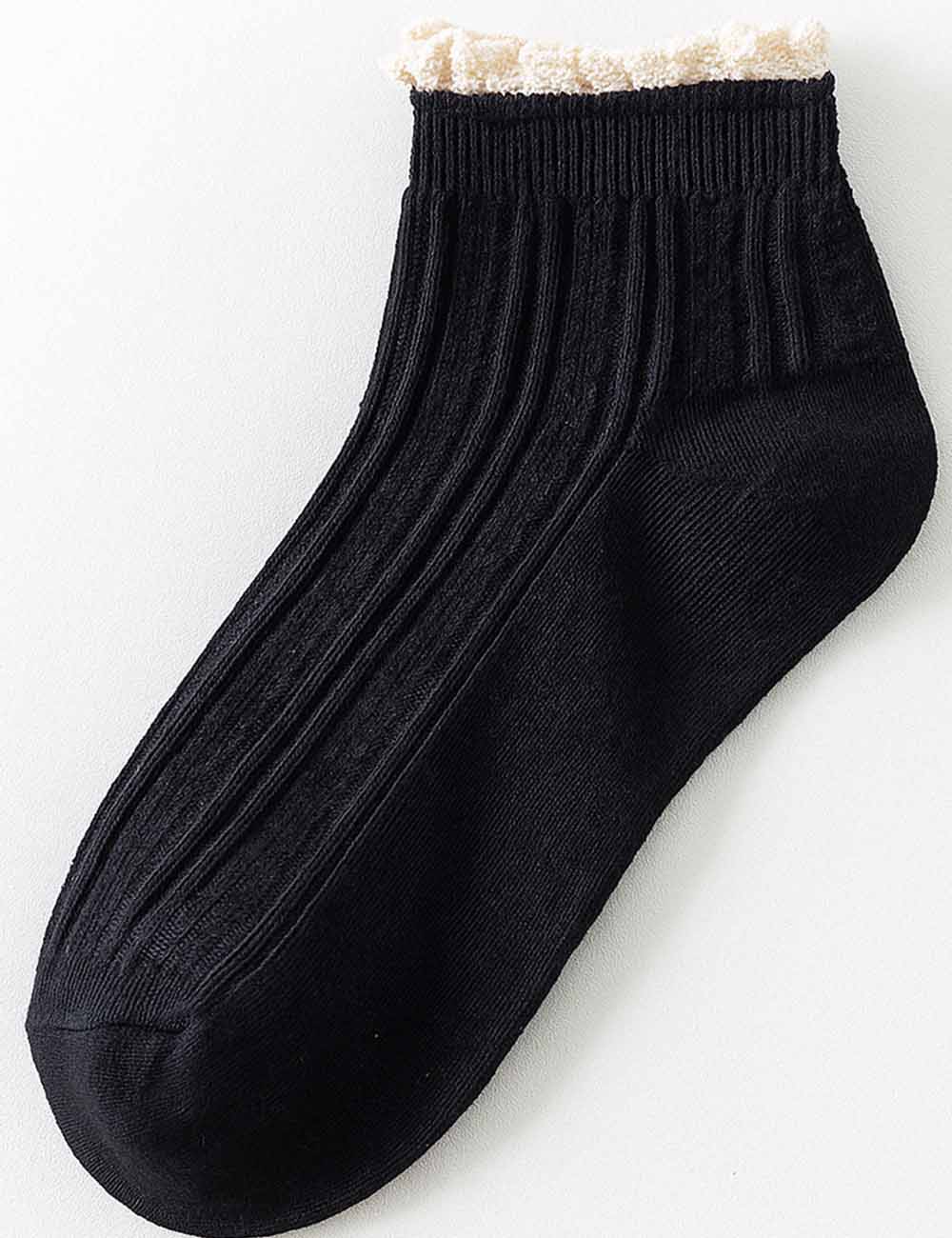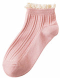 Ladies Lace Trim Ribbed Knit Ankle Crew Socks