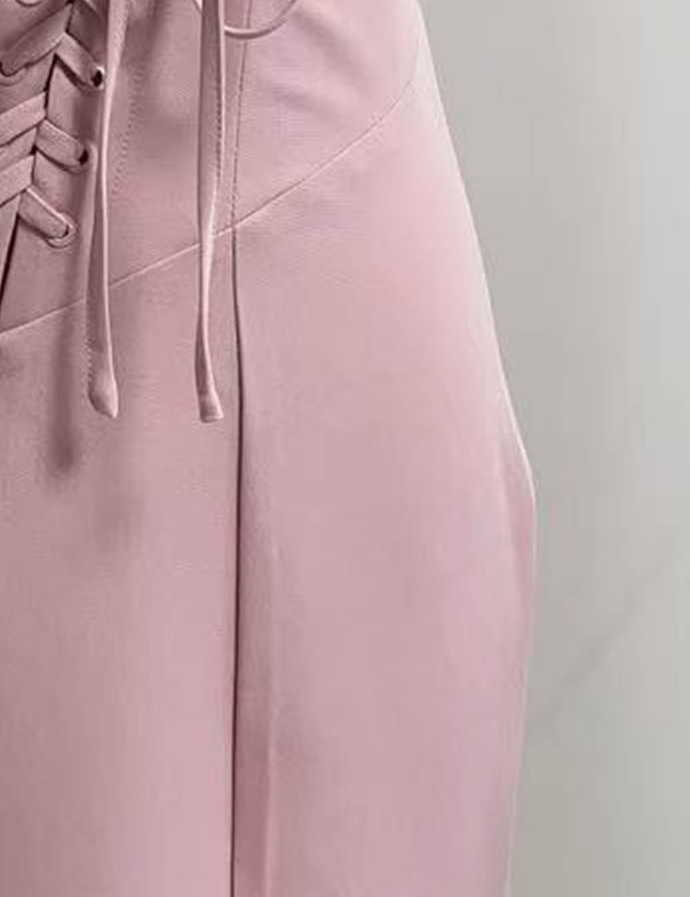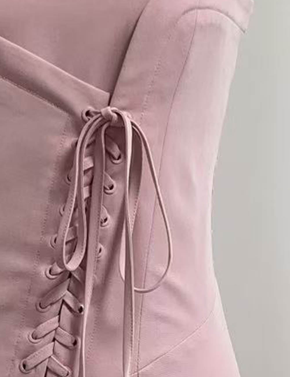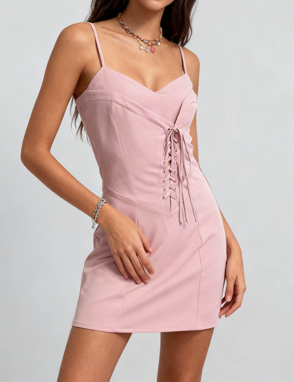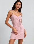 Ladies Lace-Up Front Smocked Back Cami Mini Dress
