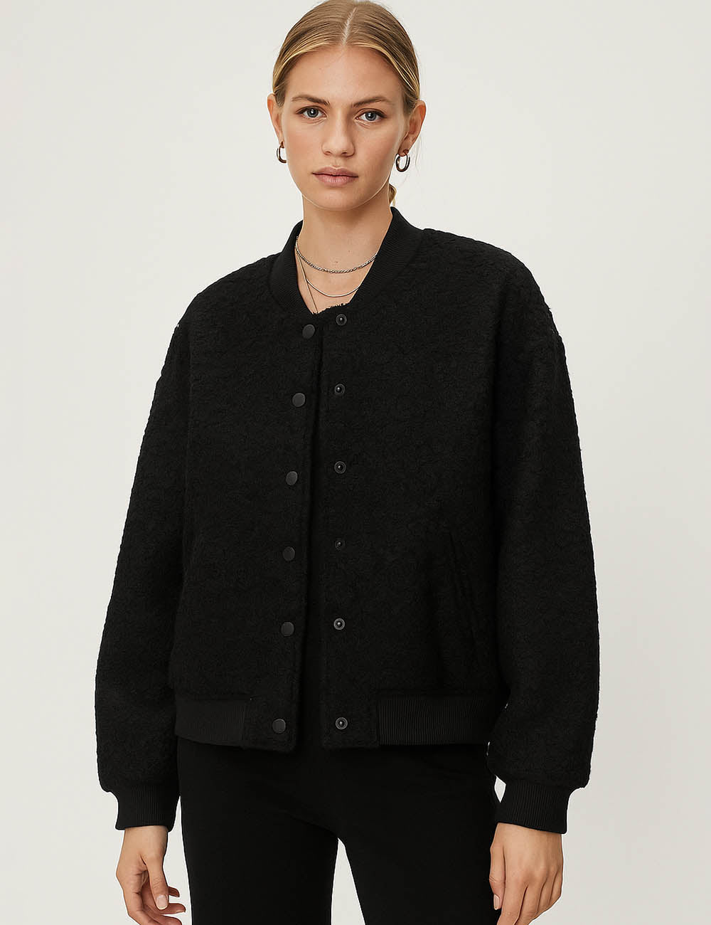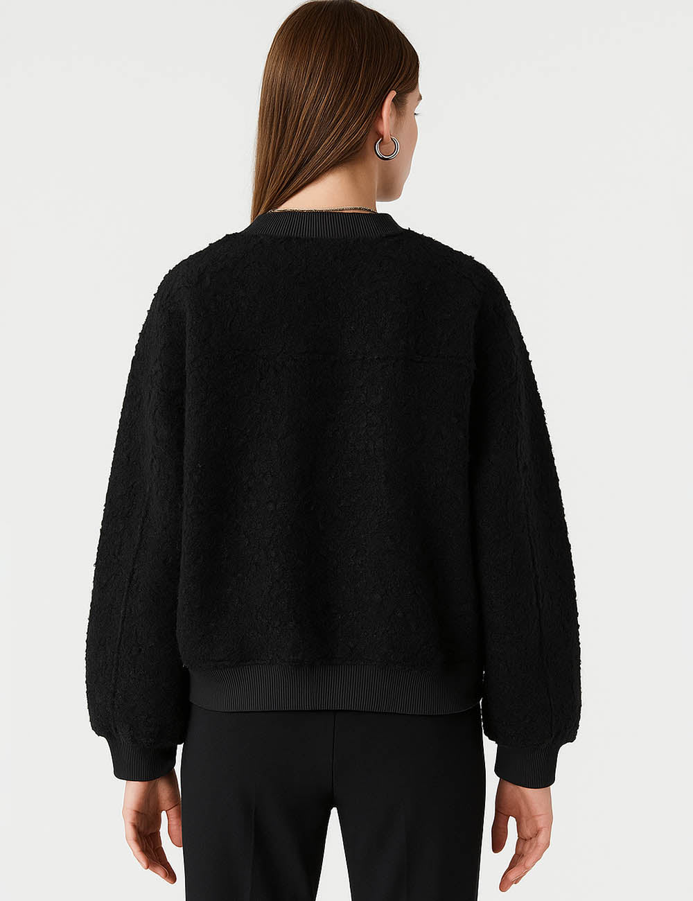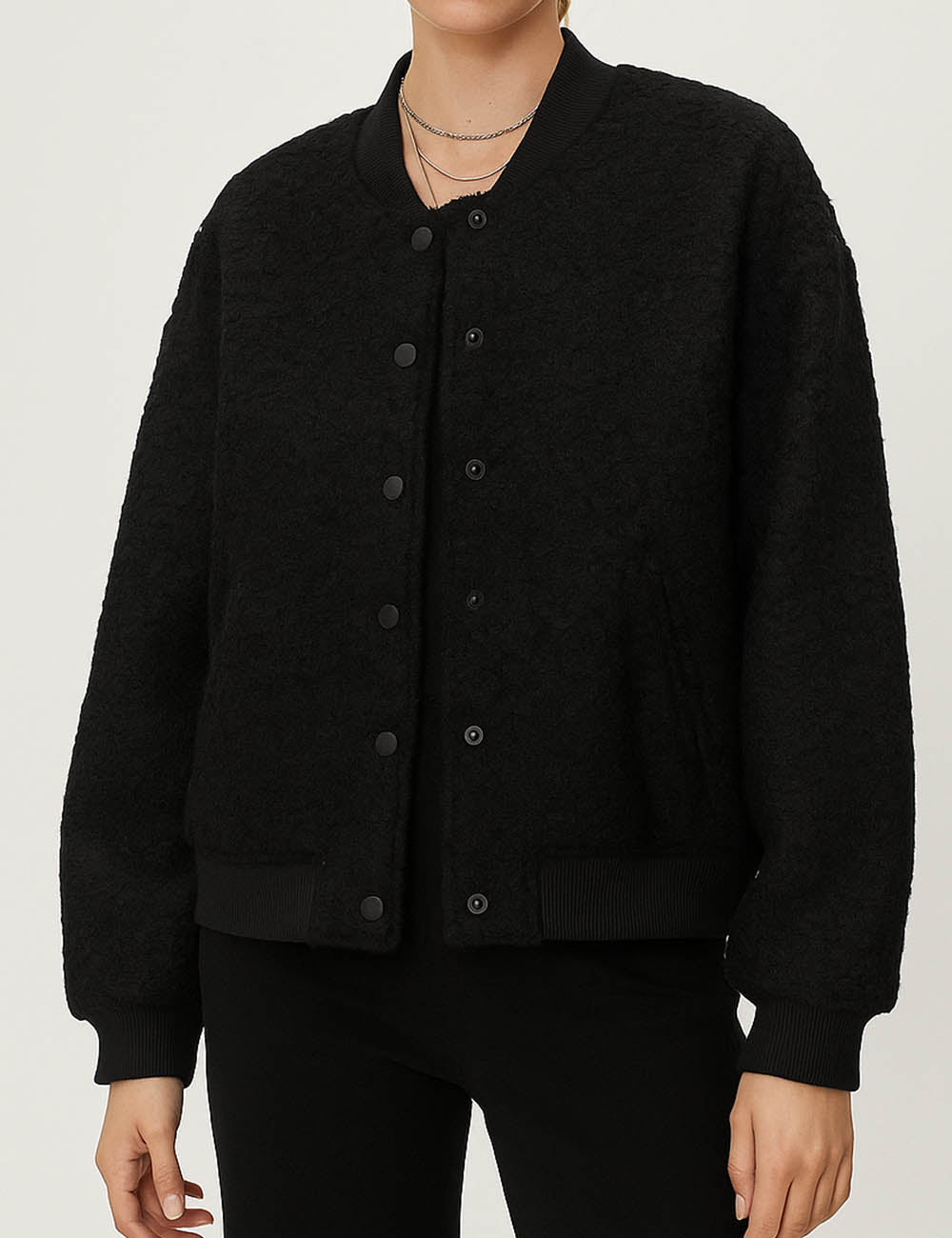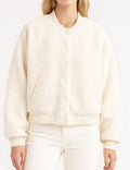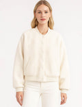 Ladies Lambswool Fleece Baseball Collar Long Sleeves Jacket