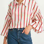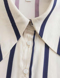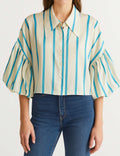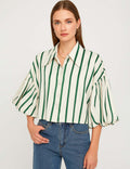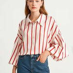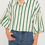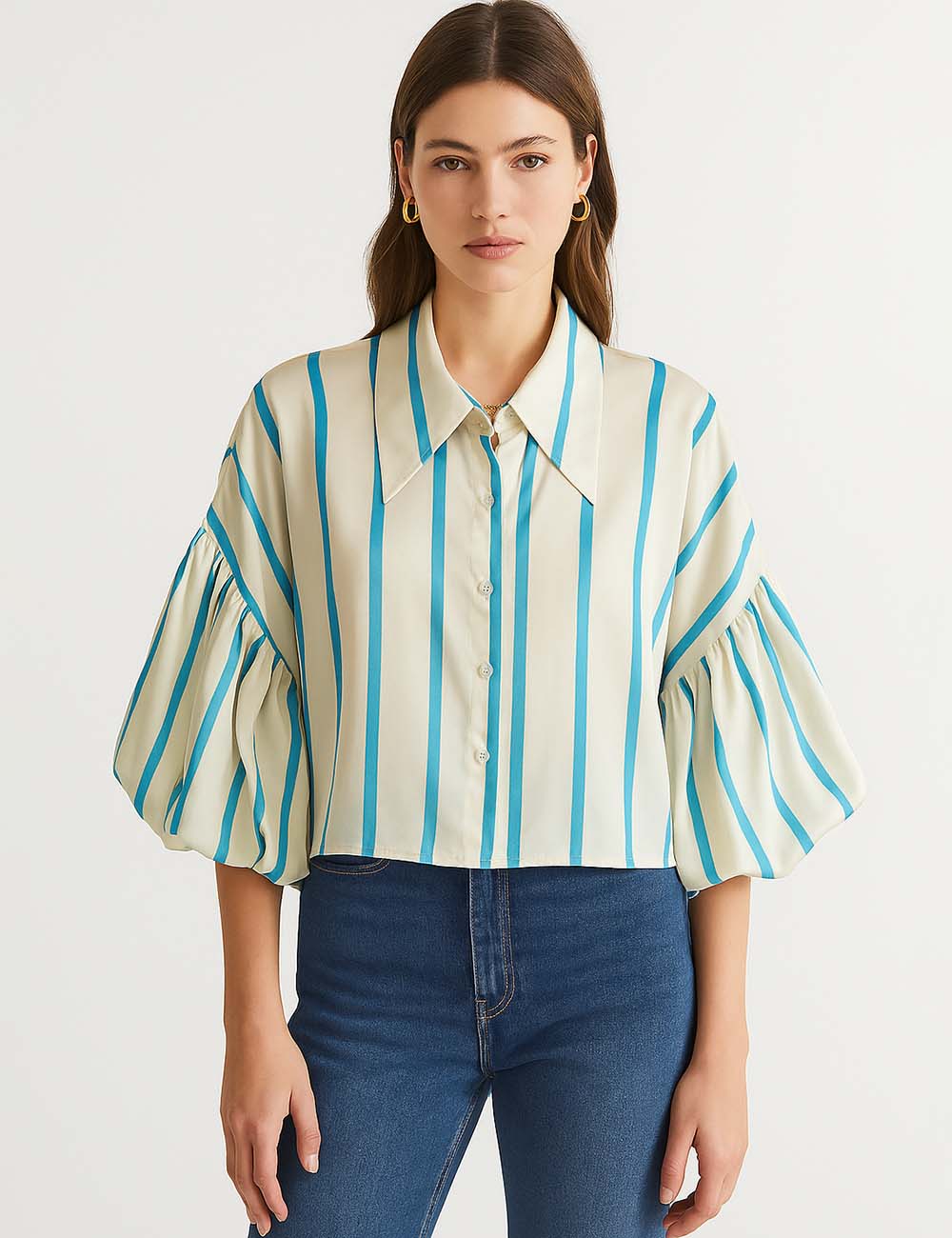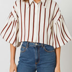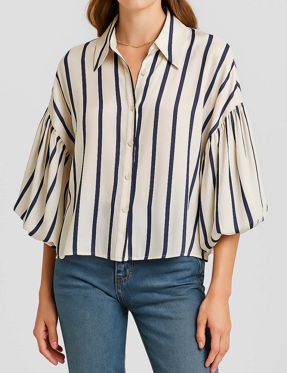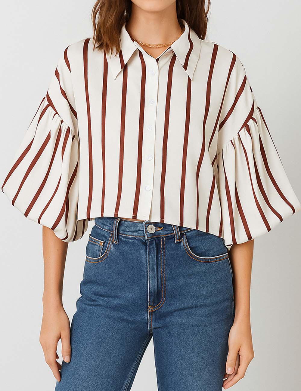 Ladies Lantern Sleeve Striped Short Shirt SKT4815