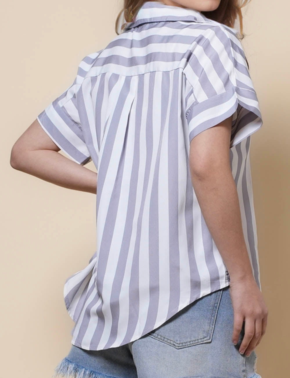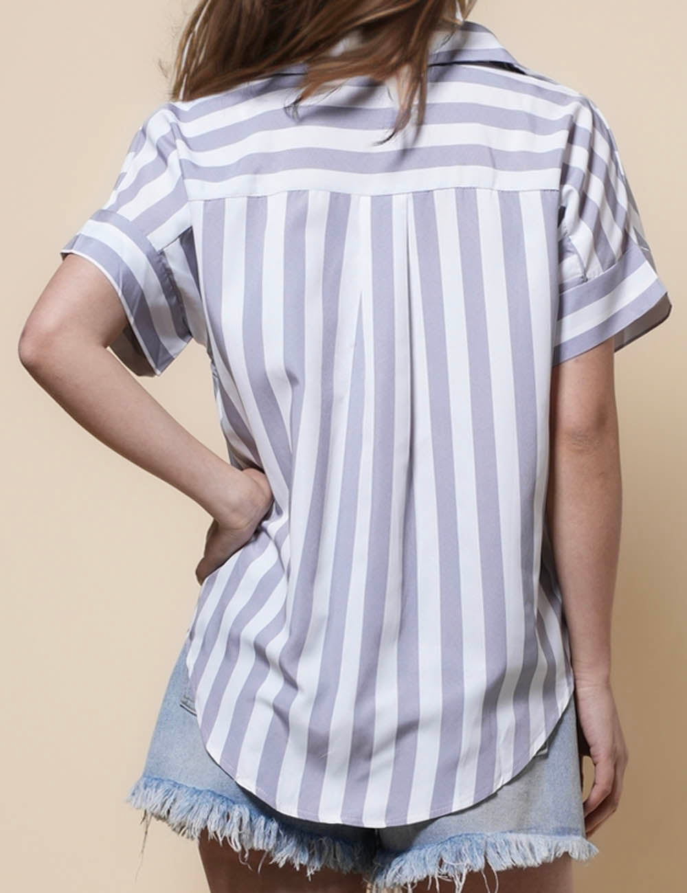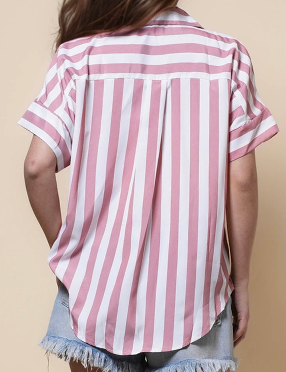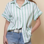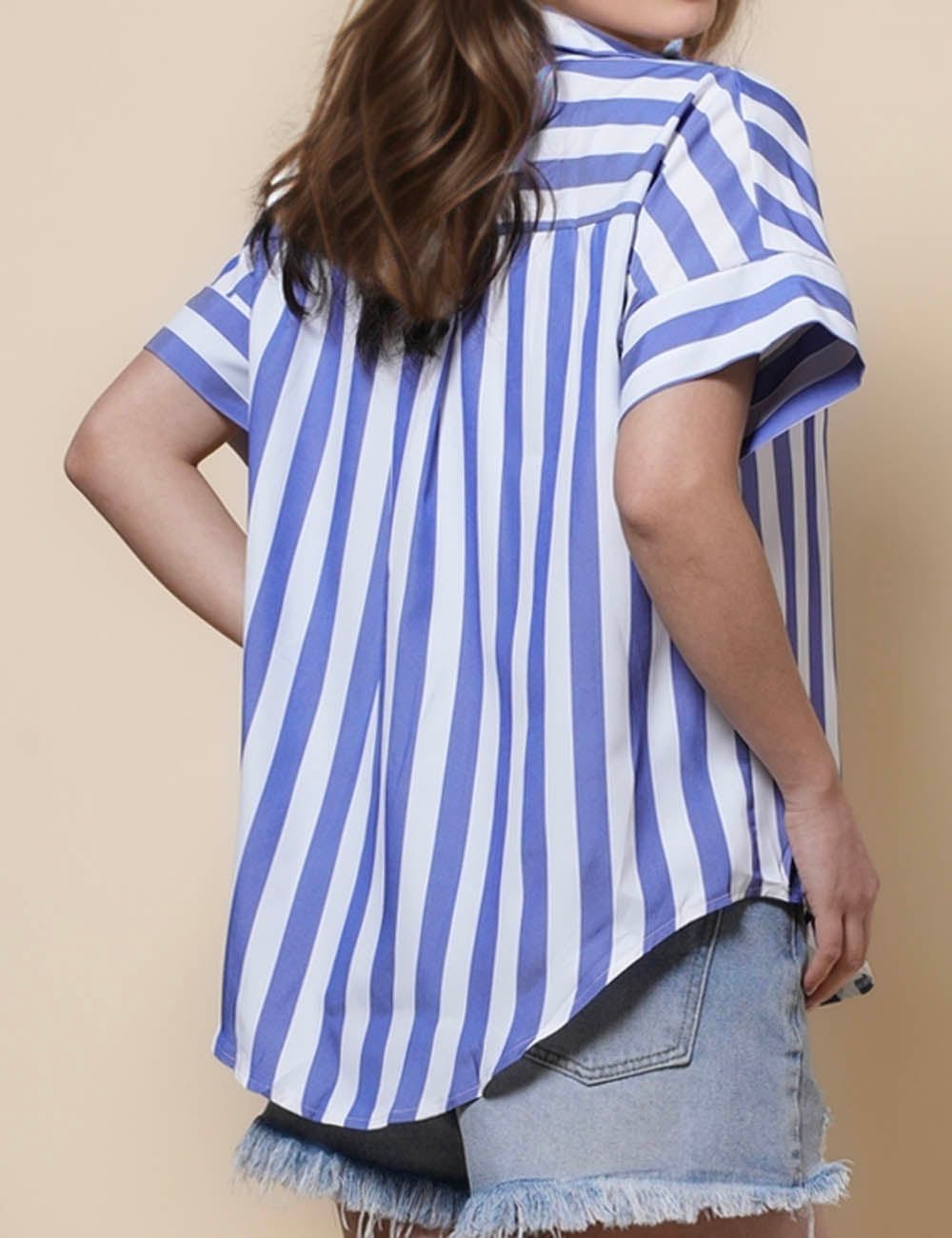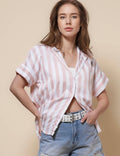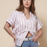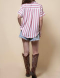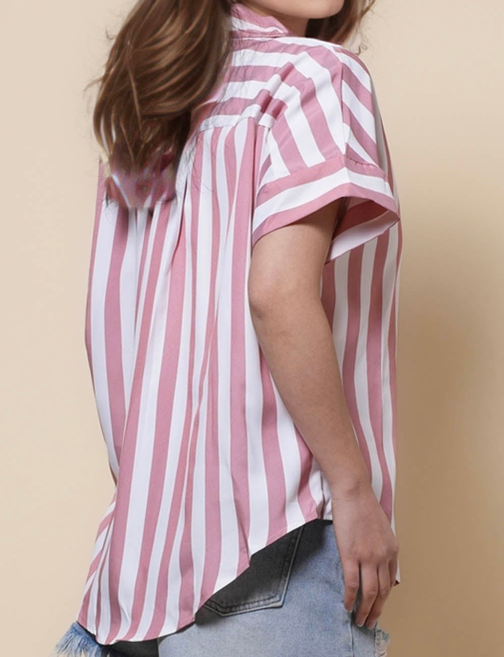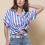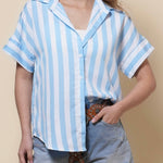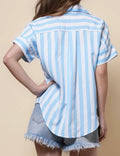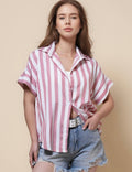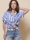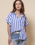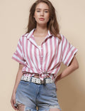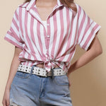 Ladies Lapel Button Down Striped Shirt SKT41286