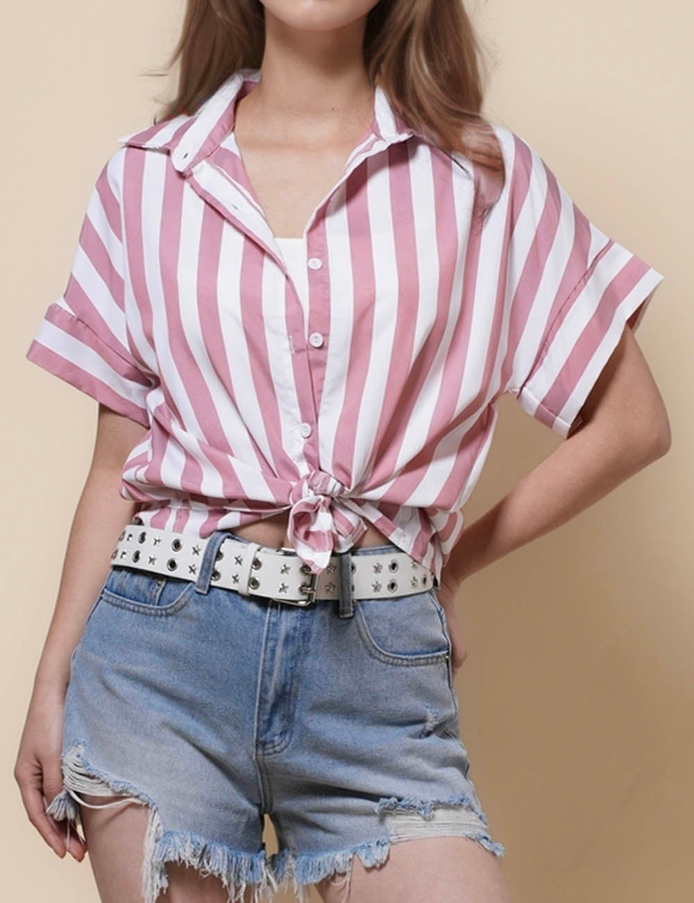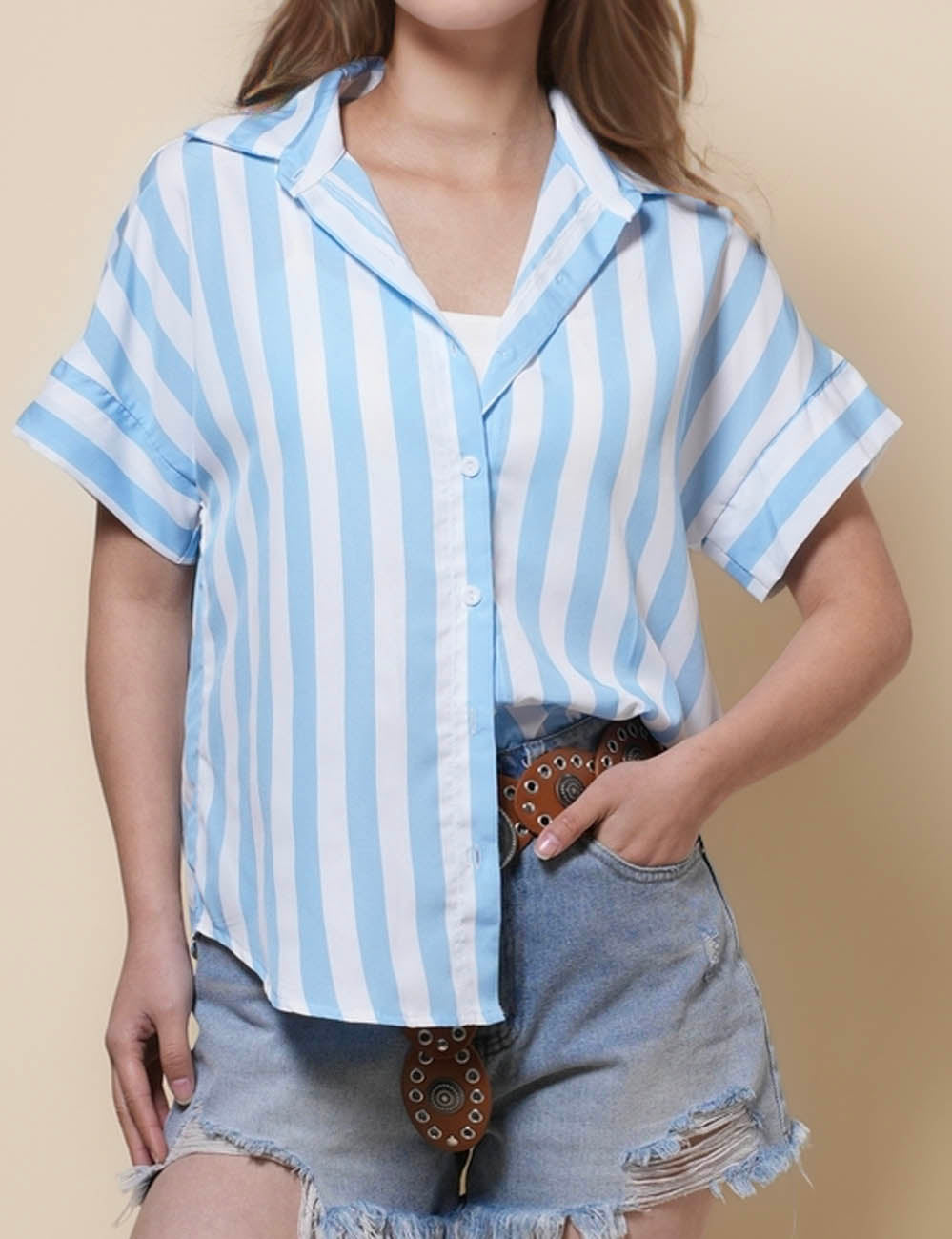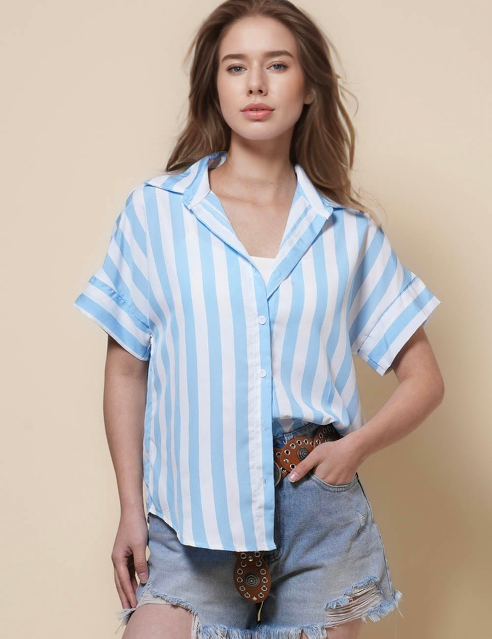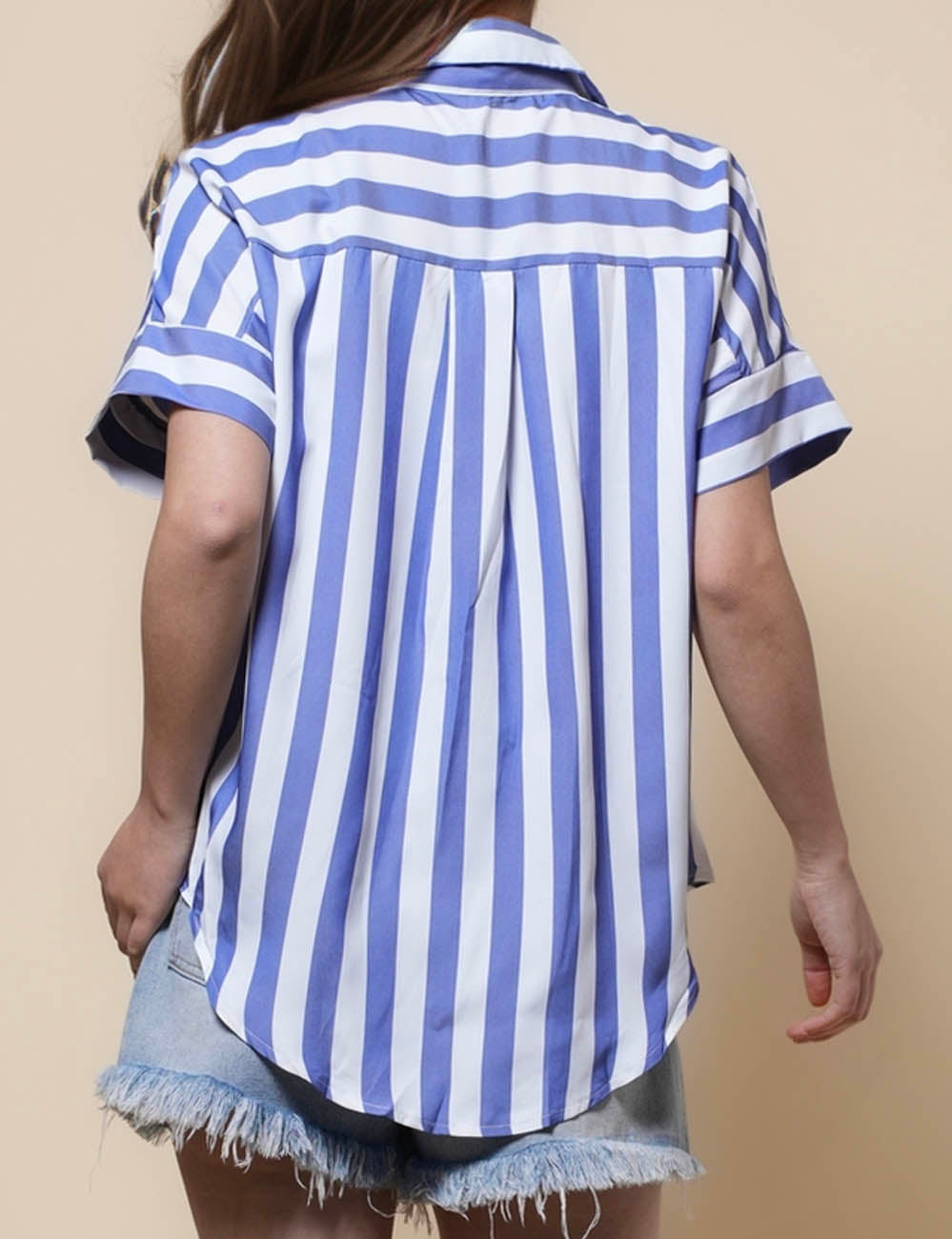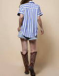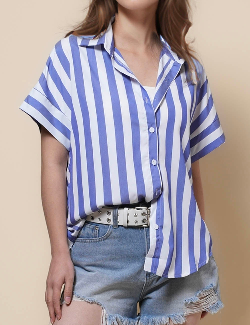 Ladies Lapel Button Down Striped Shirt SKT41286