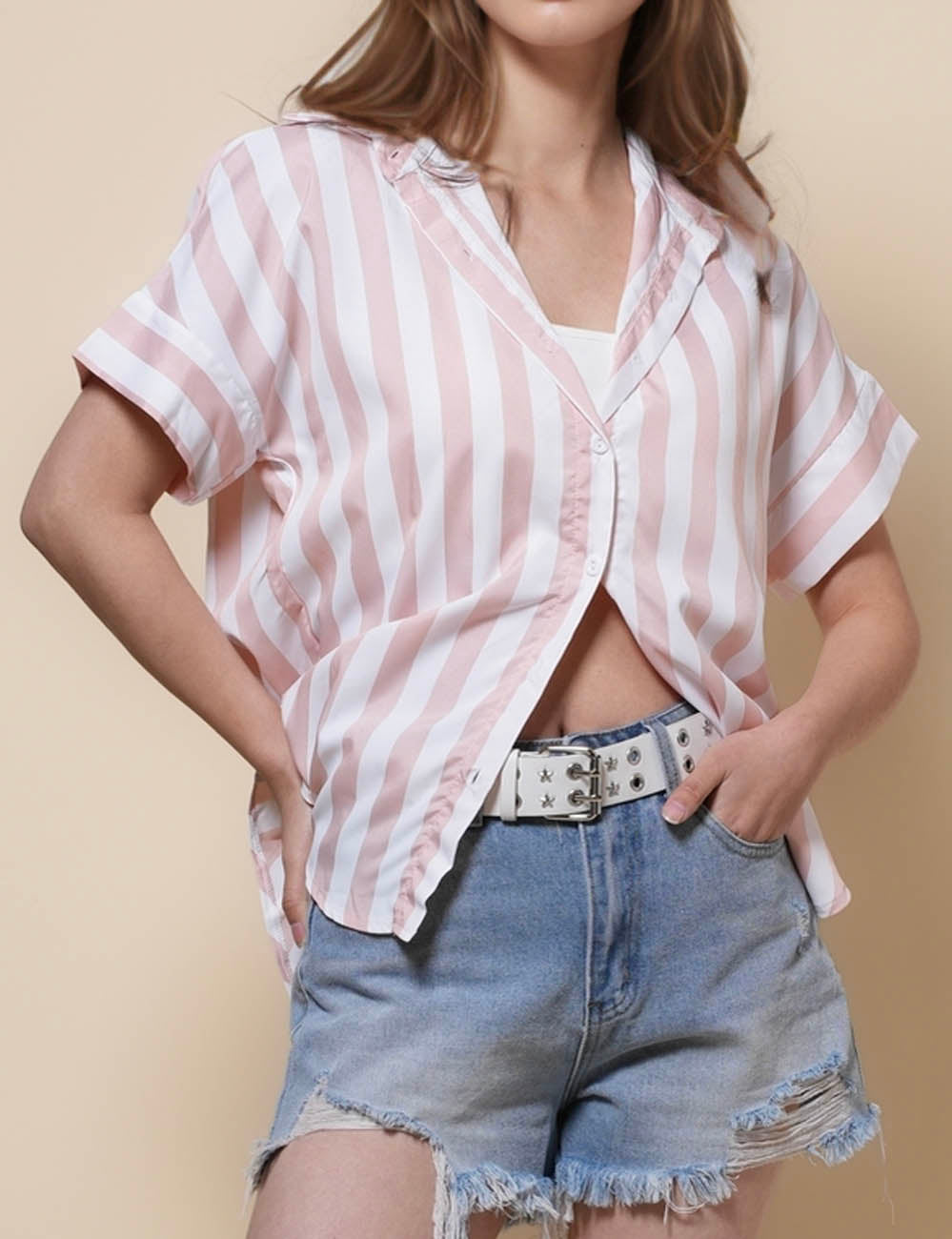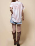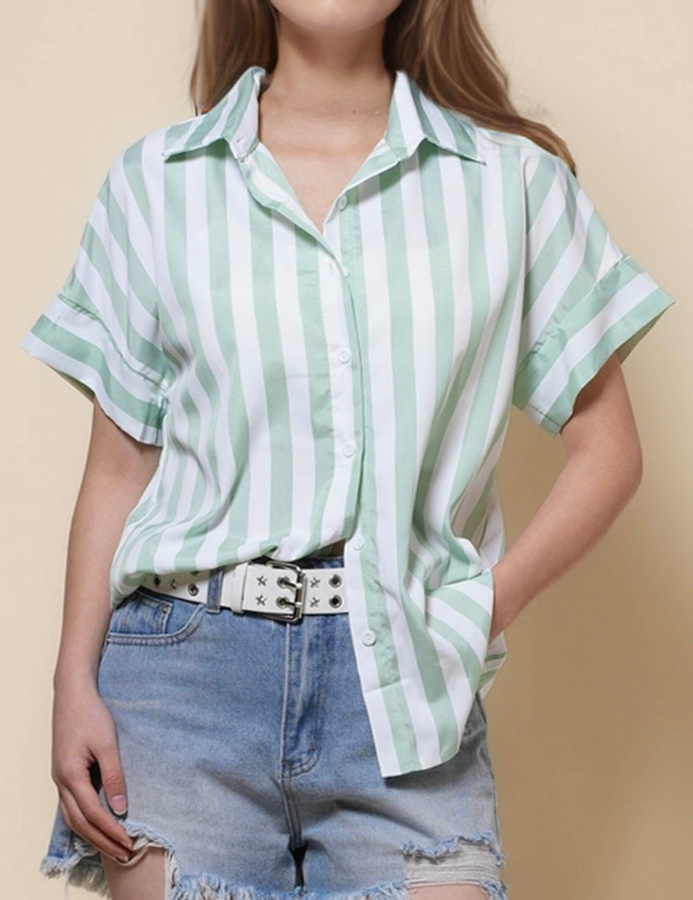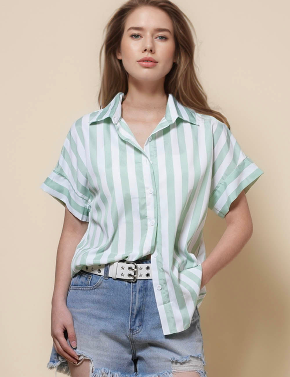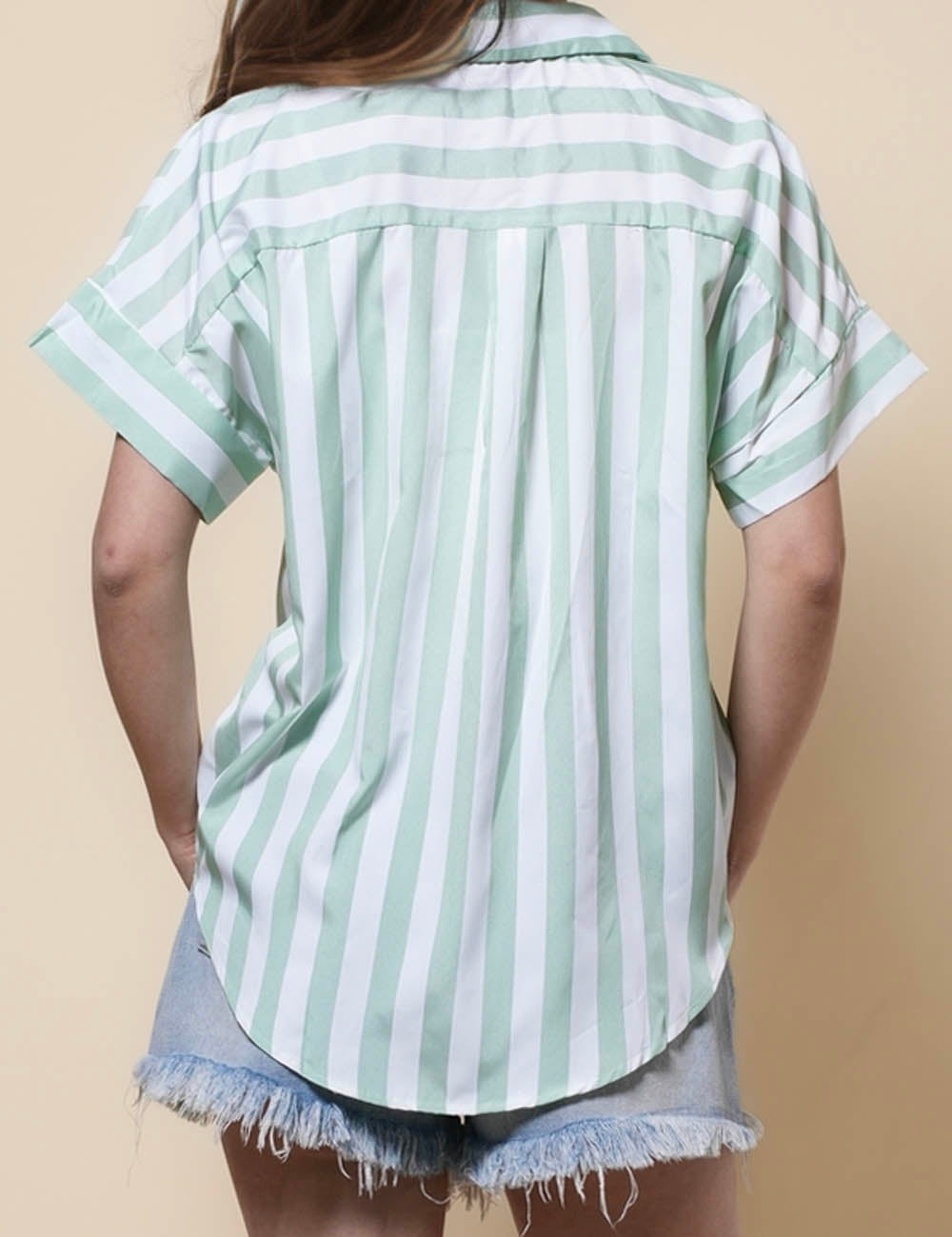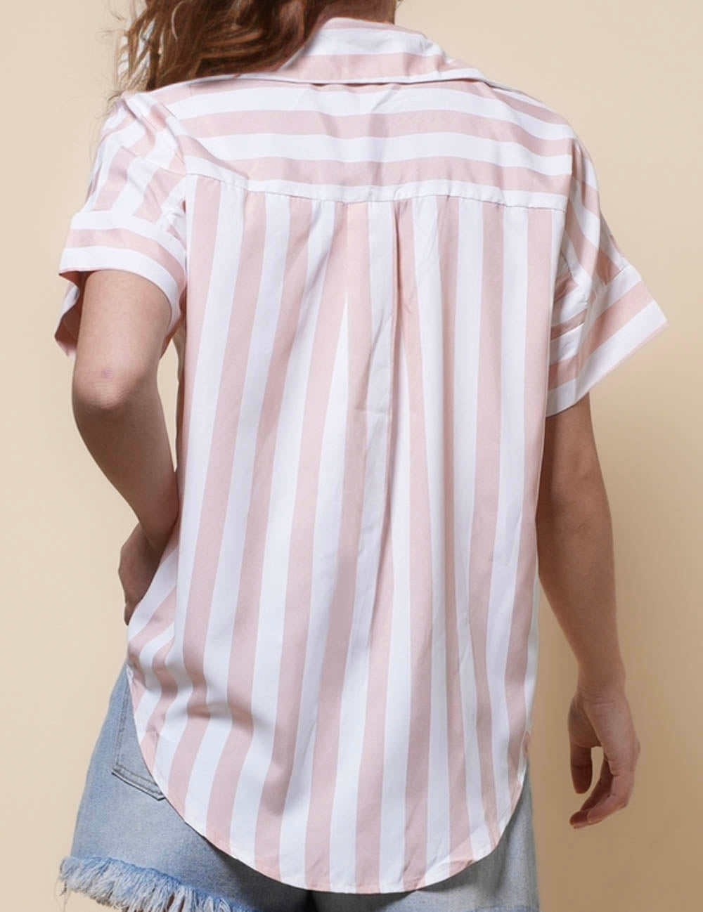 Ladies Lapel Button Down Striped Shirt SKT41286