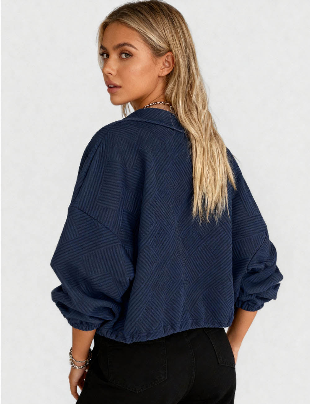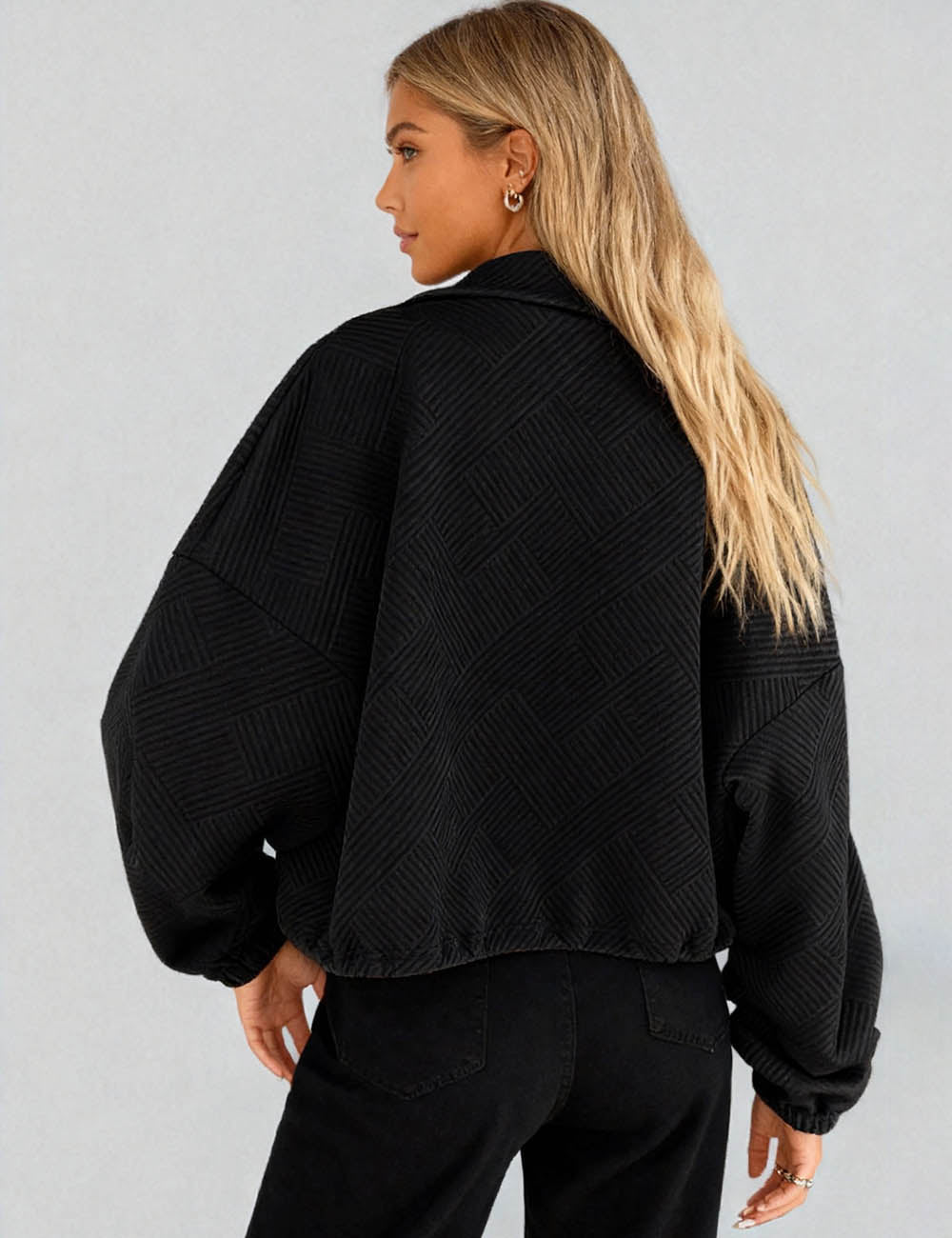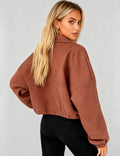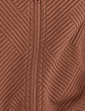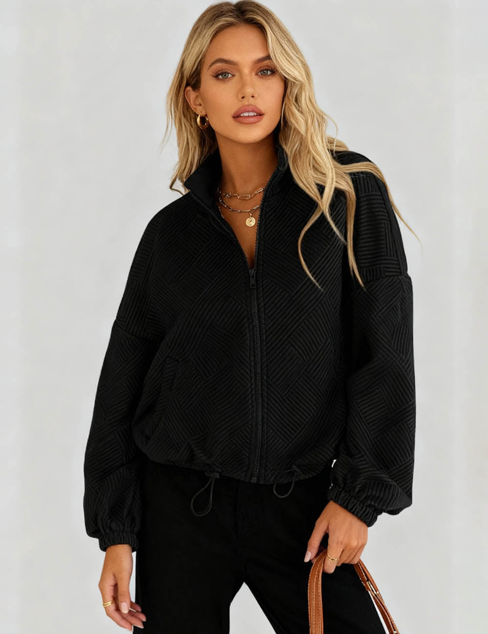 Ladies Lapel Collar Zipper Front Drawstring Hem Jacket