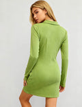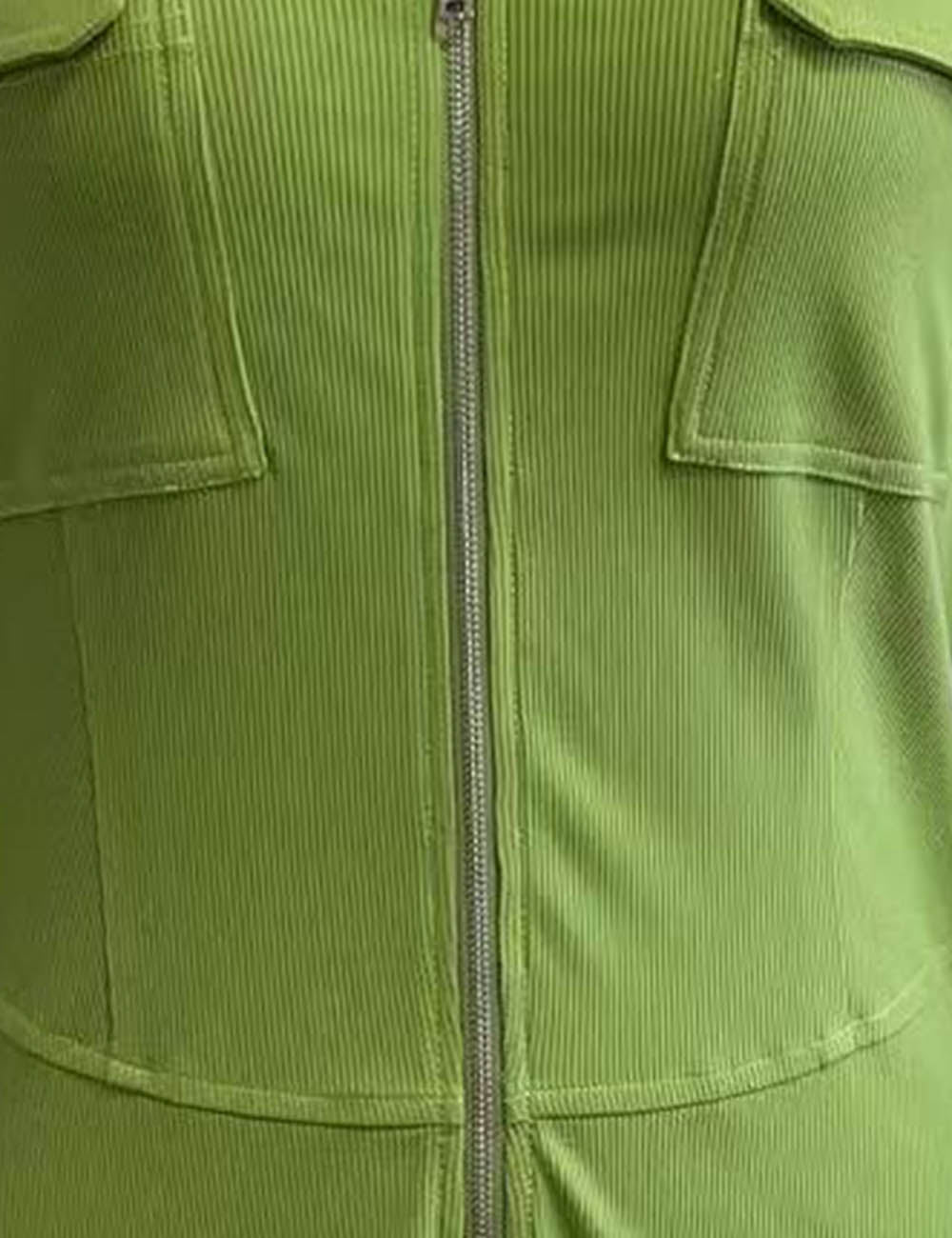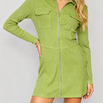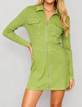 Ladies Lapel Collar Zipper Front Flap Pocket Mini Dress