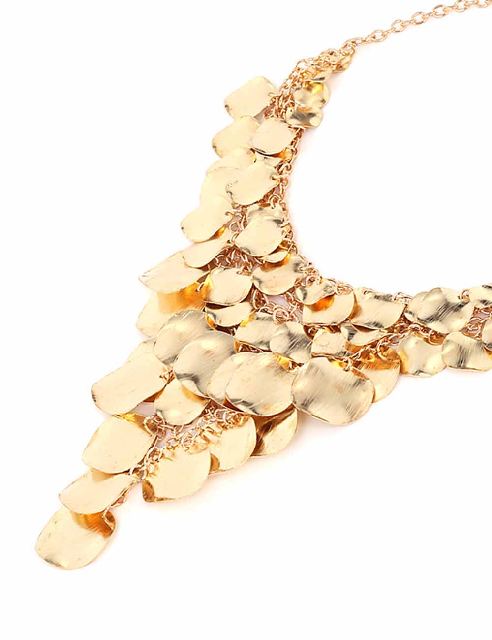 Ladies Layered Disc Pendants Golden Statement Necklace