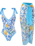 Ladies Lemon Print Swimwear with Salong SKSW40086