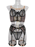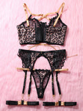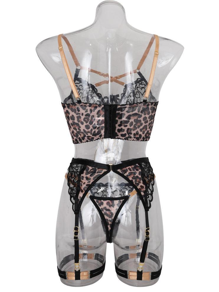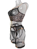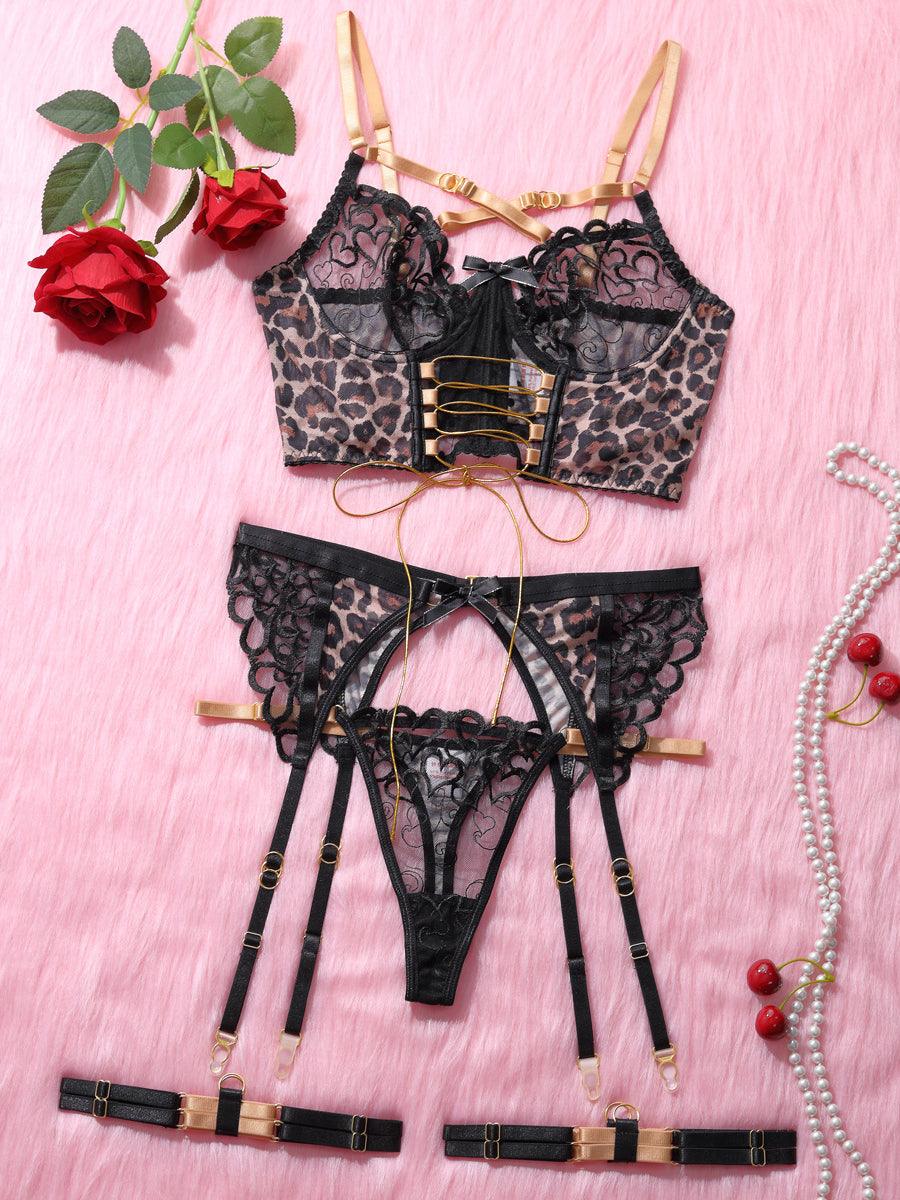 Ladies Leopard and Heart Lace Corset 3PCS Lingerie Set SKLG4025