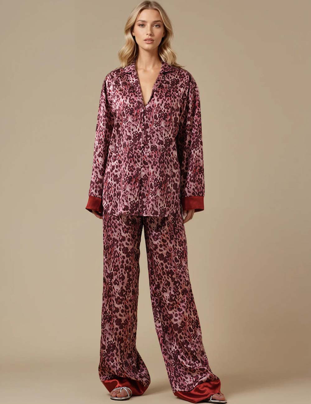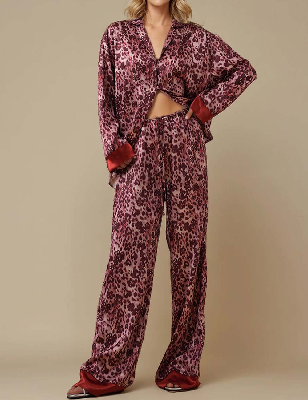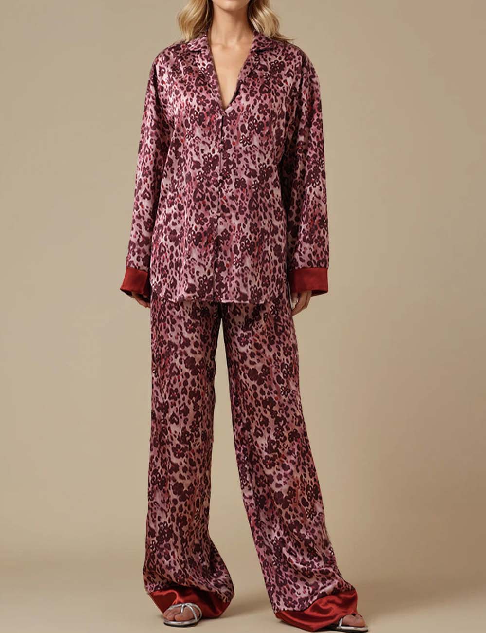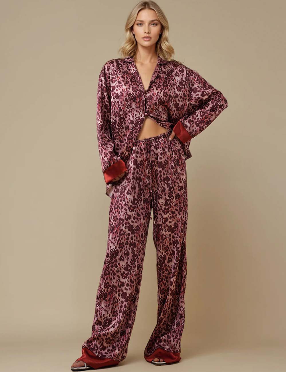 Ladies Leopard Button Closure Top & Pants Lounge Set SKST5KC1803