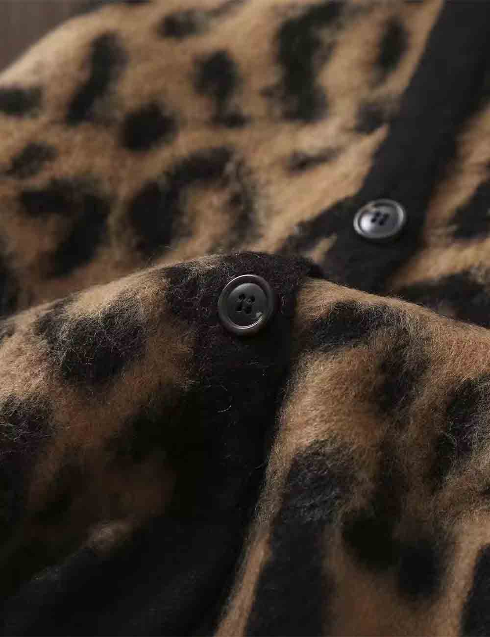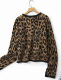 Ladies Leopard Pattern Round Neck Button Knit Cardigan