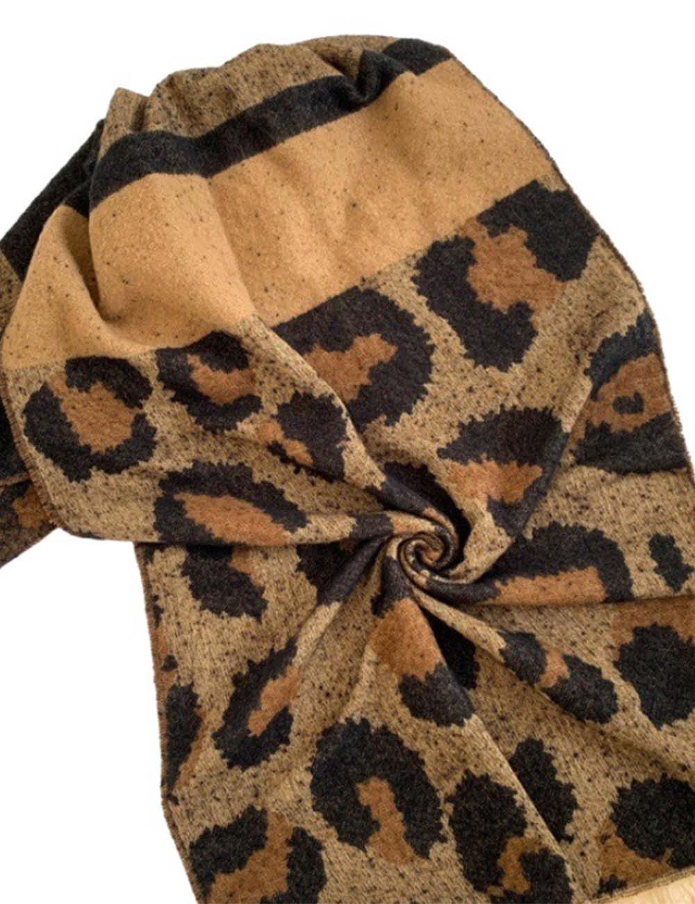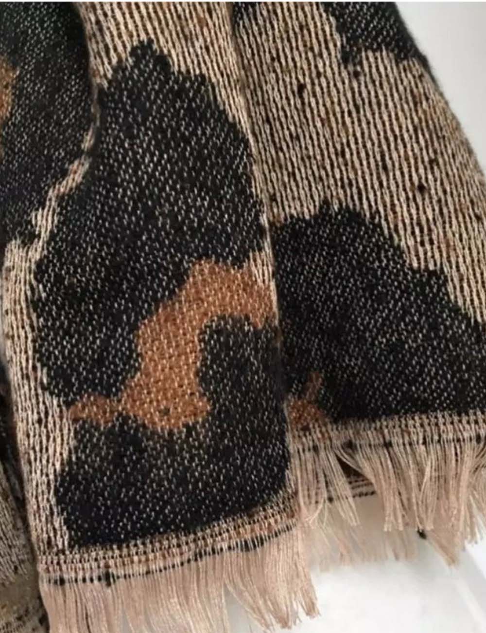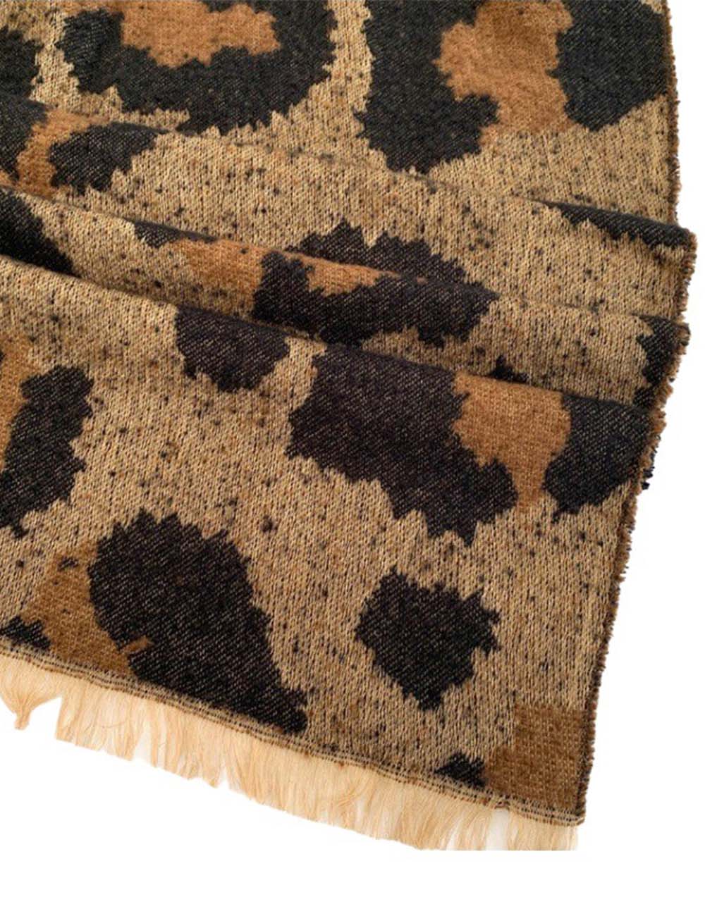 Ladies Leopard Pattern Tassel Hem Knit Scarf