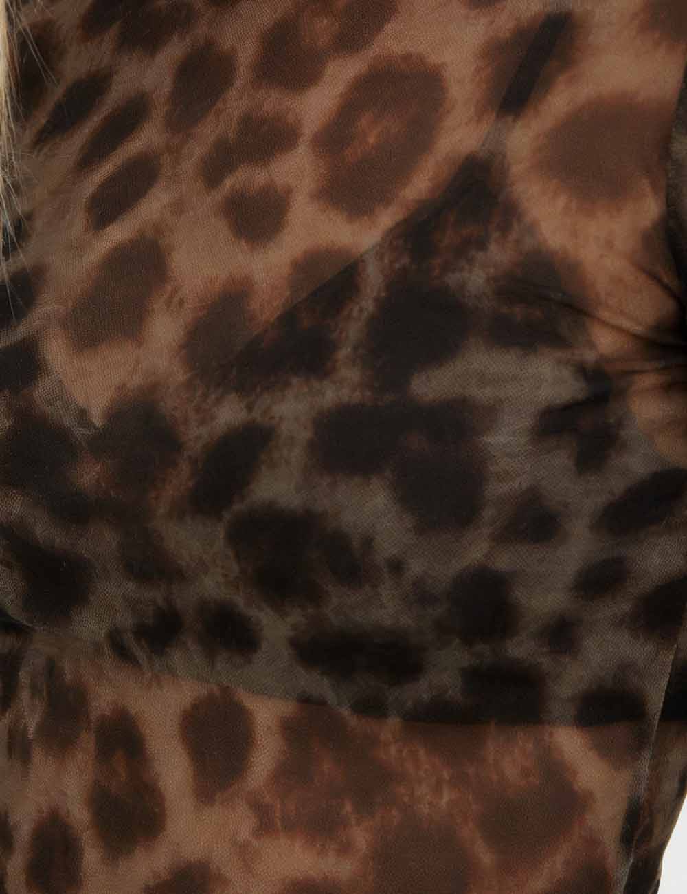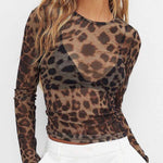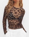 Ladies Leopard Print Long Sleeves Sheer Mesh Top