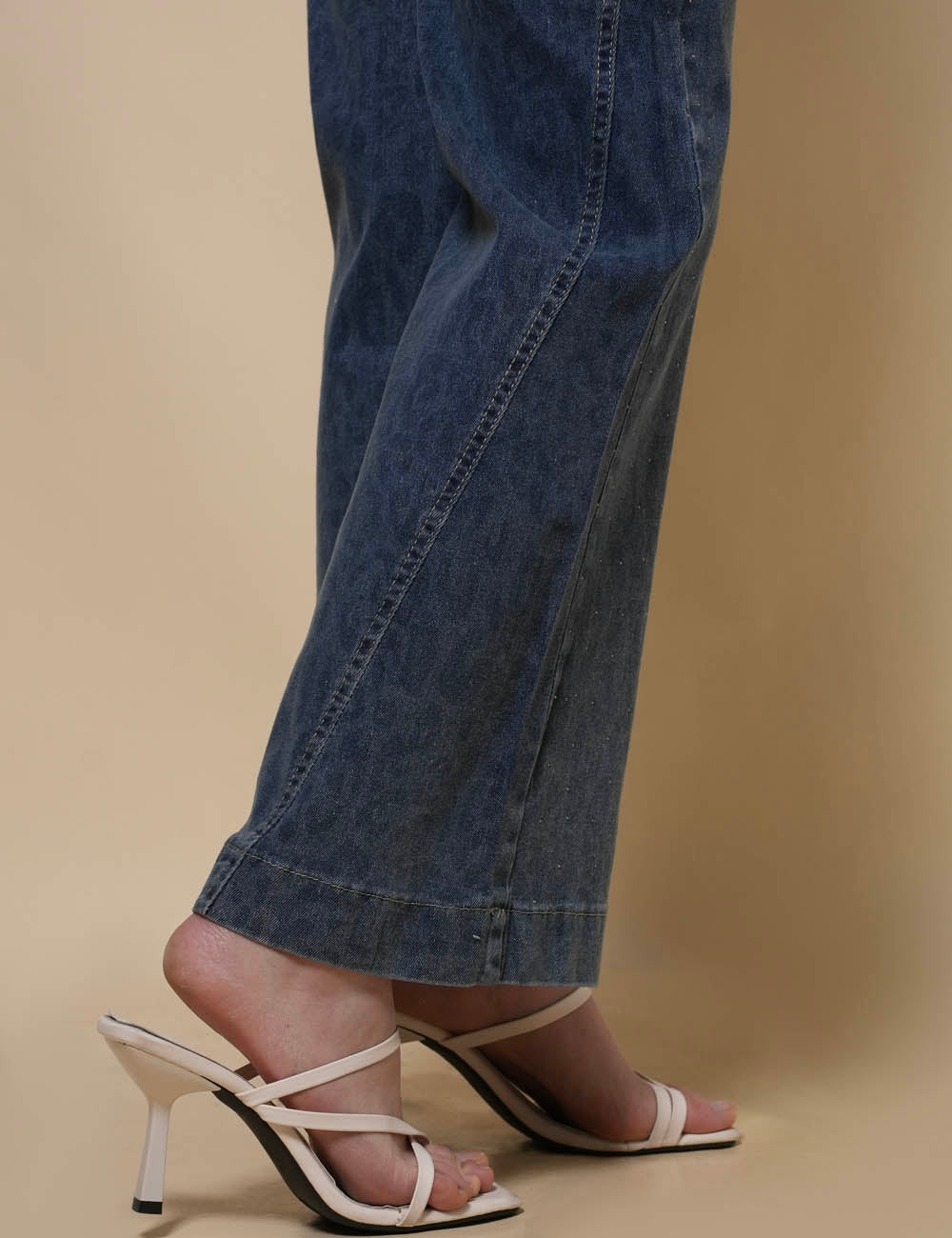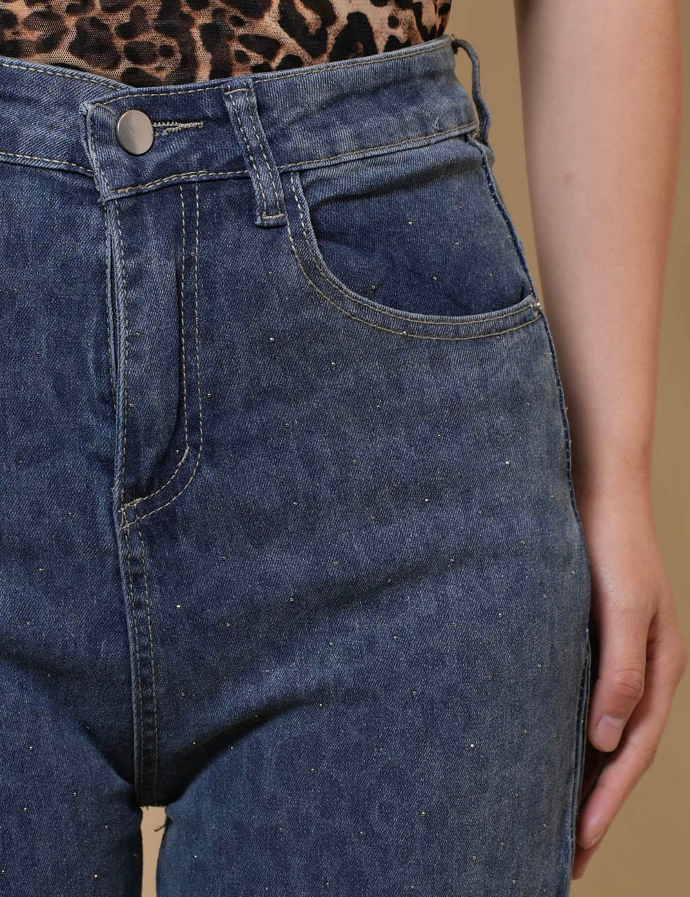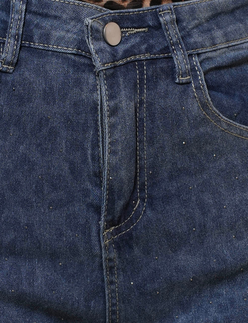 Ladies Leopard Print Pocket Wide Leg Demin Pants