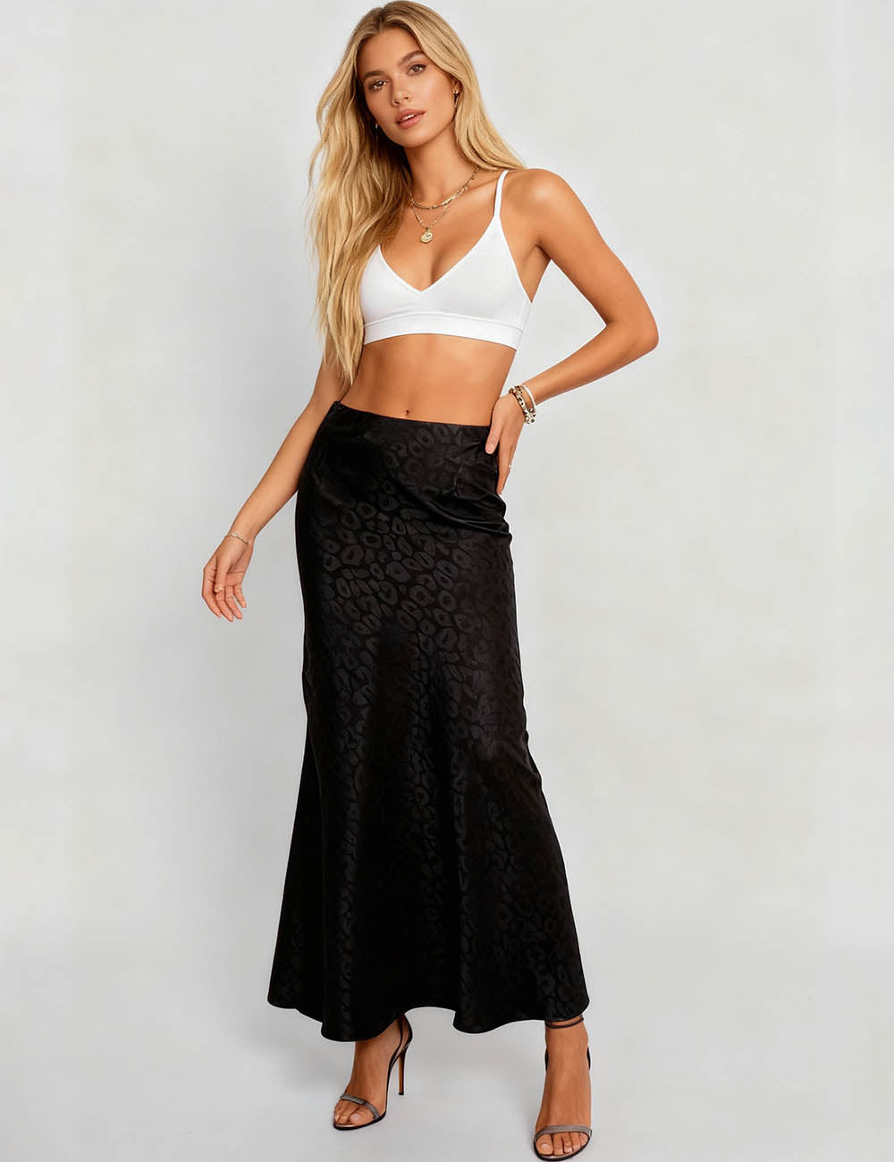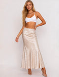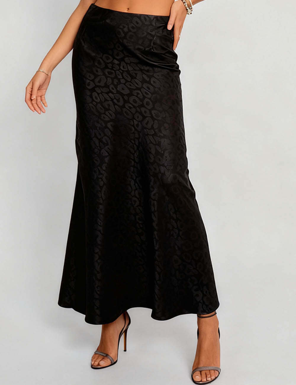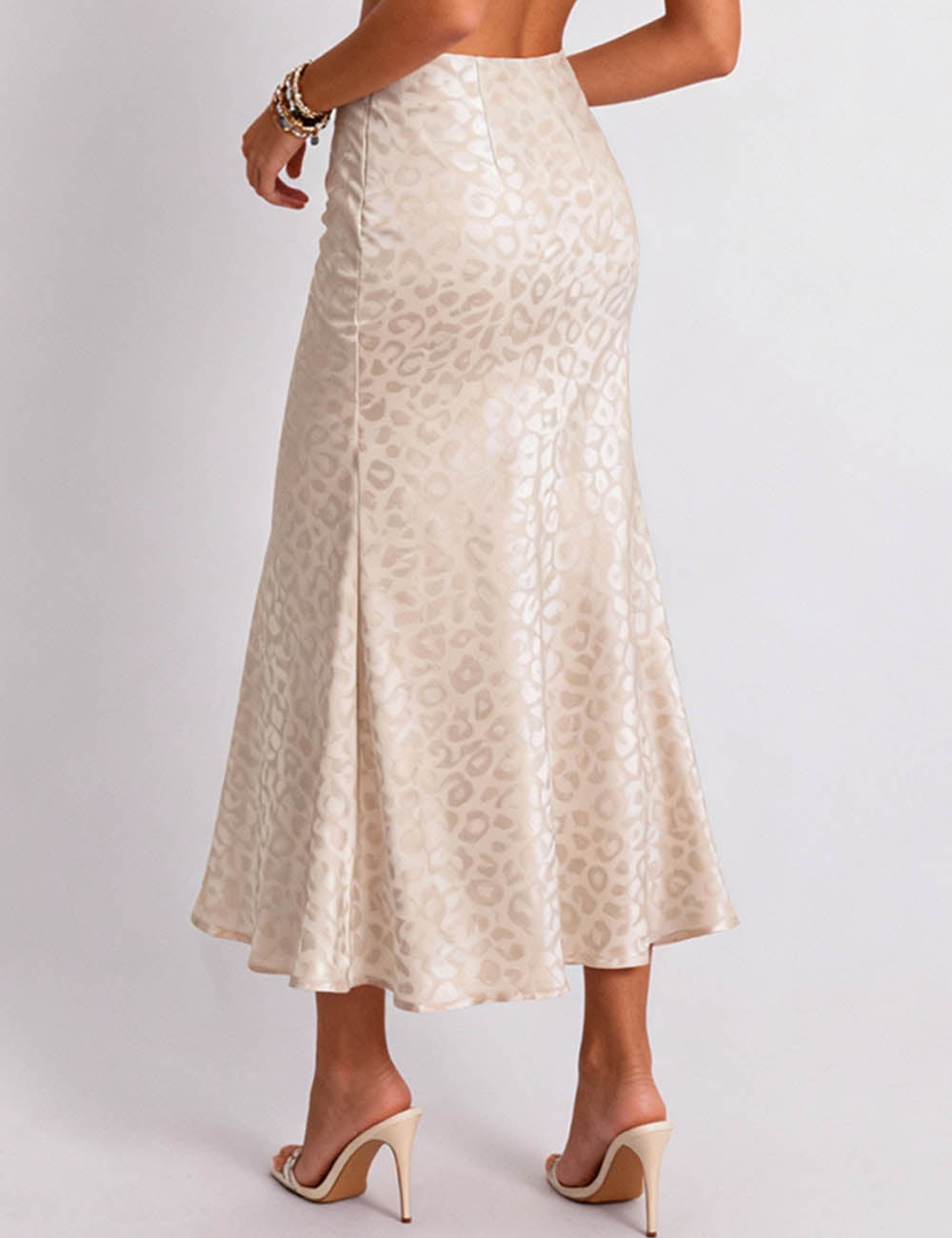 Ladies Leopard Print Satin Fish Tail Midi Skirt SKS4788