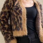 Ladies Leopard Print V-Neck Long Sleeves Knit Cardigan