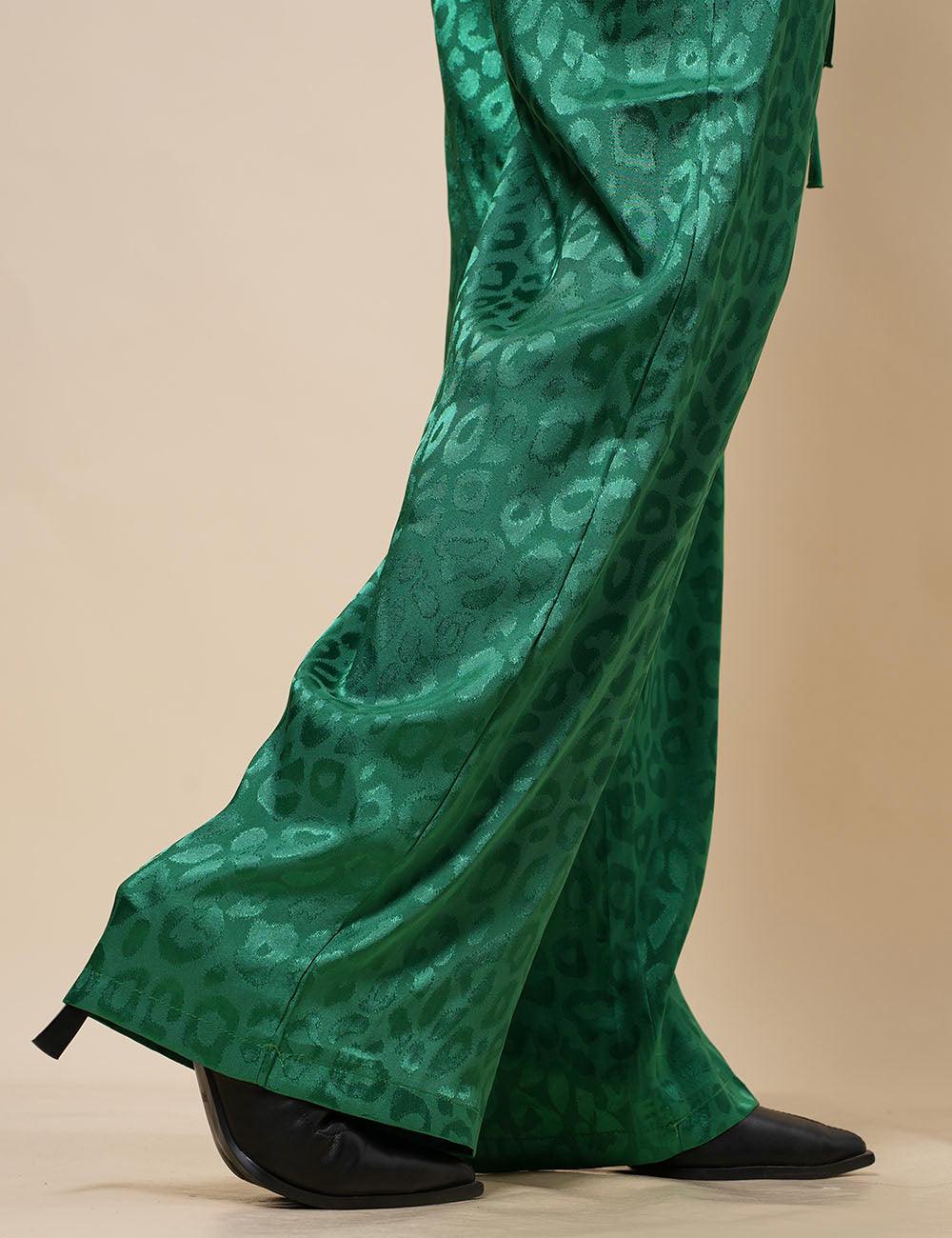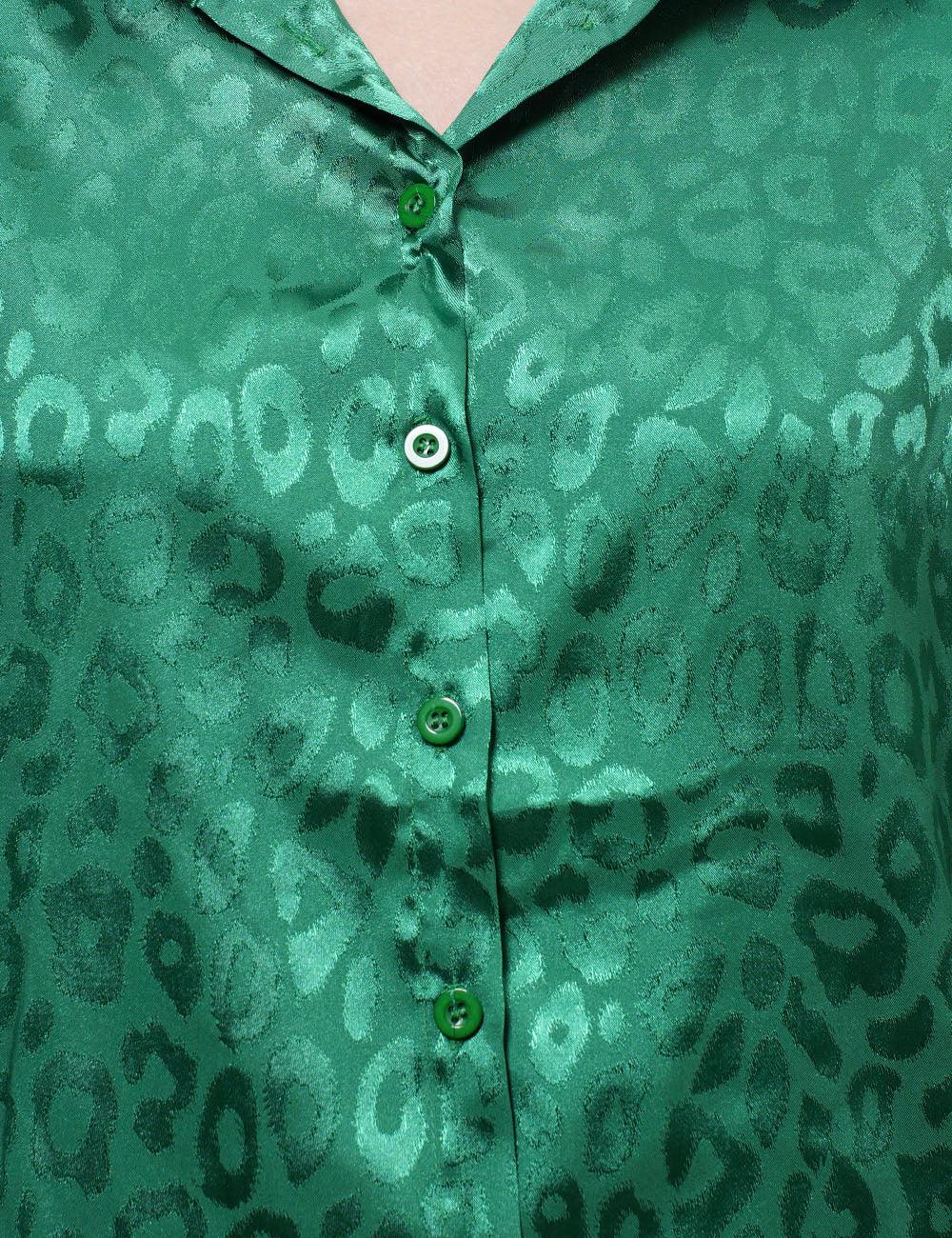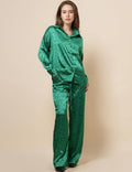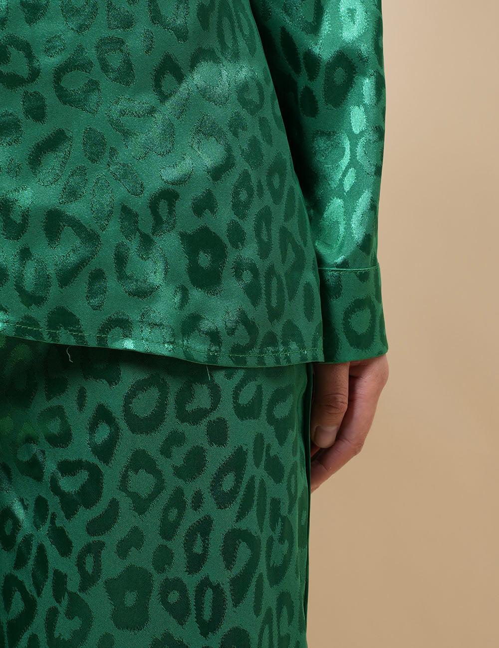 Ladies Leopard Satin Trundown Collar 2PCS Pants Set SKST4960