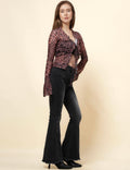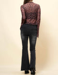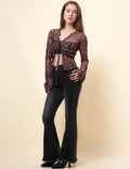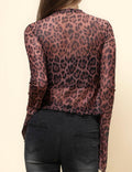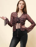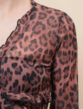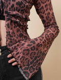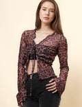 Ladies Leopard See Sheer Mesh Top String Tie Blouse SKT4989