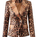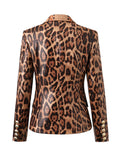 Ladies Leopard V-Neck Turndown Collar Blazer SKT50092