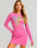 Ladies Letter Print Riund Neck Bodycon Mini Dress