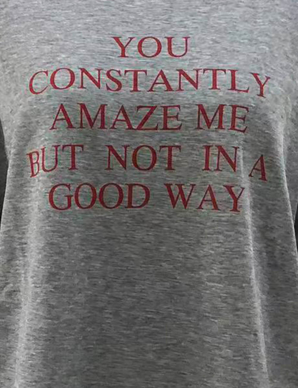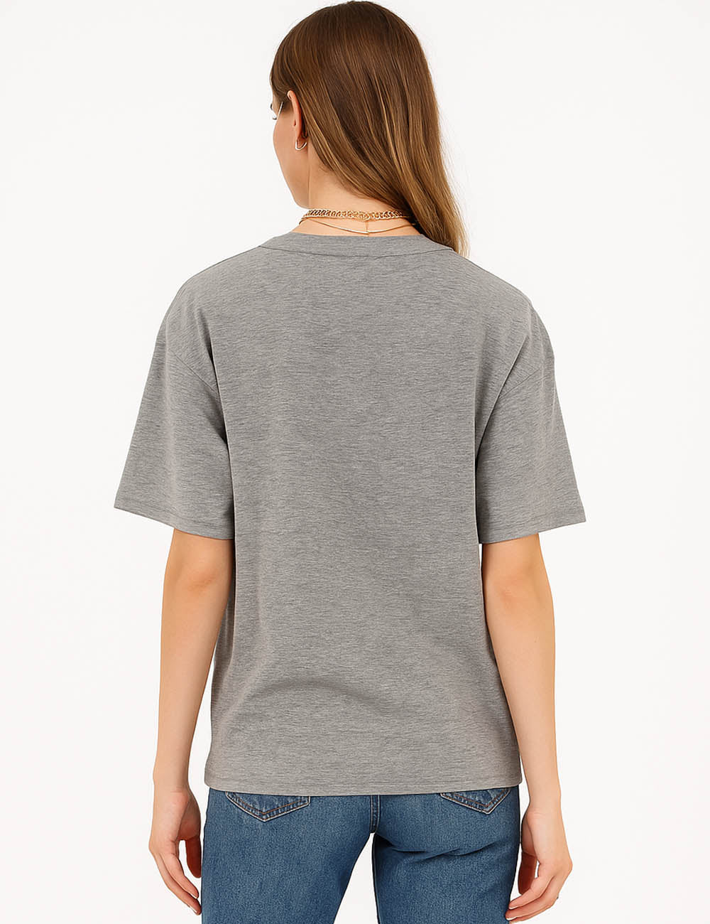 Ladies Letter Print Top Round Neck Short Sleeves T-Shirts