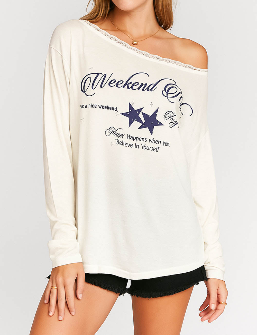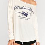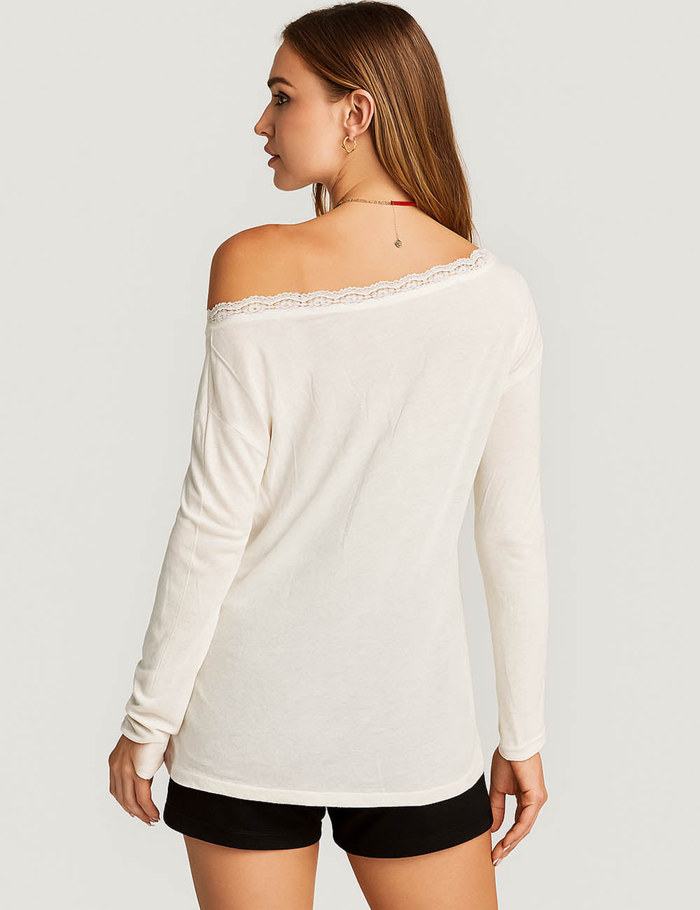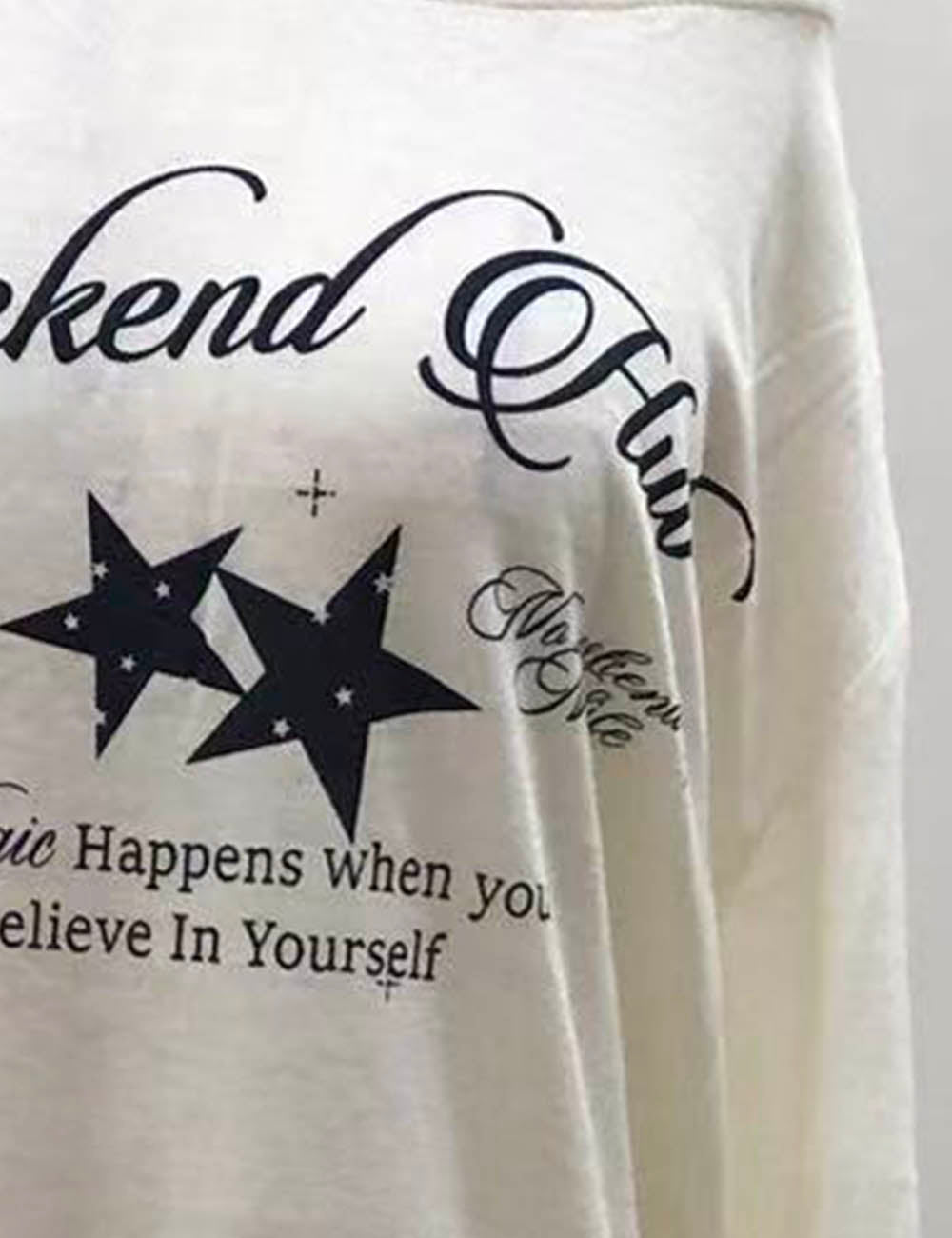 Ladies Letter Star Print Tee Off-Shoulder Long Sleeves Top