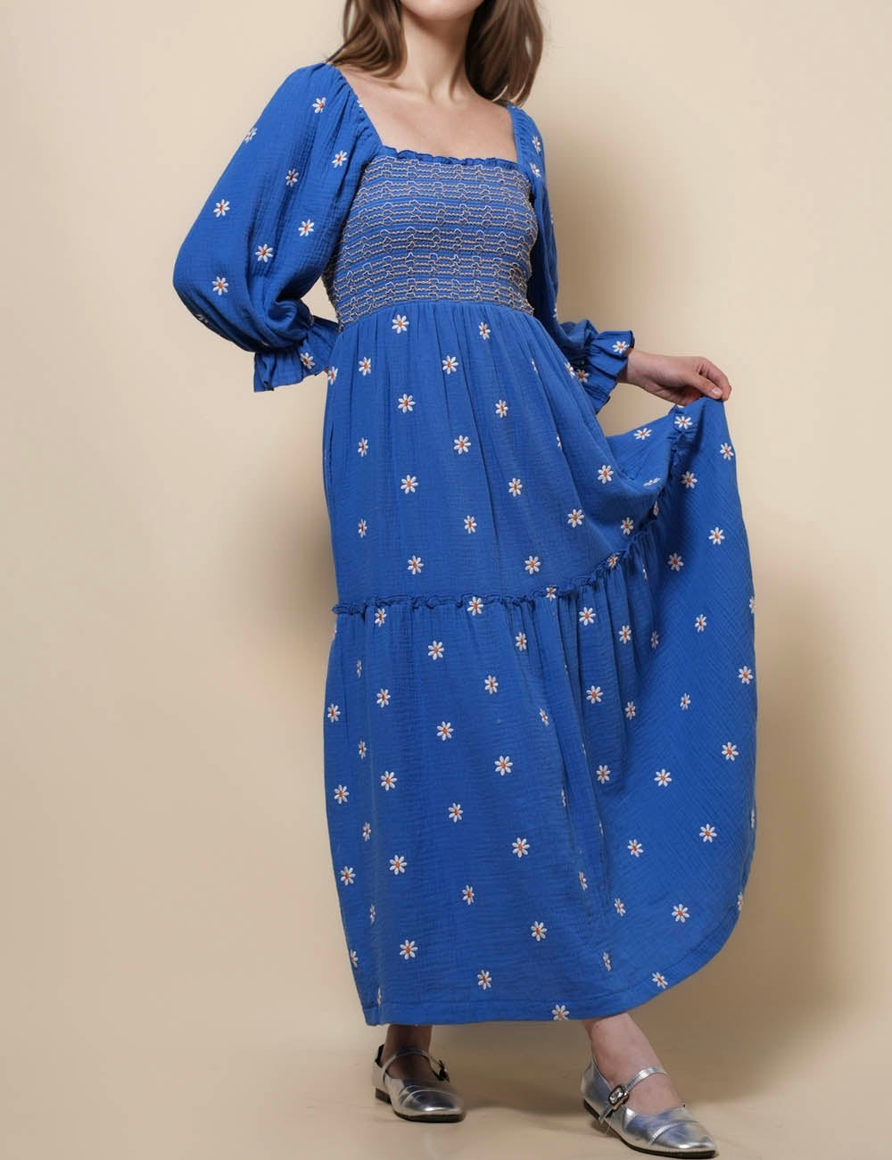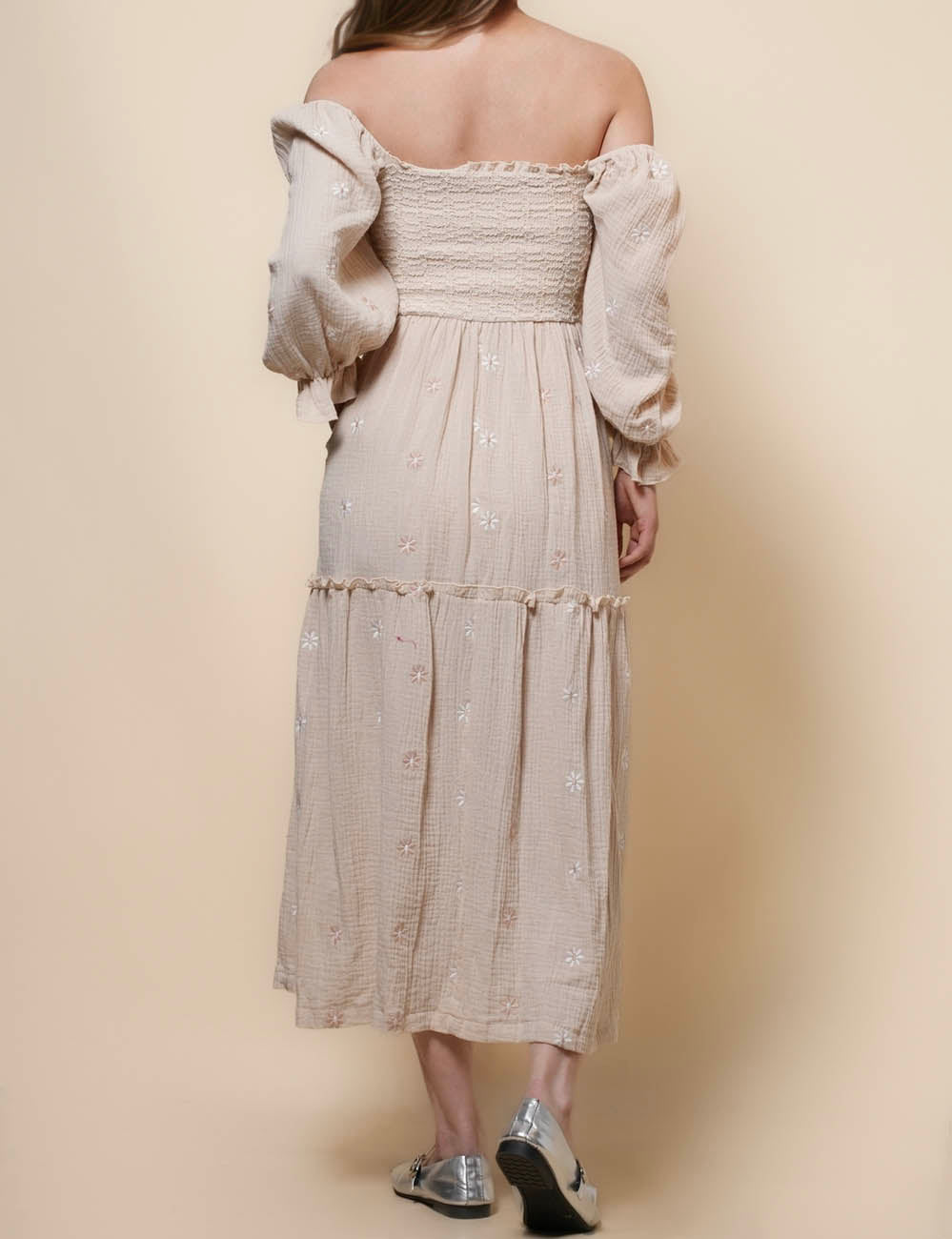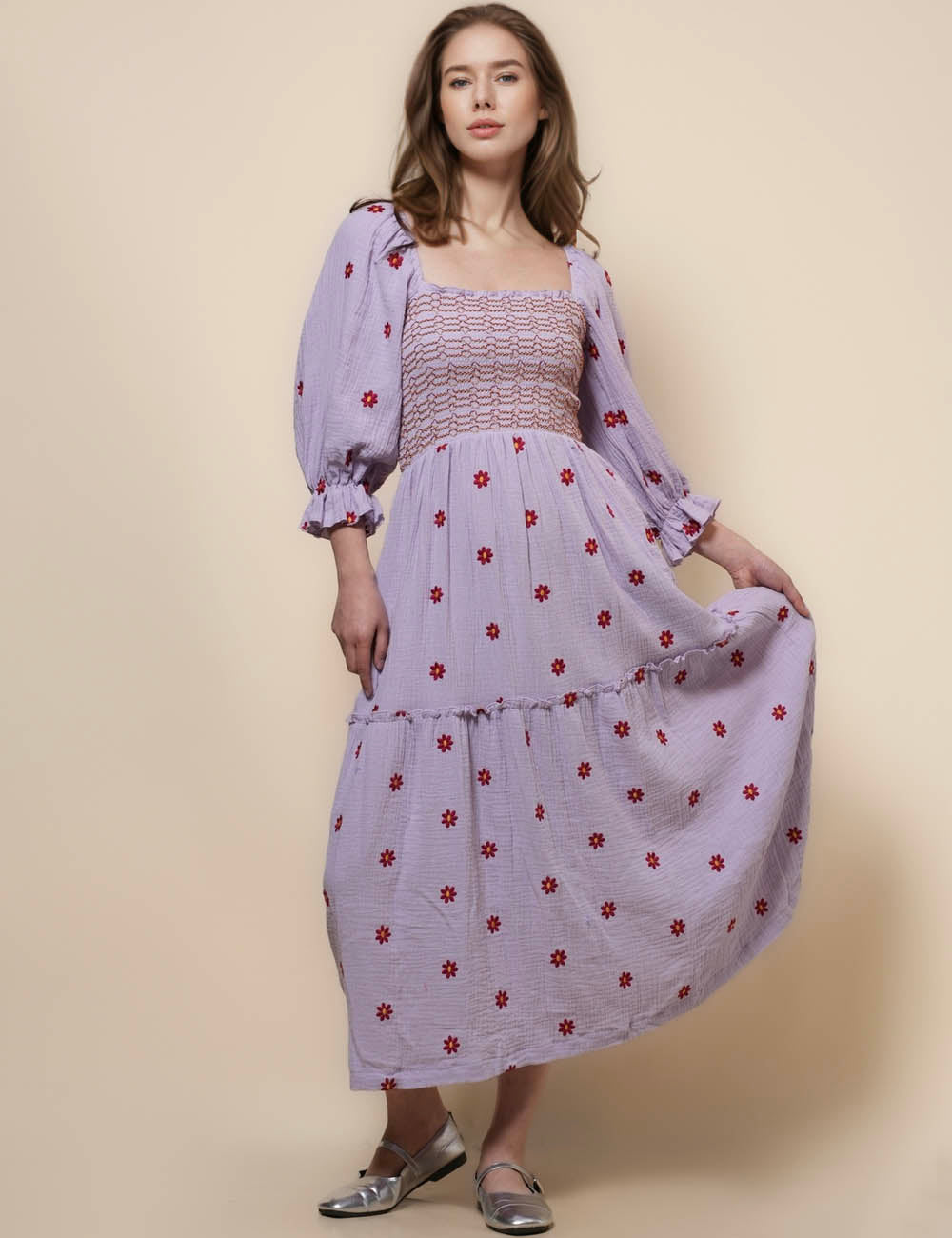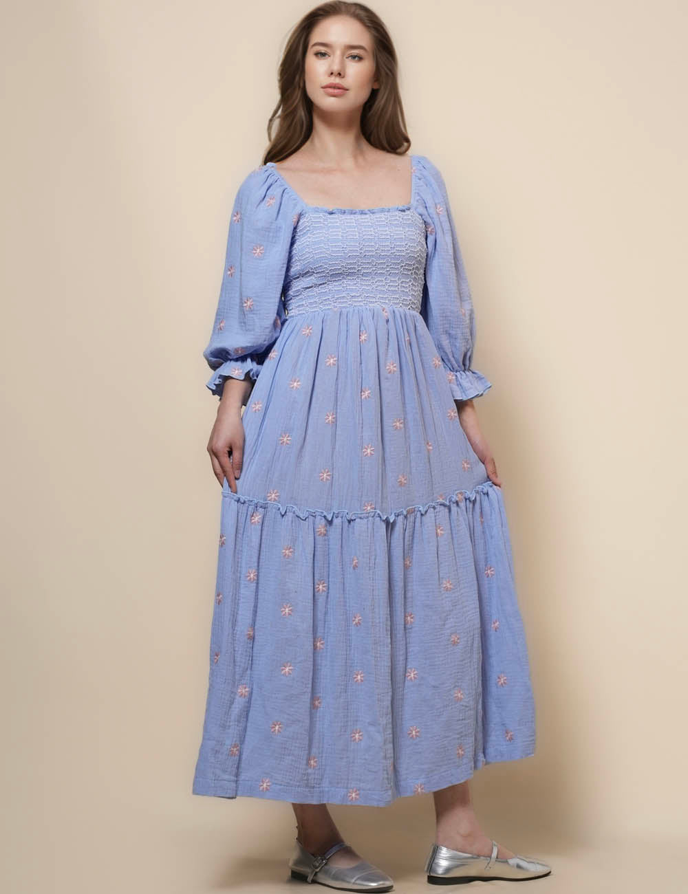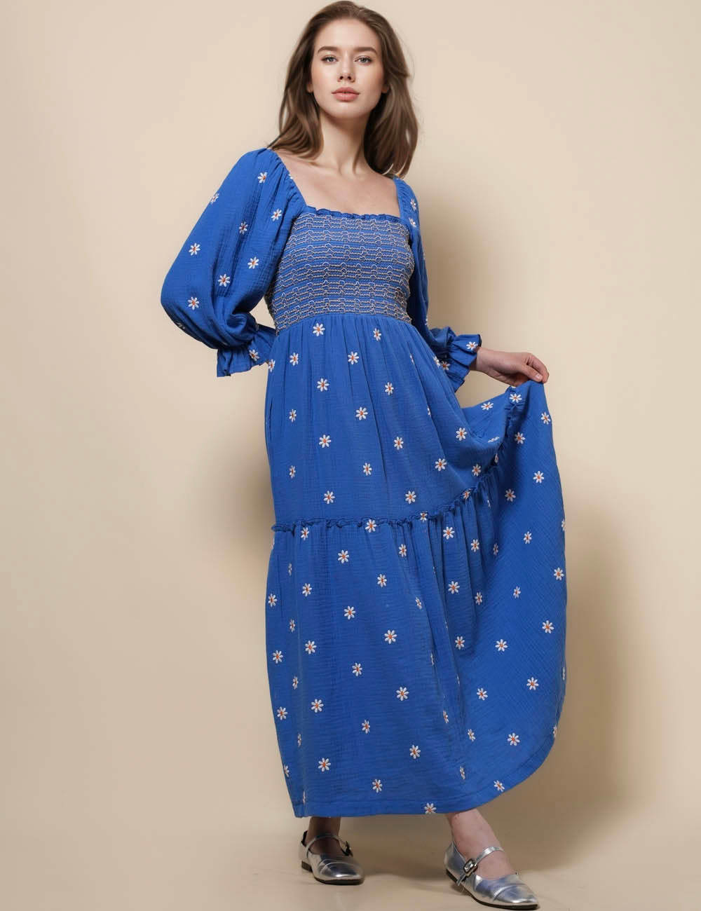 Ladies Long Sleeves Daisty Embroidery Midi Dress SKD50199