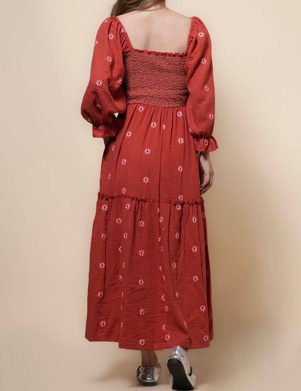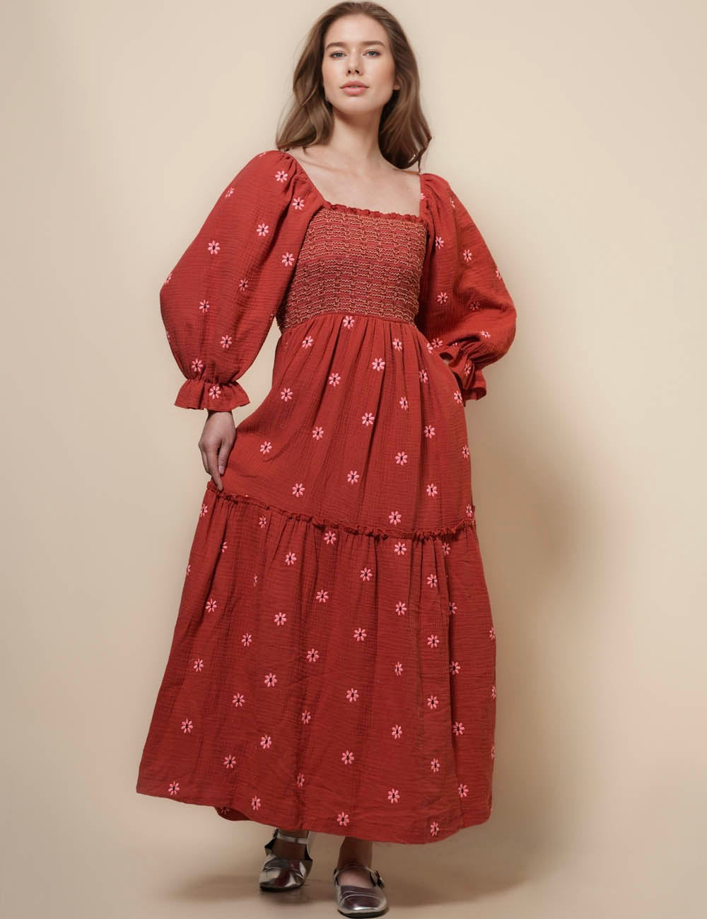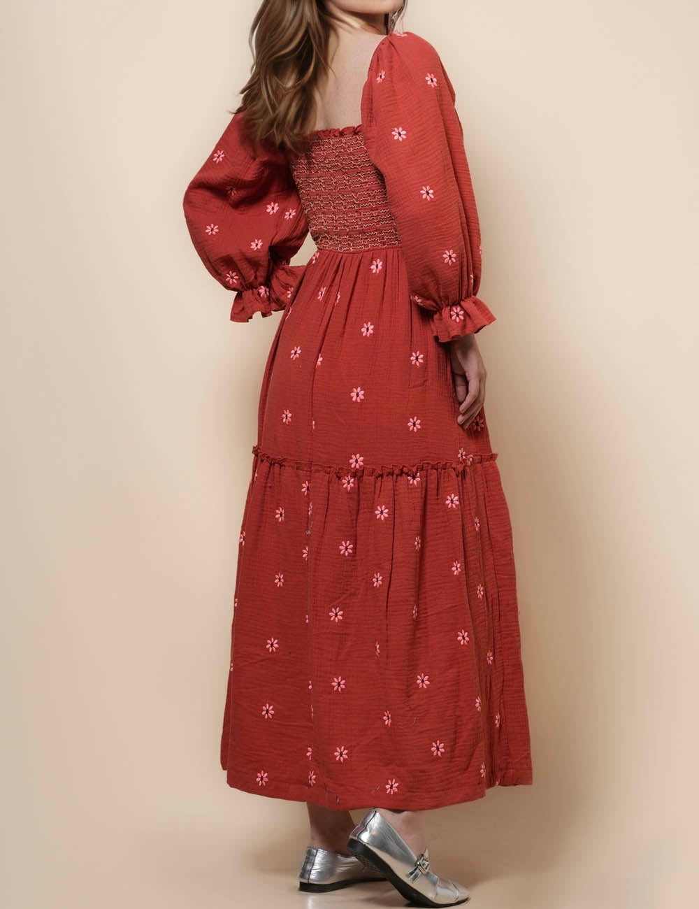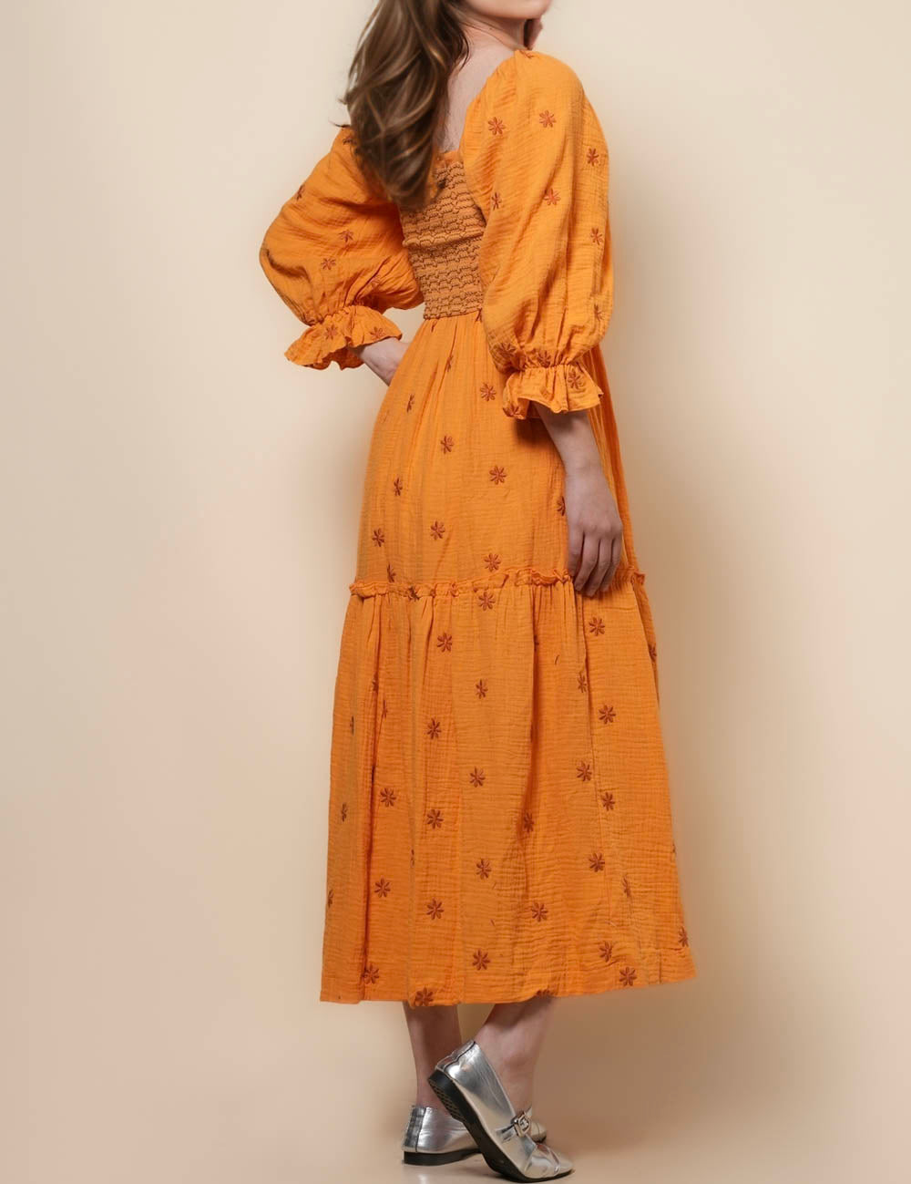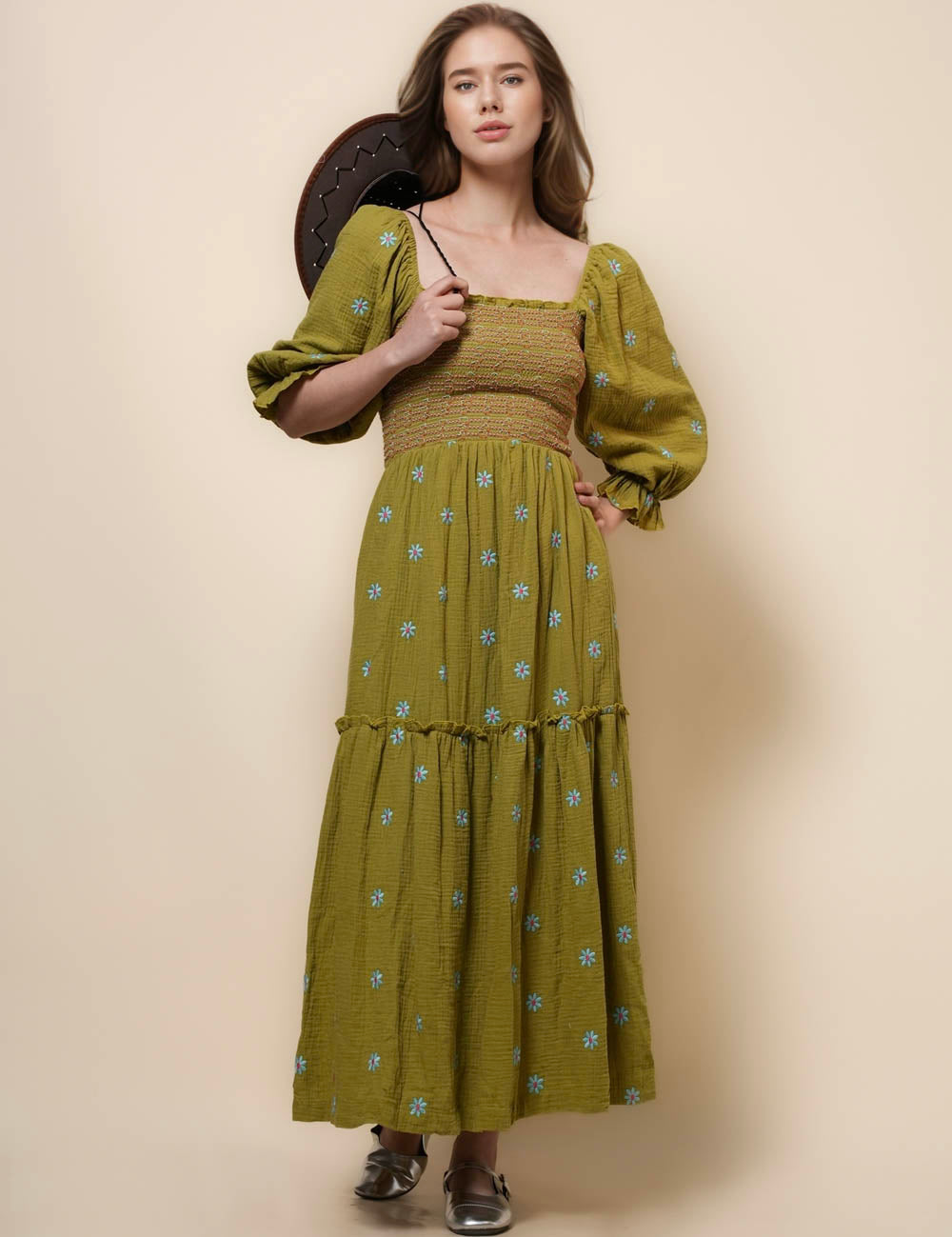 Ladies Long Sleeves Daisty Embroidery Midi Dress SKD50199