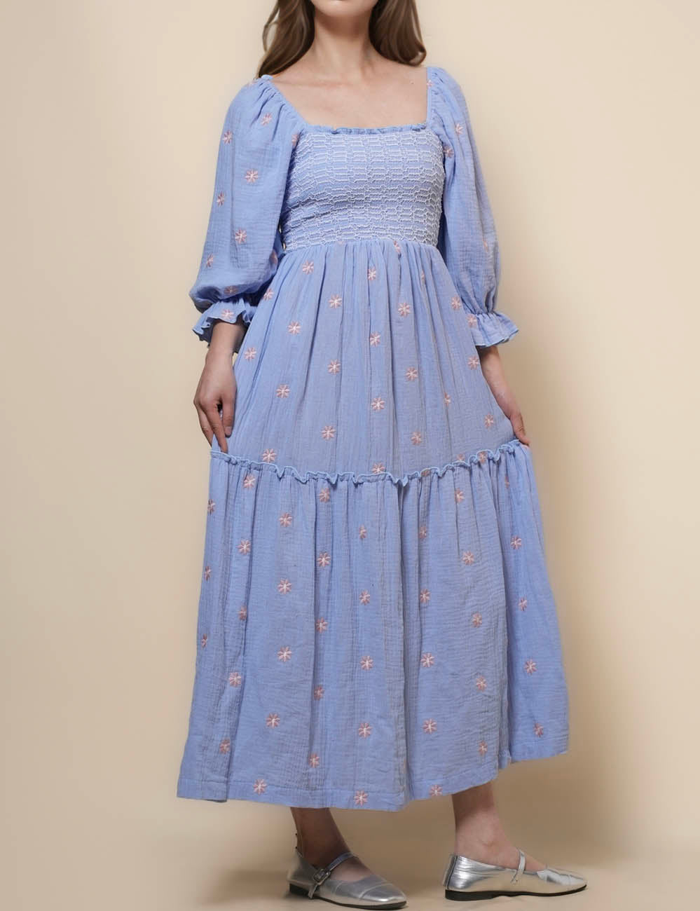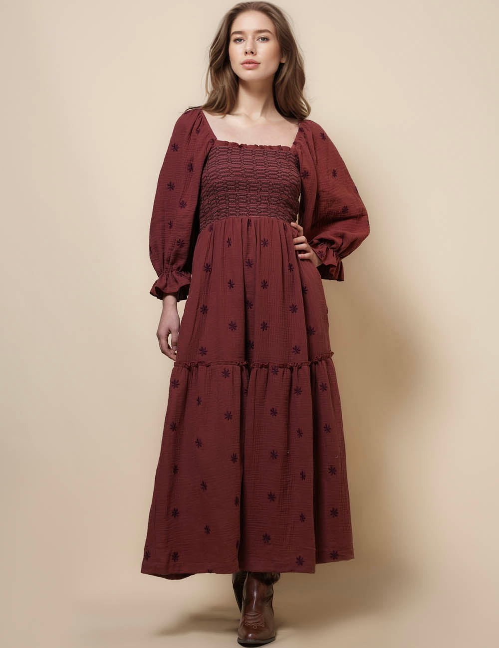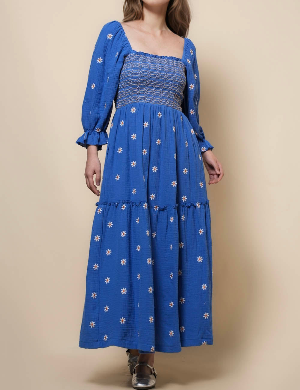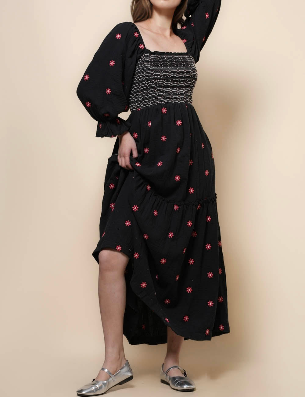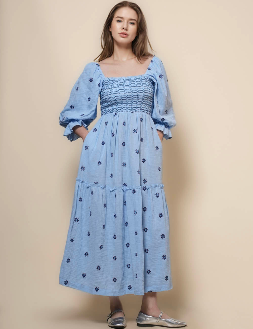 Ladies Long Sleeves Daisty Embroidery Midi Dress SKD50199