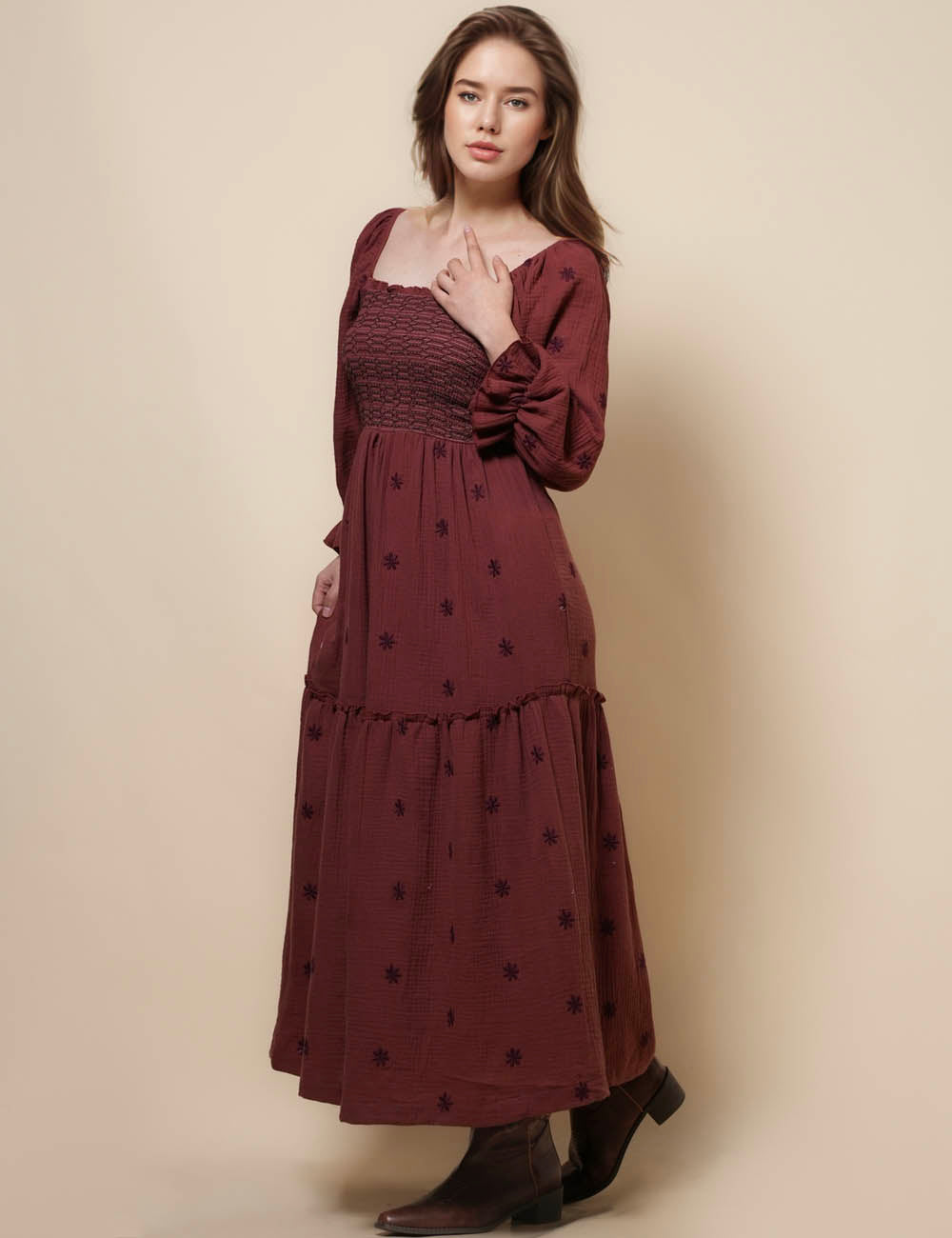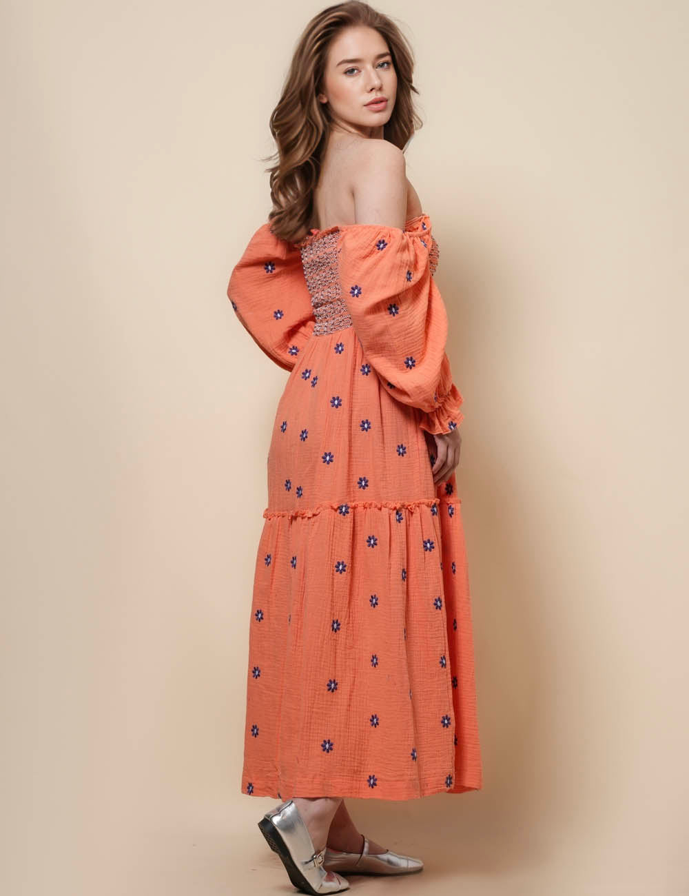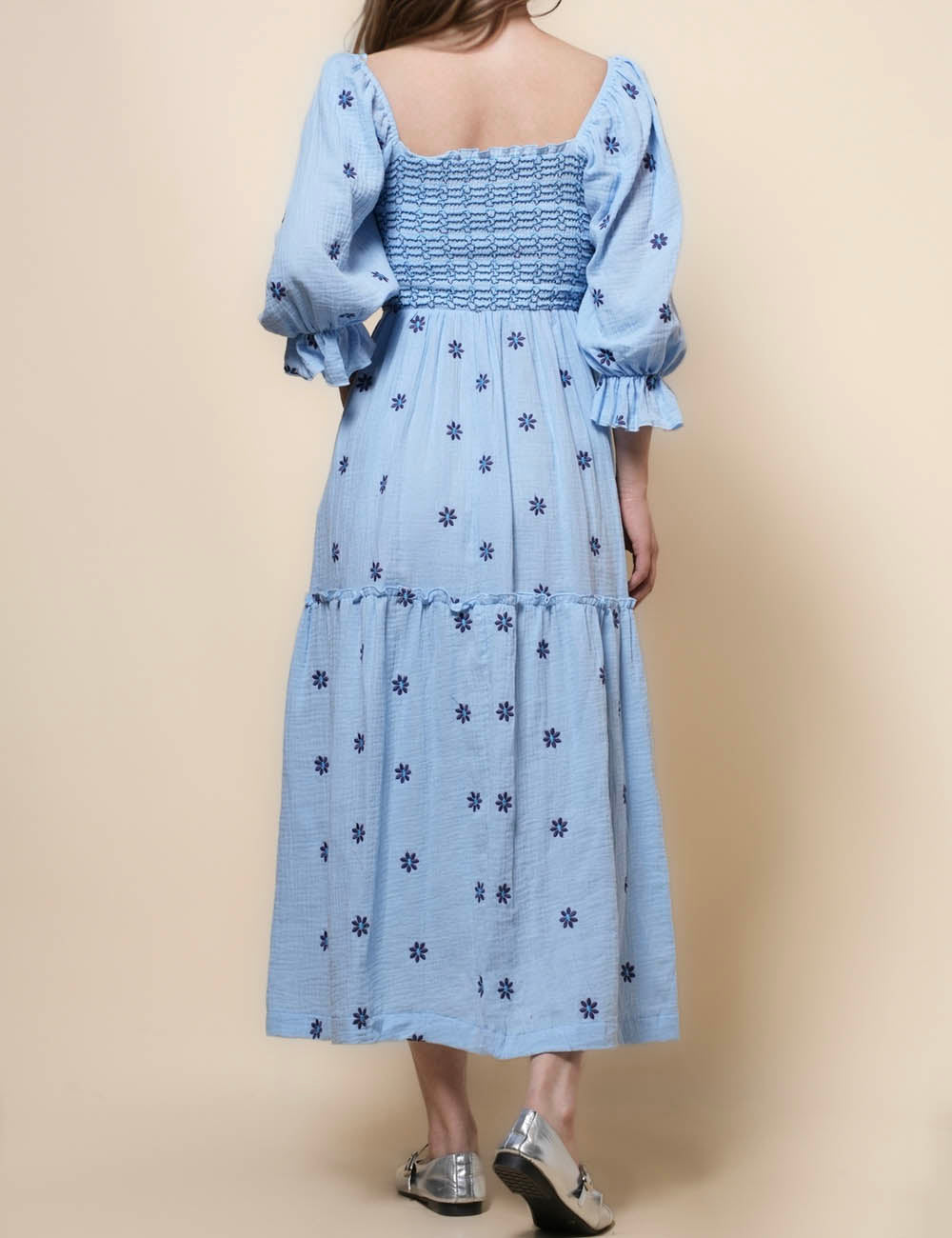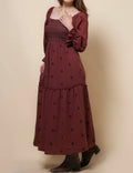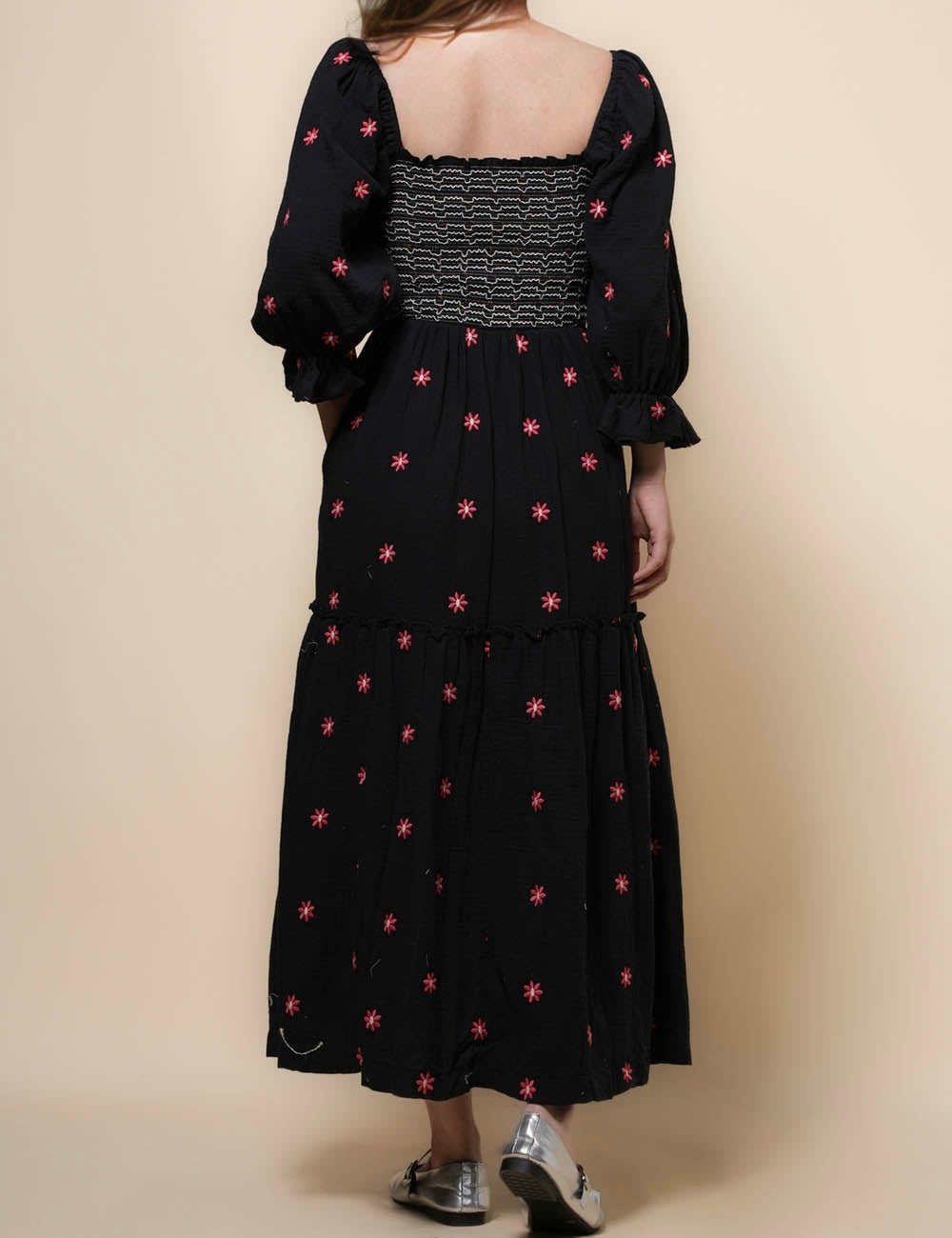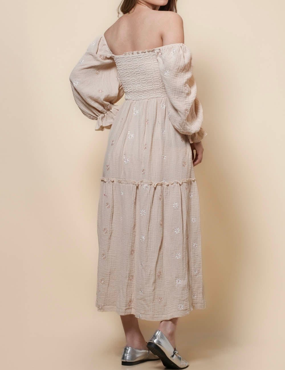 Ladies Long Sleeves Daisty Embroidery Midi Dress SKD50199
