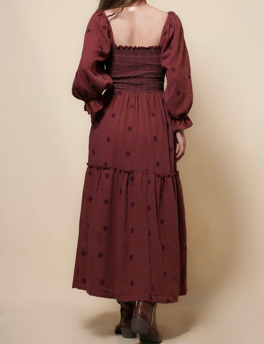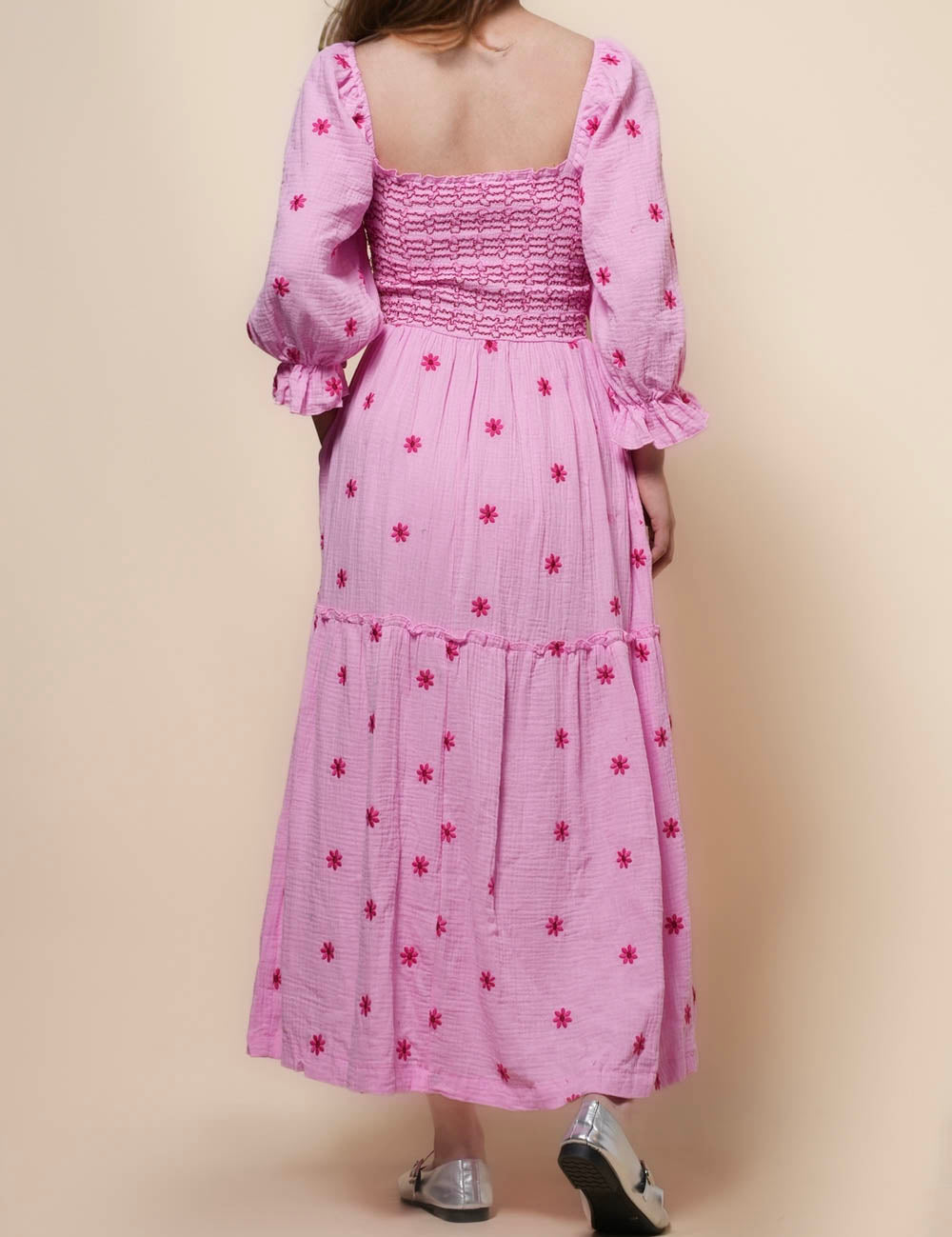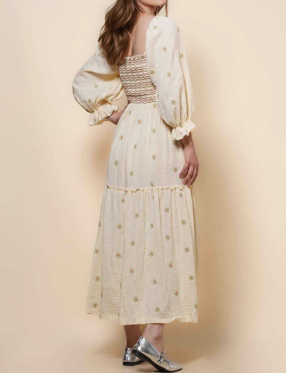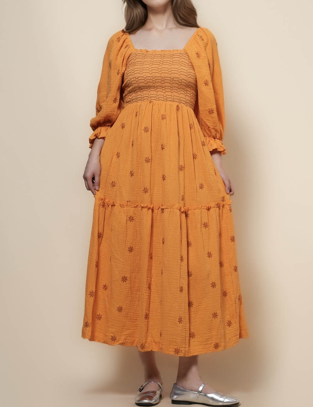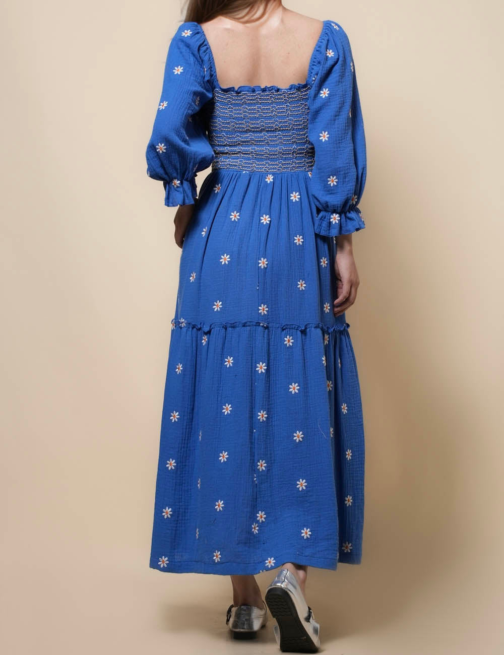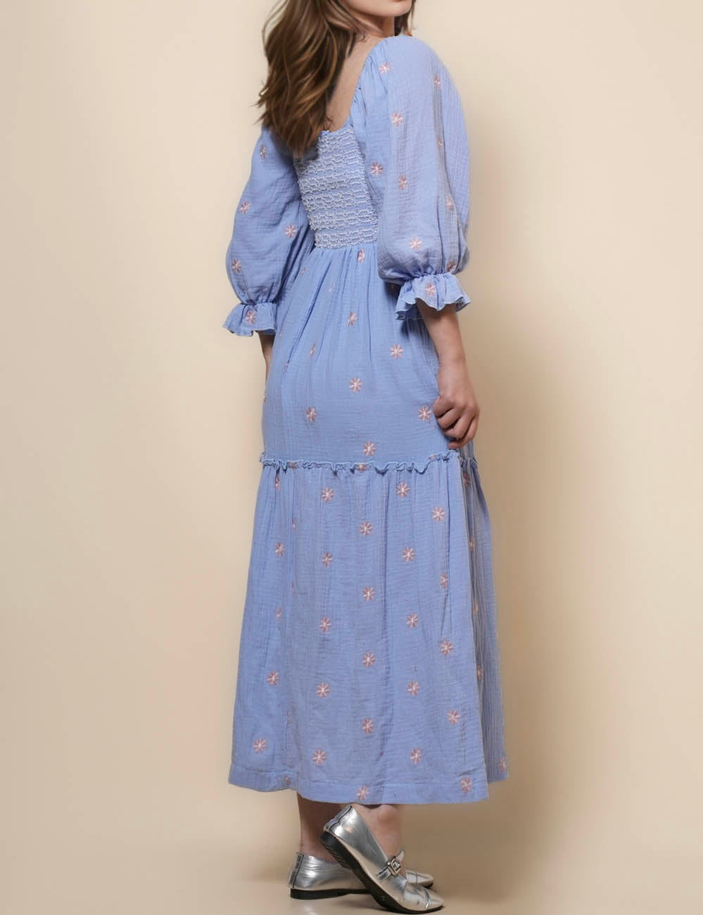 Ladies Long Sleeves Daisty Embroidery Midi Dress SKD50199