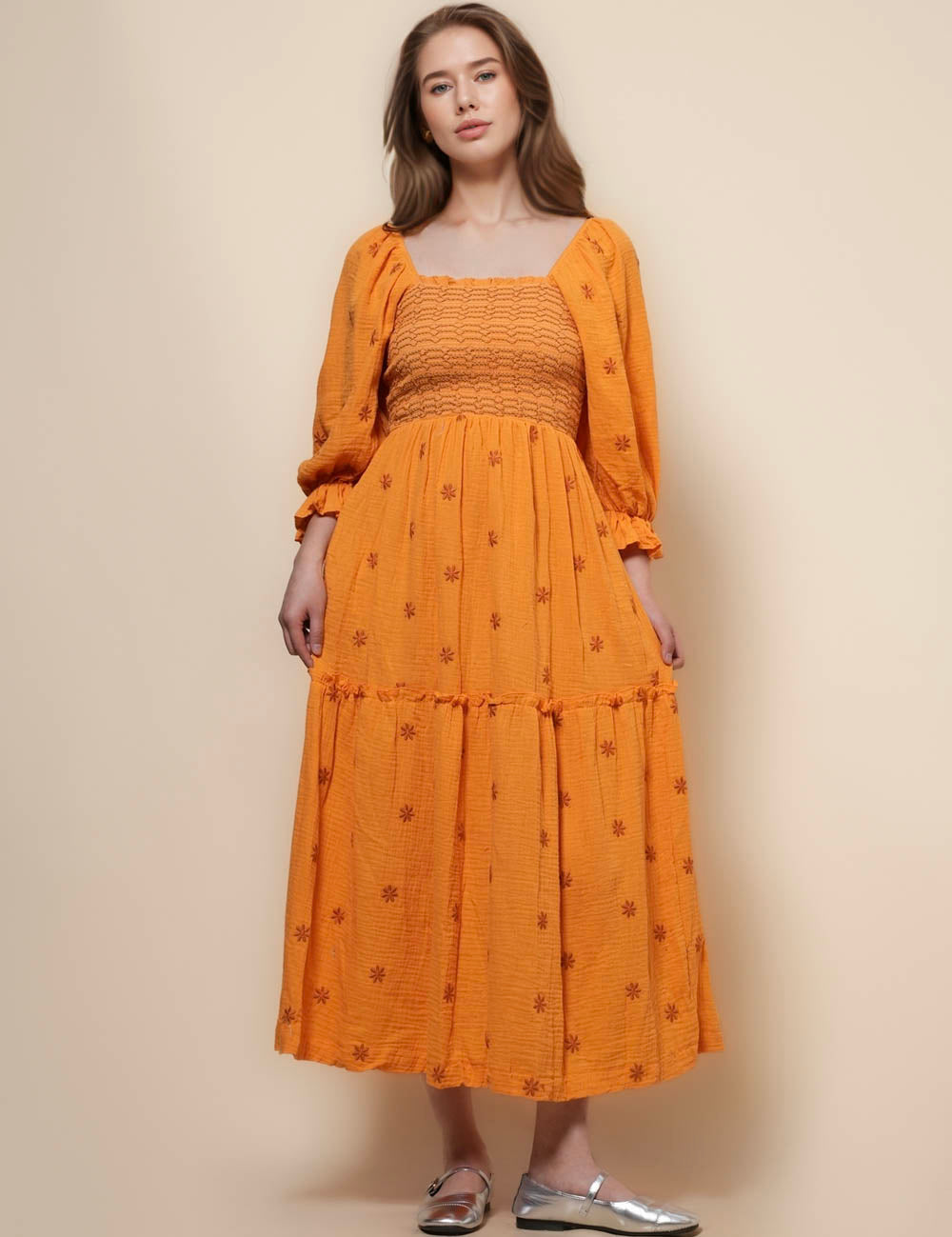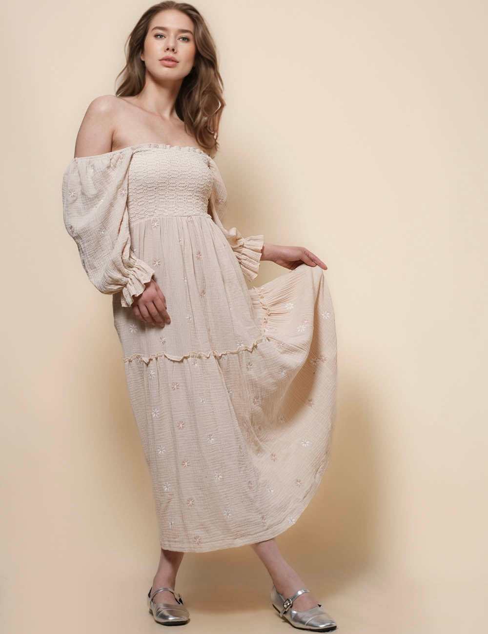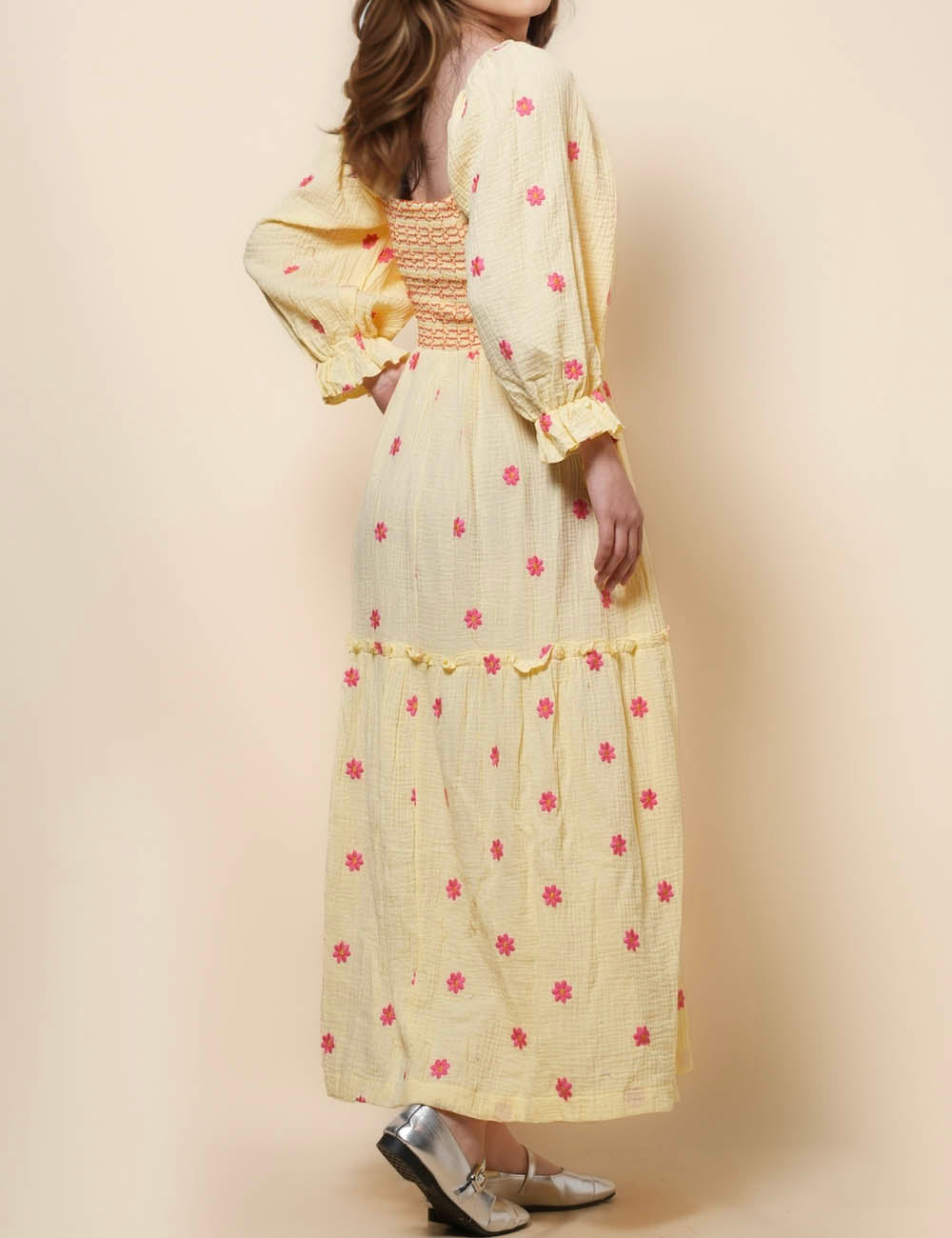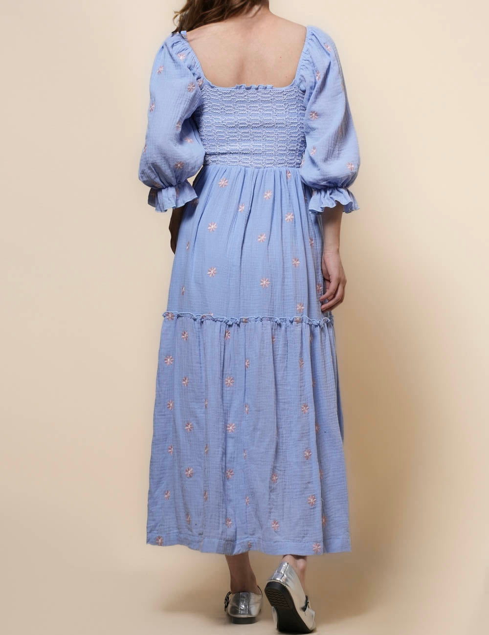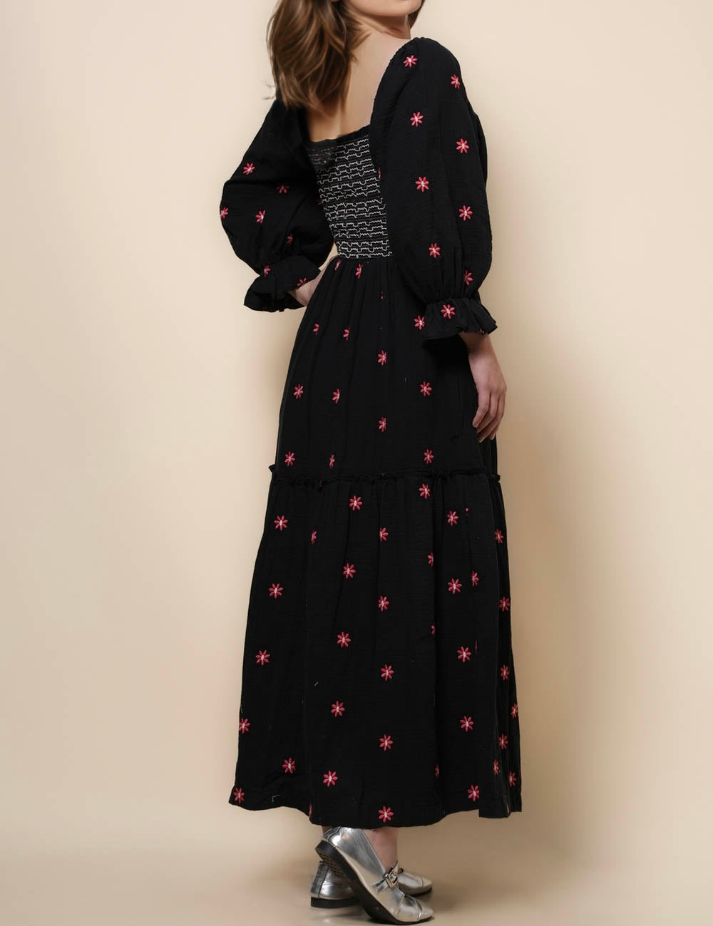 Ladies Long Sleeves Daisty Embroidery Midi Dress SKD50199