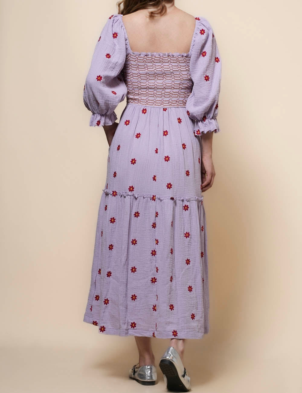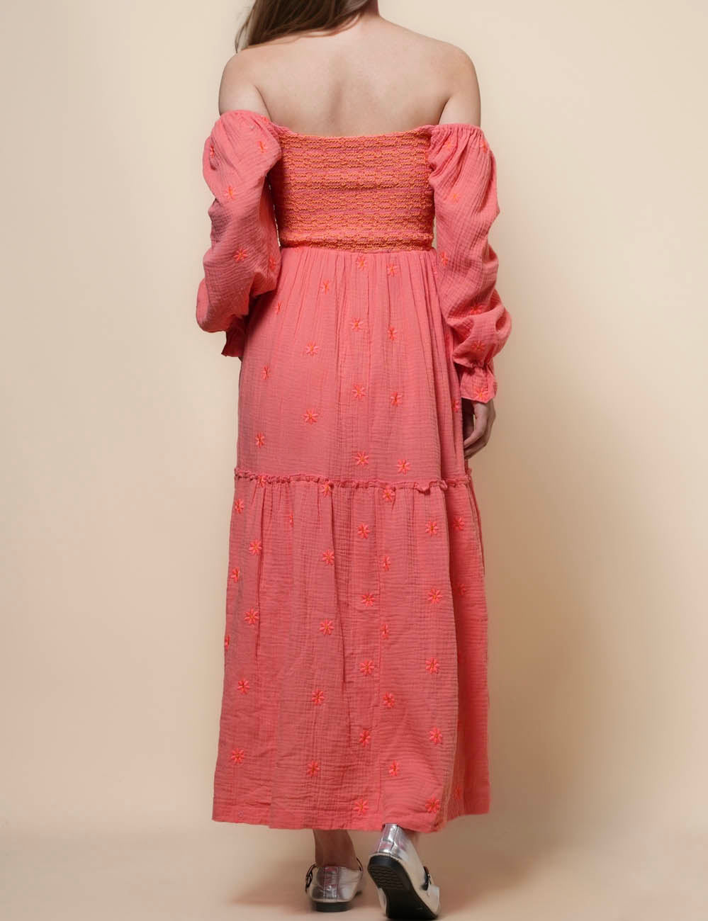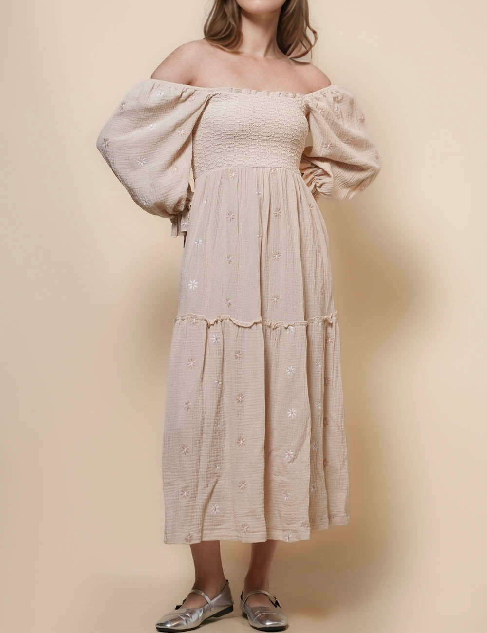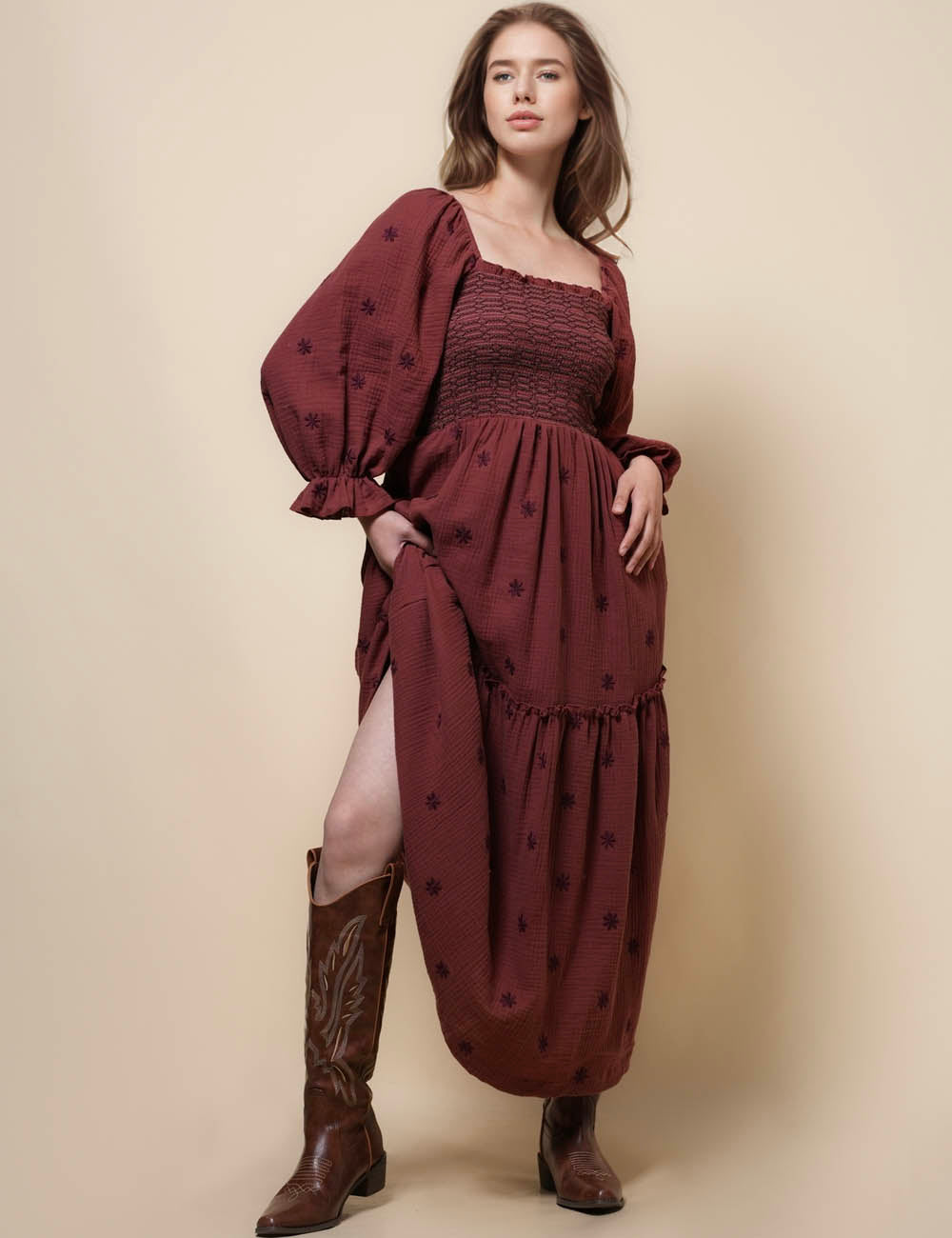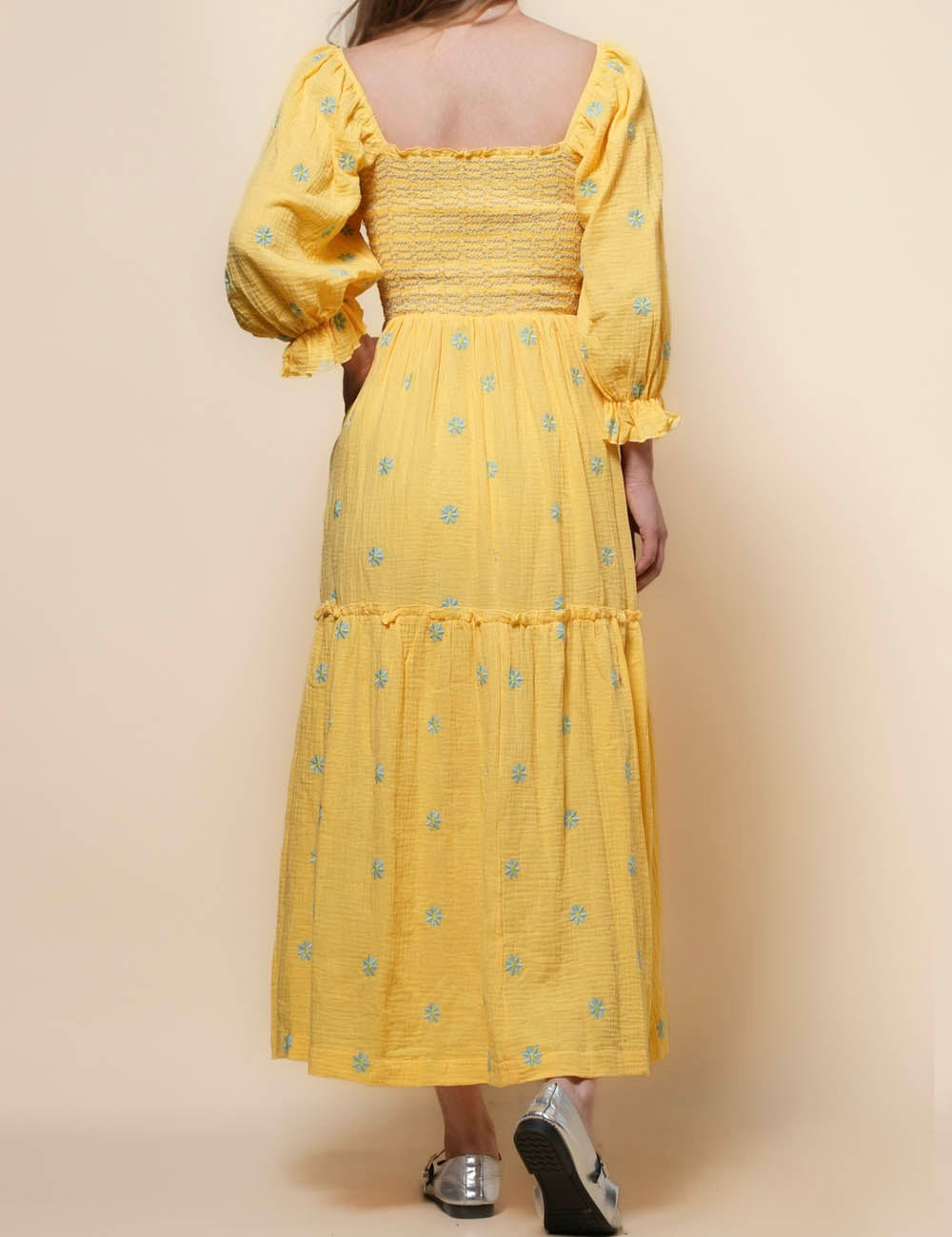Ladies Long Sleeves Daisty Embroidery Midi Dress SKD50199