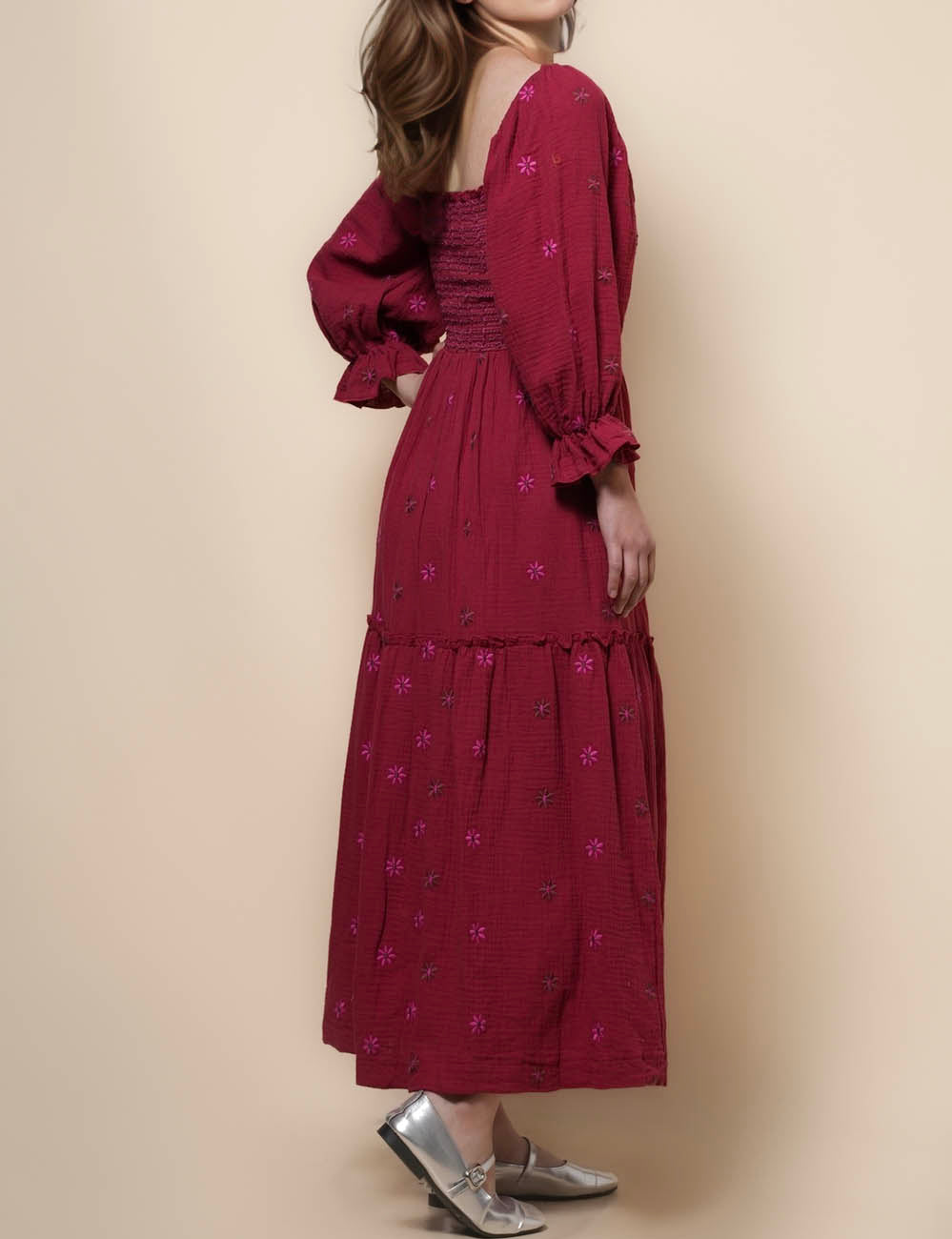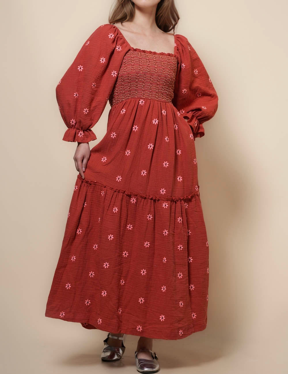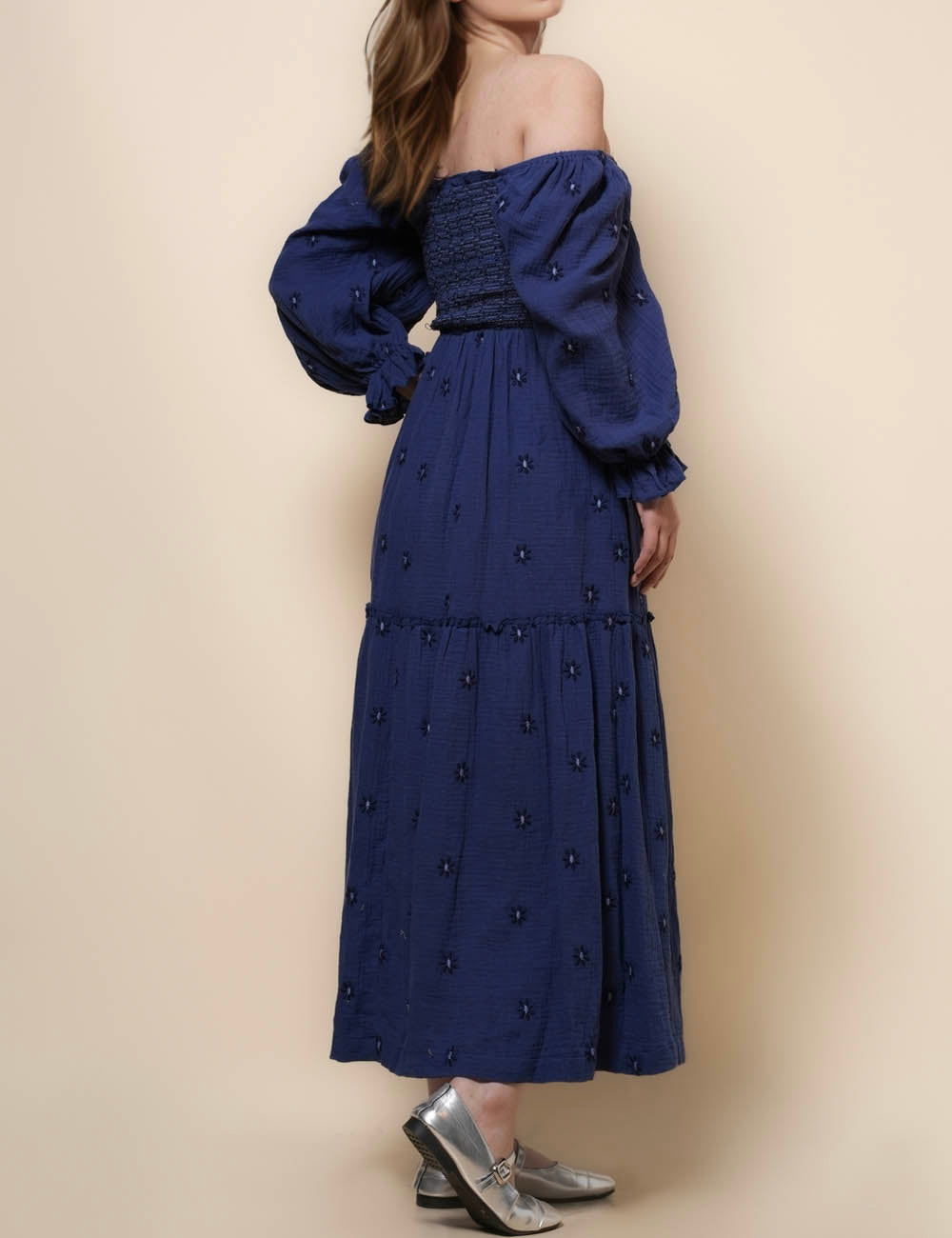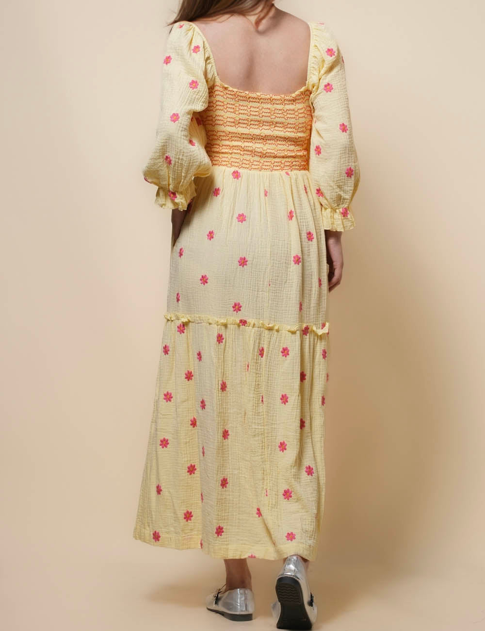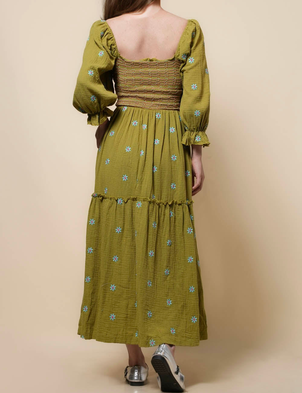 Ladies Long Sleeves Daisty Embroidery Midi Dress SKD50199